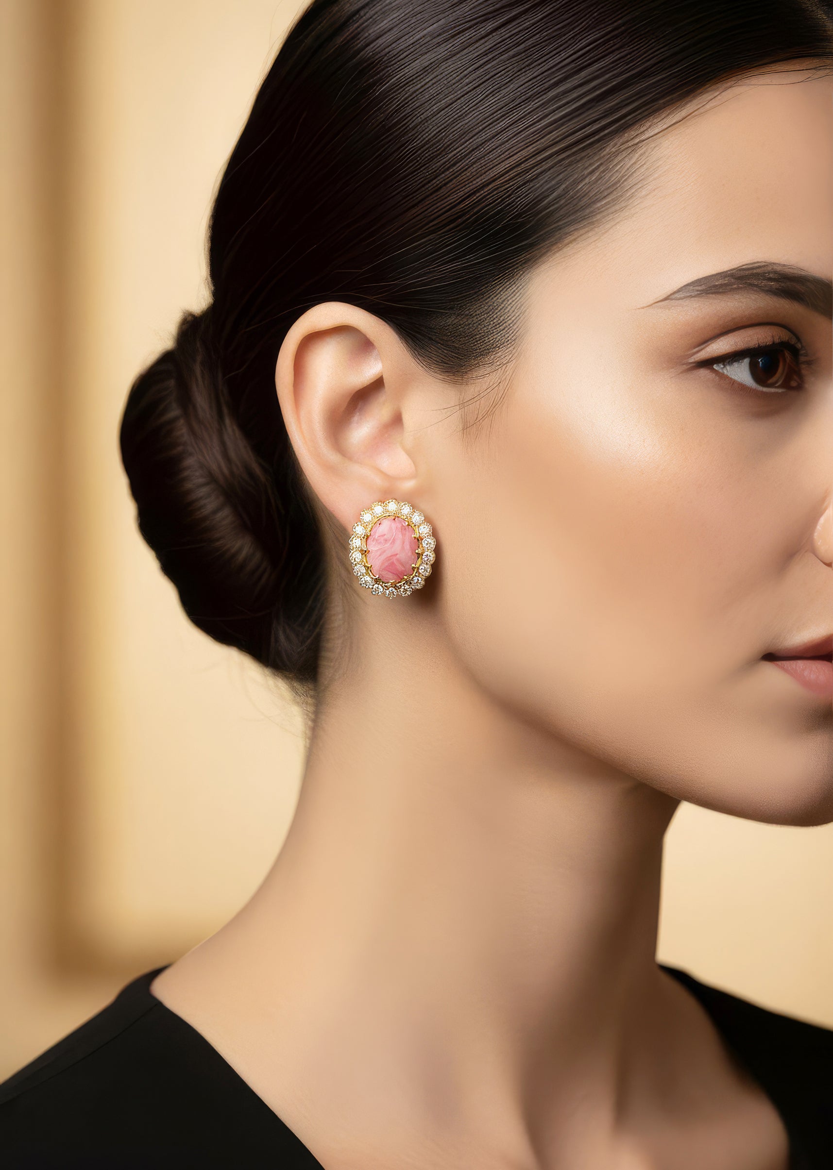 : Pair them with a rose gold or blush pink saree or a contemporary gown to complement the swirled stone and enhance the sparkle of the CZ halo.