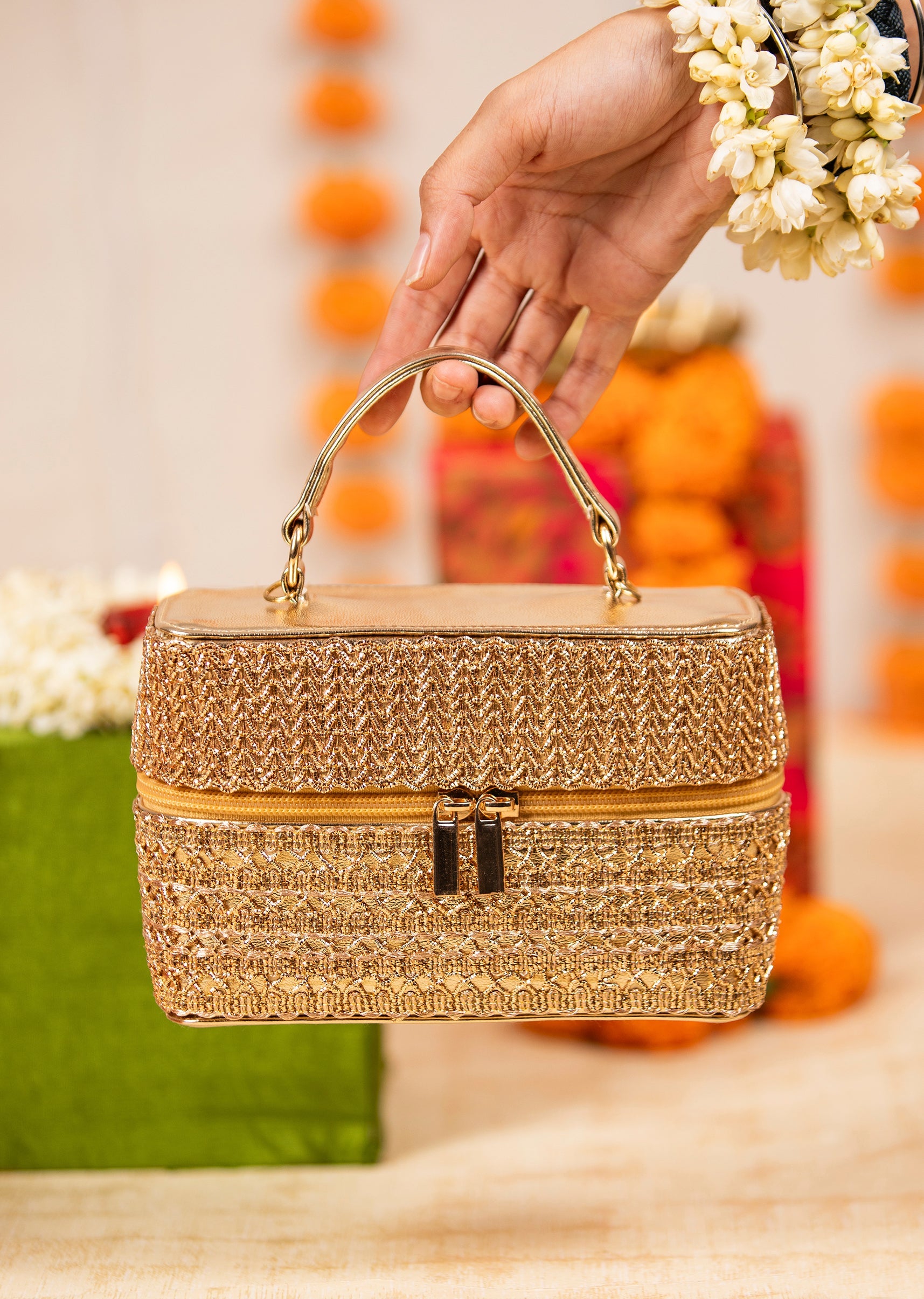 Intricately embroidered with metallic threads in bold geometric patterns, this gold bag brings a contemporary edge to classic festive styling. Its radiant finish and detailed craftsmanship make it a standout accessory for weddings, cocktail nights, and celebratory events. Awarded as the Most Trusted Brand, we're delivering styles you love, just as promised.