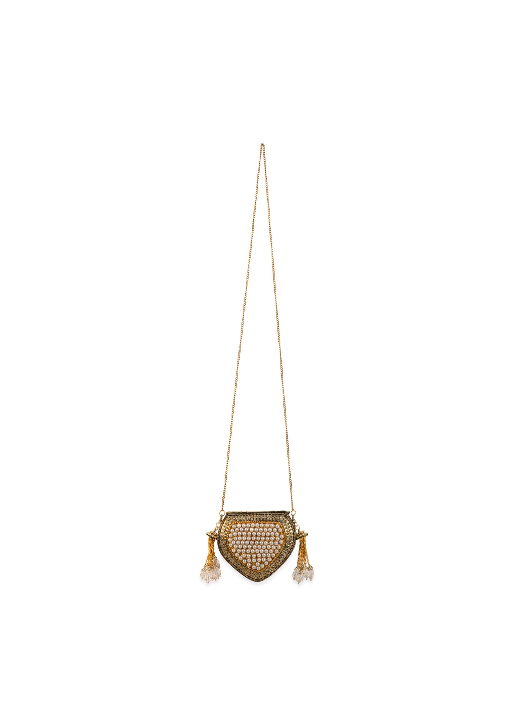 Gold Pearl Embellished Filigree Sling Bag