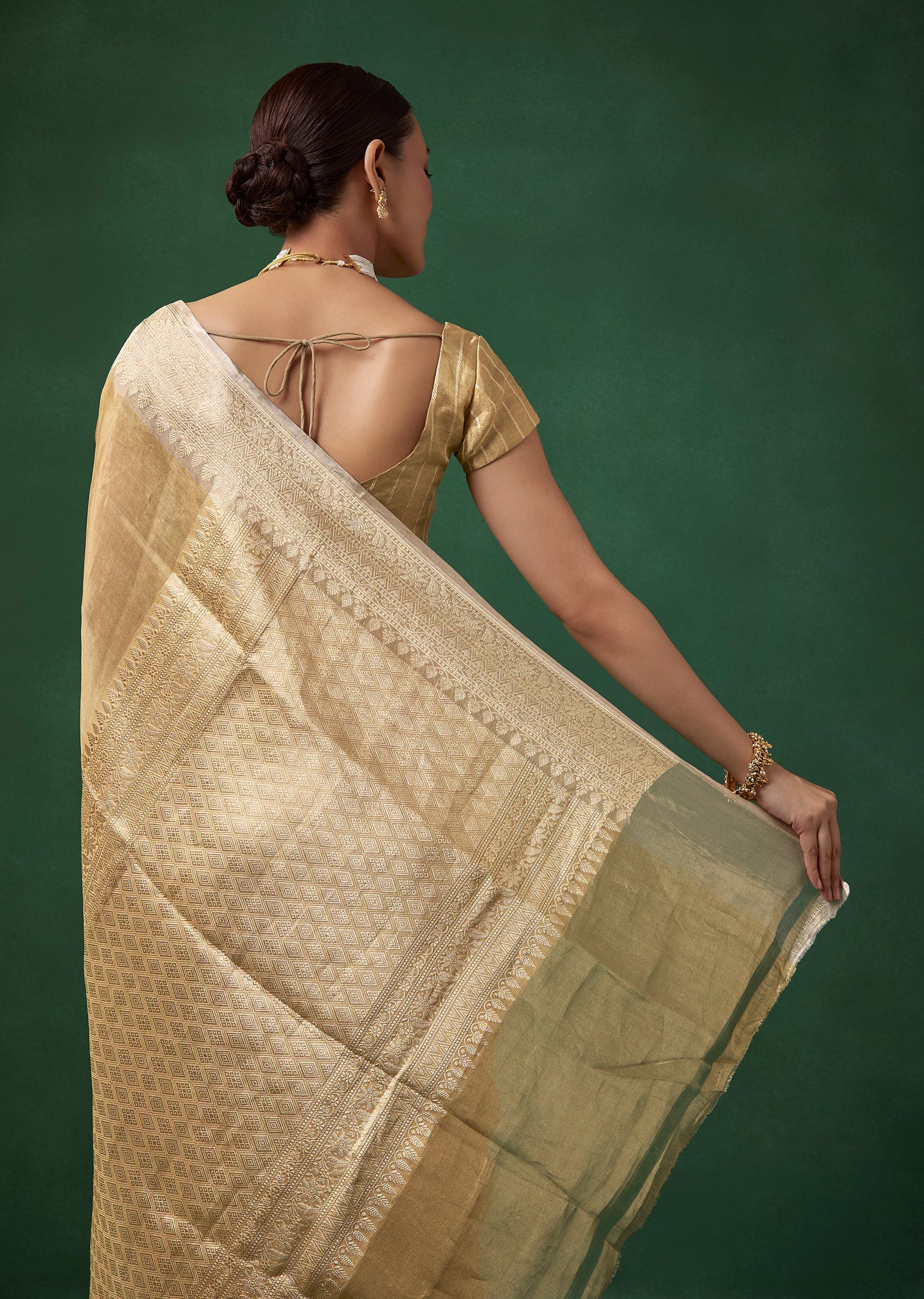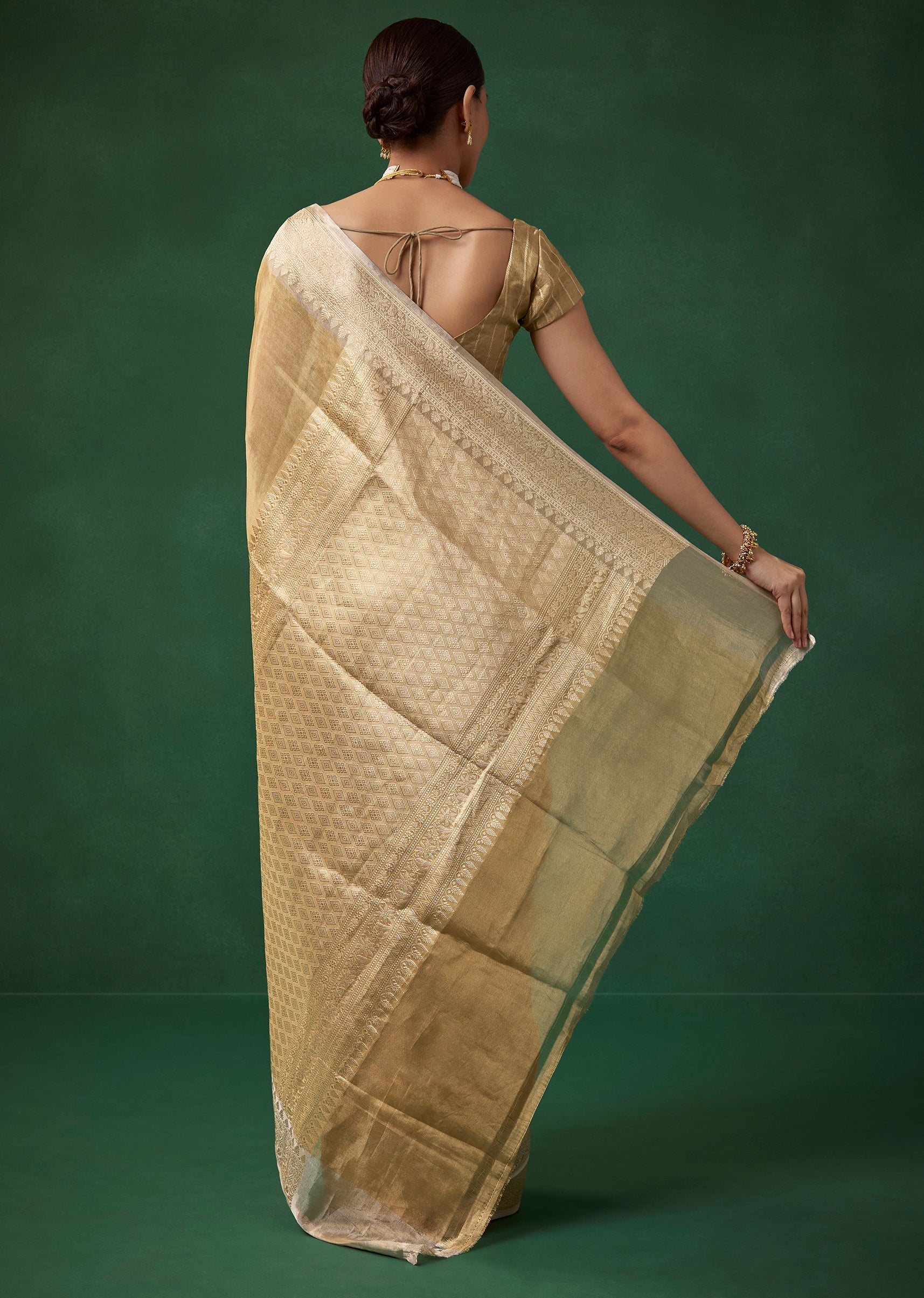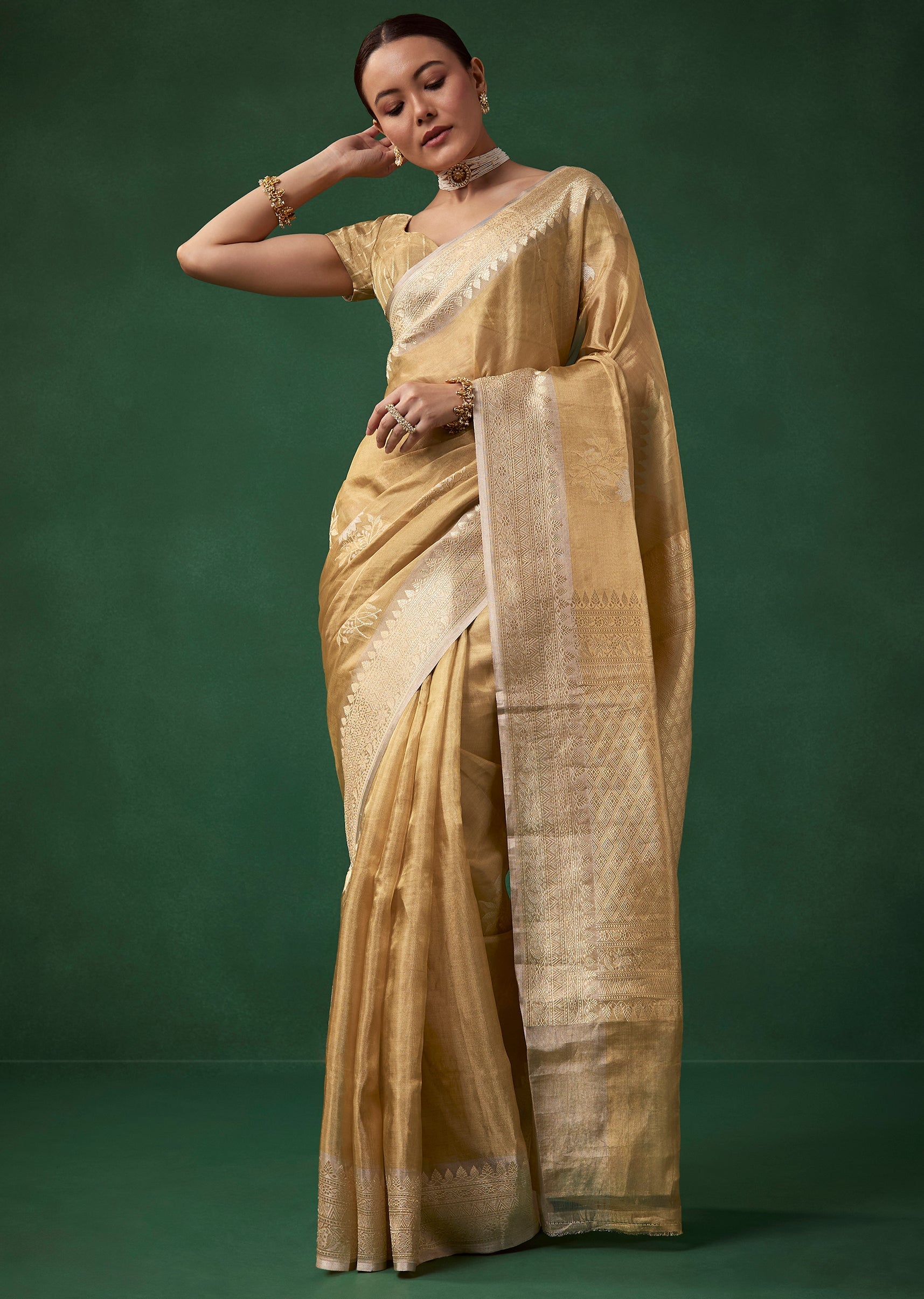 Gold Tissue Silk Butti Woven Saree with Unstitched Blouse