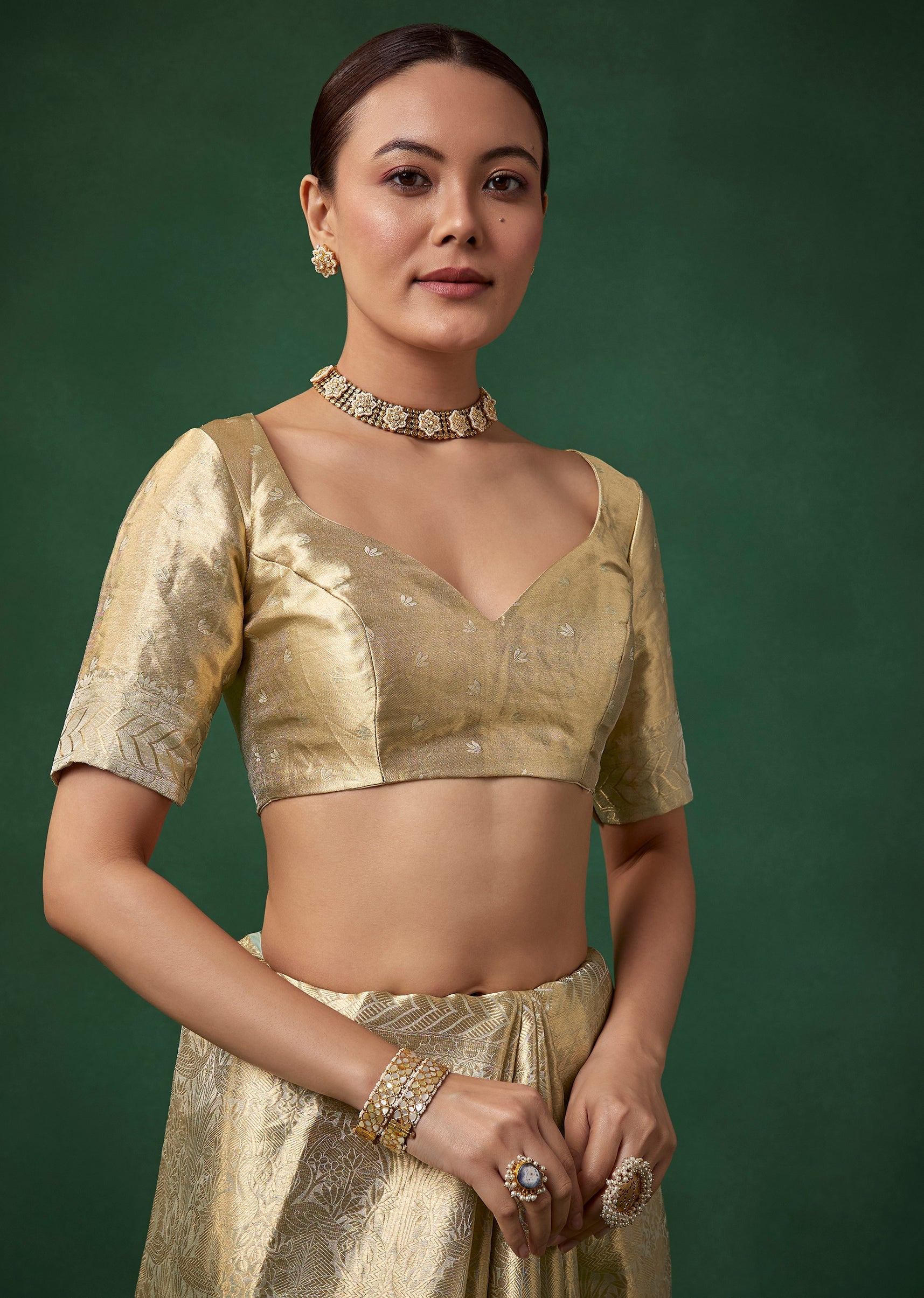 Gold Tissue Silk Woven and Embroidered Saree with Unstitched Blouse