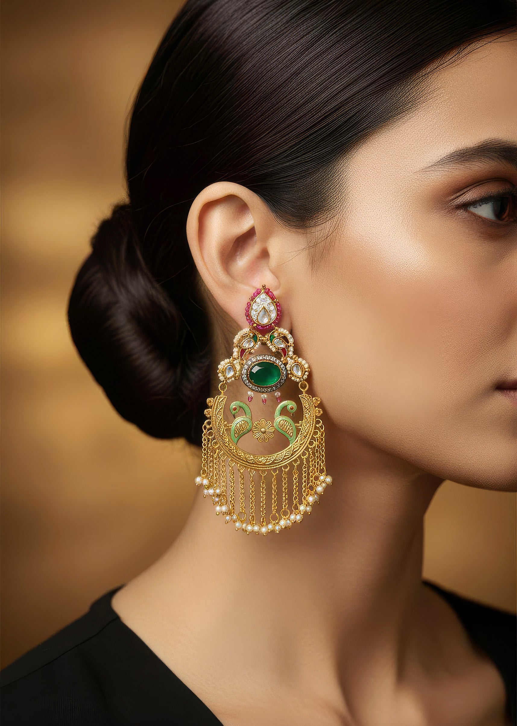 : Pair these Chandbalis with silk sarees, lehengas, or Anarkalis to elevate your traditional ensemble.
