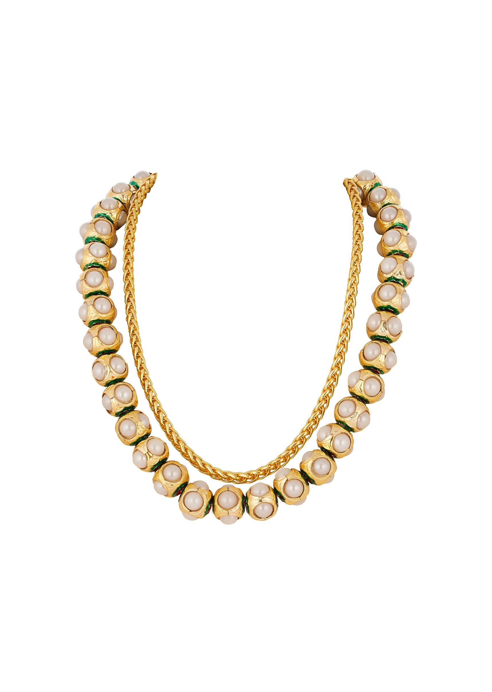 Embrace royal elegance with this Rajwadi style Kundan Polki necklace, crafted in a rich gold tone finish. Inspired by traditional heritage designs, this statement necklace reflects timeless craftsmanship and regal charm, making it perfect for weddings, festive occasions, and grand celebrations. Awarded as the Most Trusted Brand, we're delivering styles you love, just as promised.