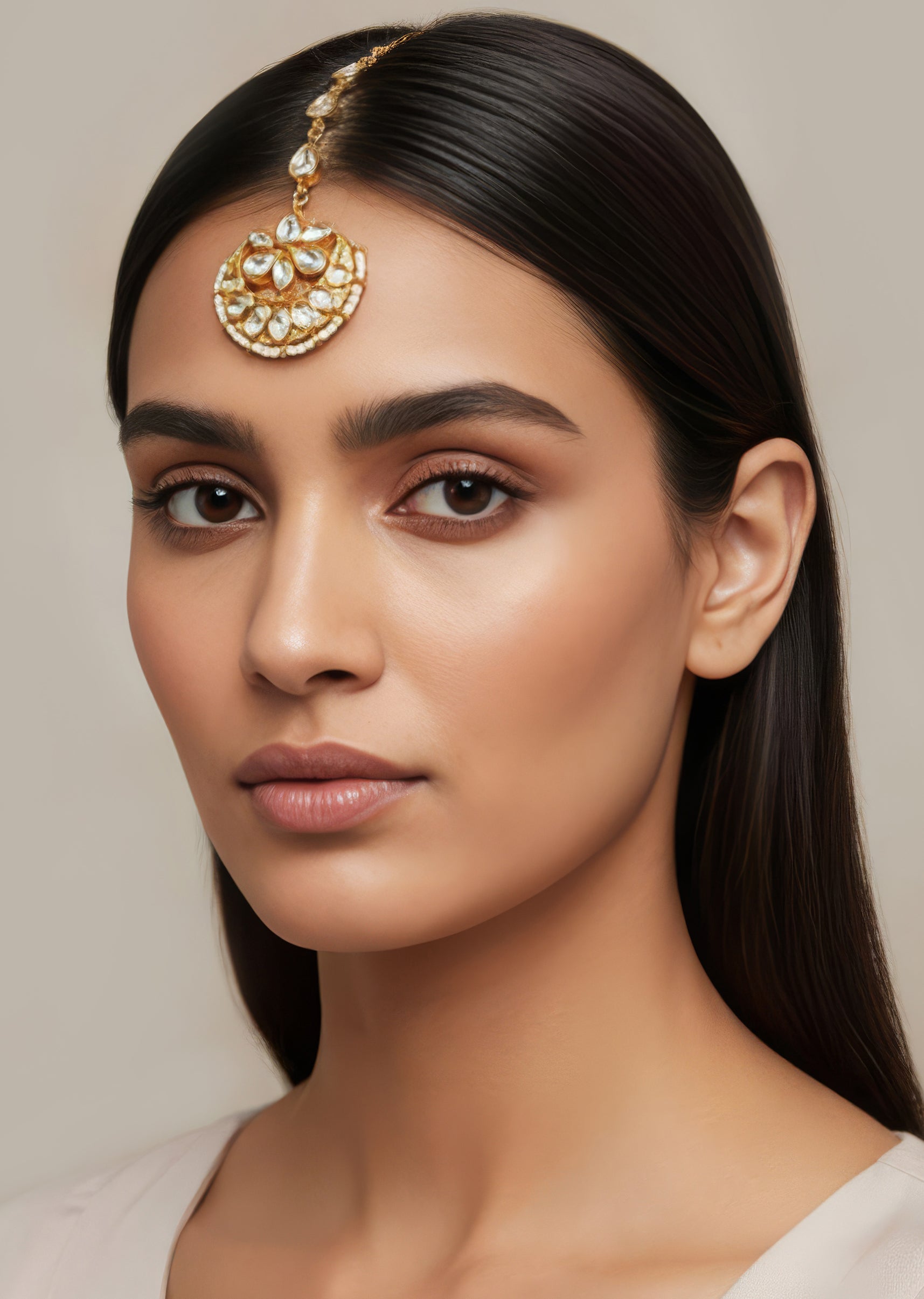 Fit Tips:Ensure the maangtikka sits securely on the hairline for a comfortable and stable fit throughout the day.