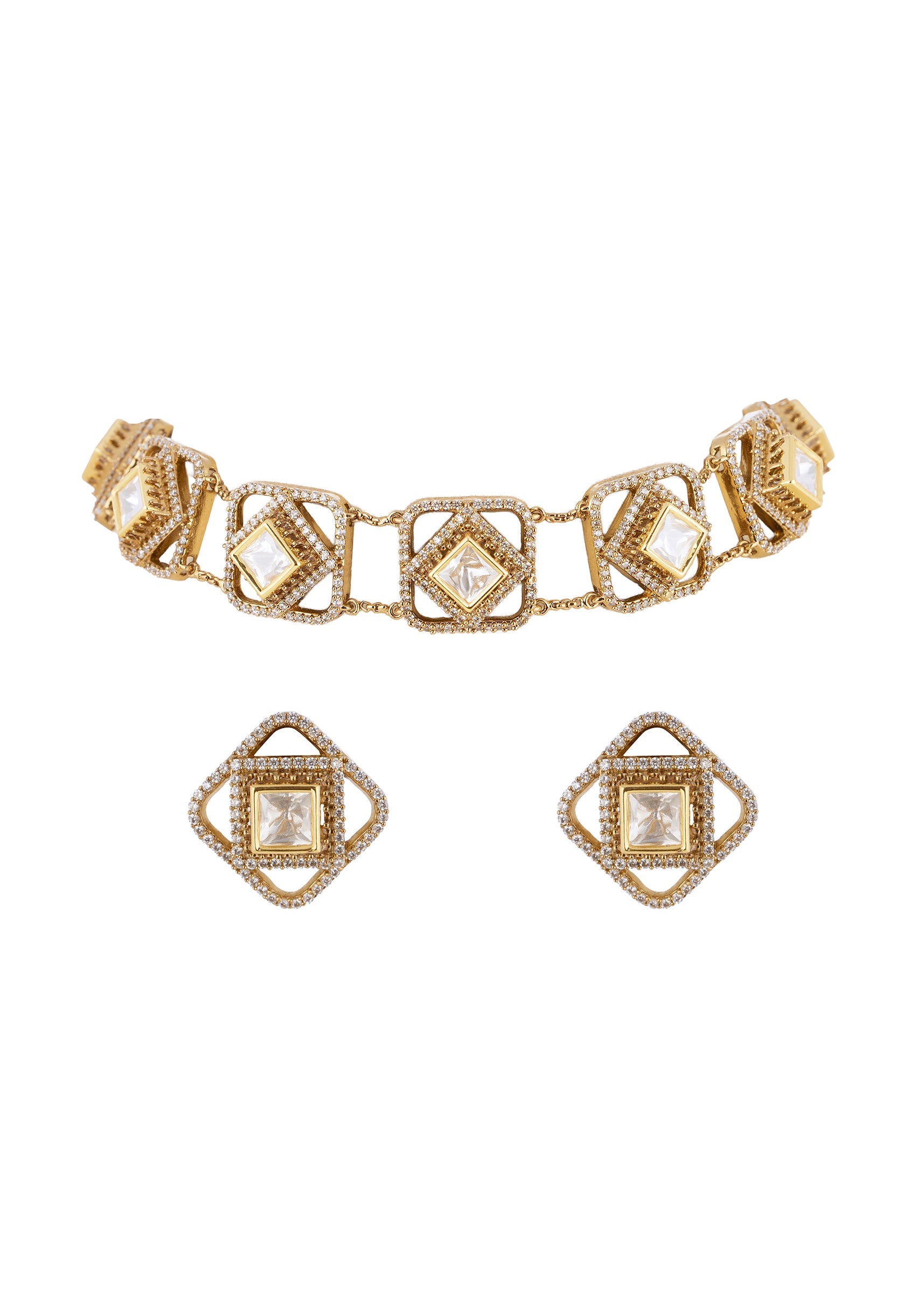 This gold and white necklace set features intricate kundan craftsmanship that adds a subtle sparkle and polished charm to your look. The beautifully designed necklace paired with matching earrings enhances... More Product Details