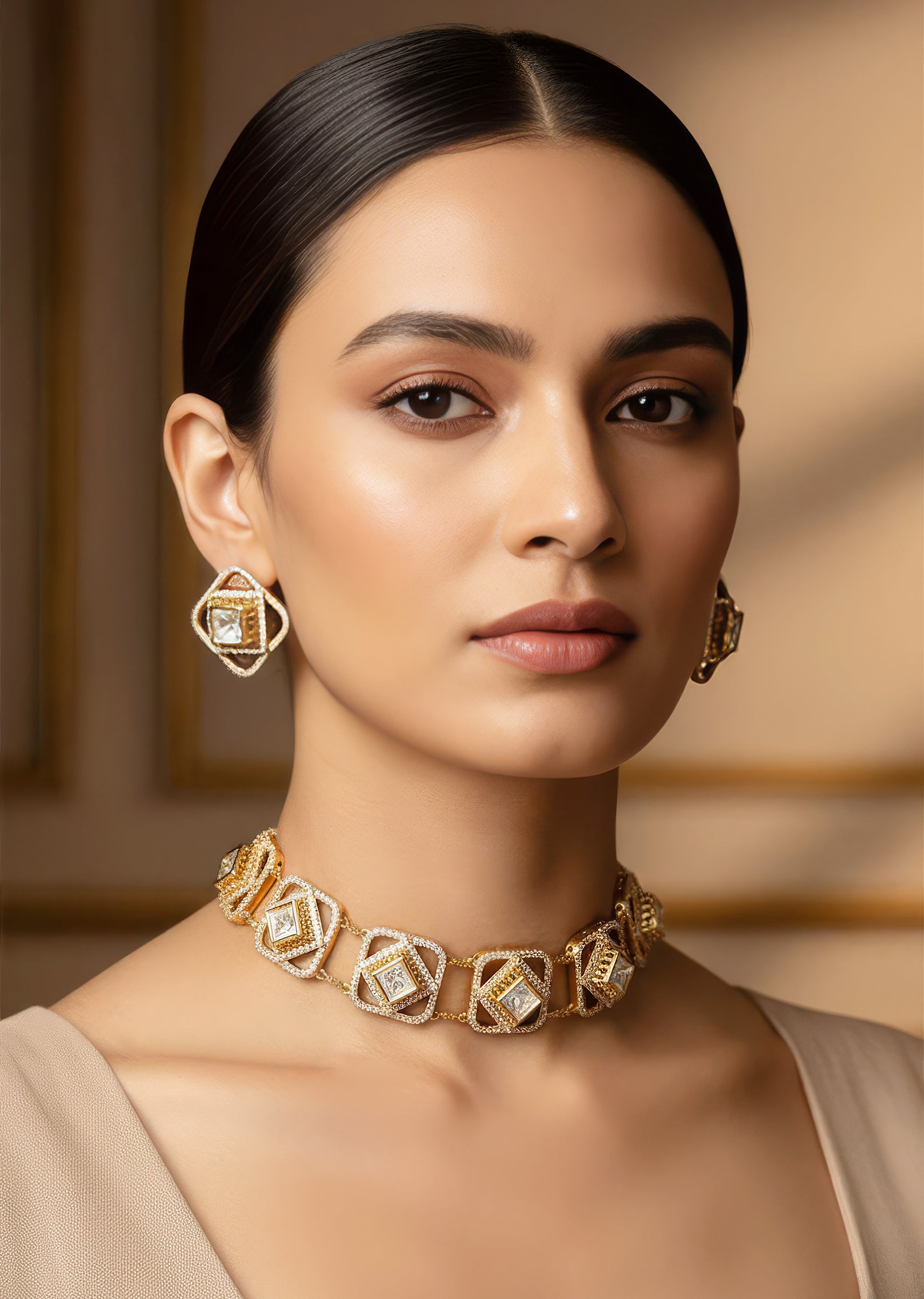 This gold and white necklace set features intricate kundan craftsmanship that adds a subtle sparkle and polished charm to your look. The beautifully designed necklace paired with matching earrings enhances the neckline while adding an elegant and sophisticated touch to your ensemble. Lightweight and balanced, it pairs perfectly with lehengas, sarees, and indo western outfits, making it a versatile accessory for wedding guests and bridesmaids who appreciate classic style with refined detailing. Awarded as the Most Trusted Brand, we're delivering styles you love, just as promised.