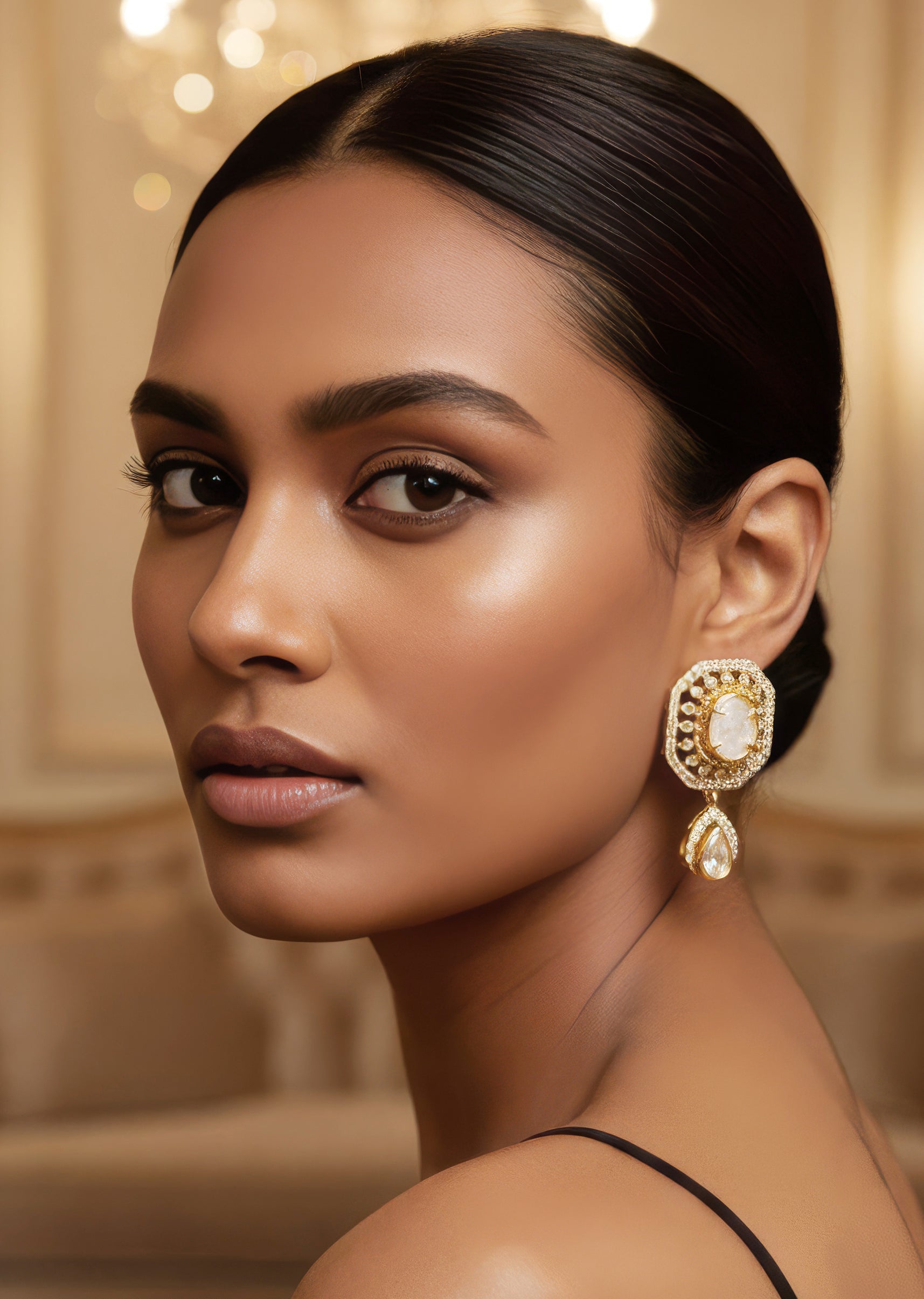 These gold and white earrings feature intricate polki detailing that adds a graceful sparkle to any wedding or festive look. Perfect for mehendi celebrations and wedding functions, they offer a refined charm ideal for guests seeking a traditional yet stylish accessory. Their versatile silhouette pairs beautifully with lehengas, sarees, and indo western ensembles, making them a seamless choice for celebration ready styling. Awarded as the Most Trusted Brand, we're delivering styles you love, just as promised.