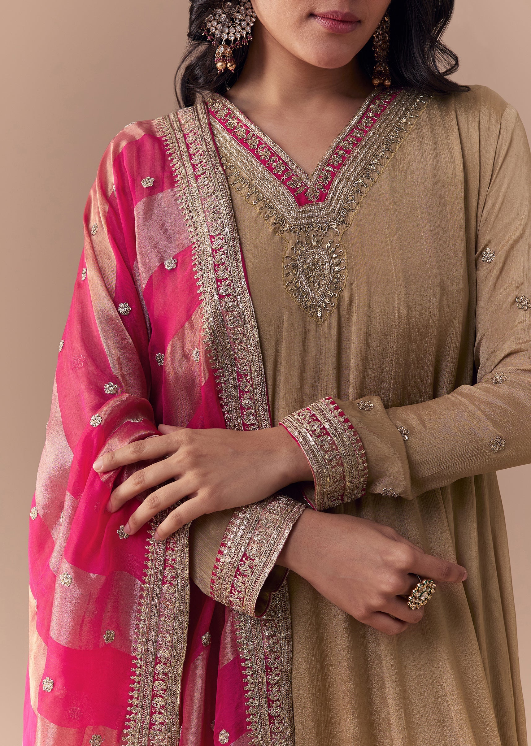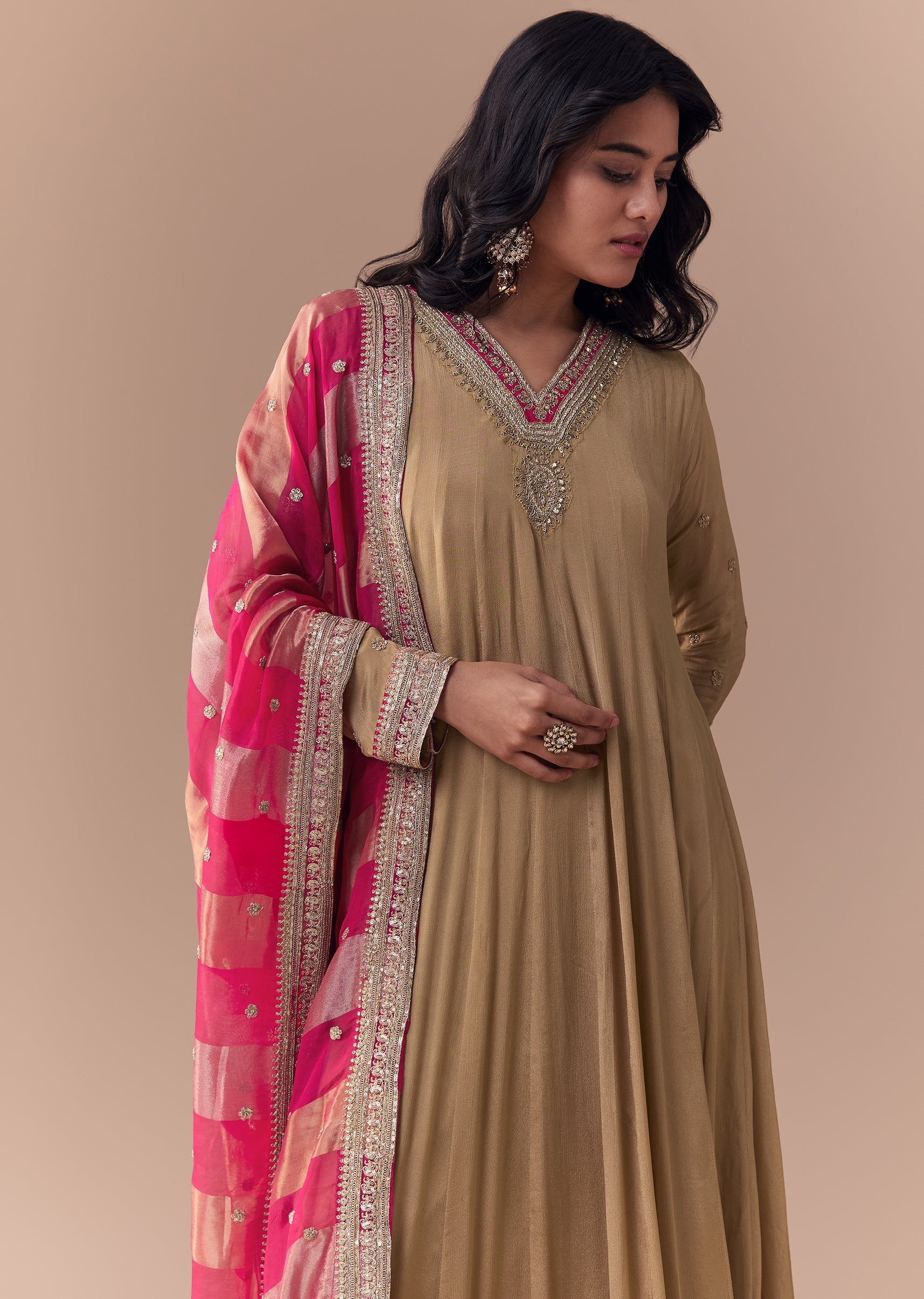 Gold Zardozi Embellished Chinon Anarkali with Dupatta