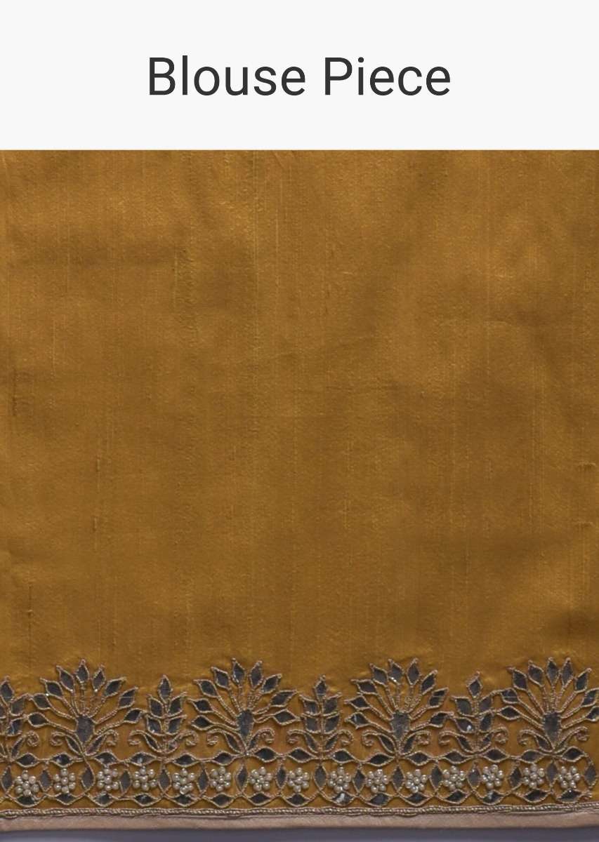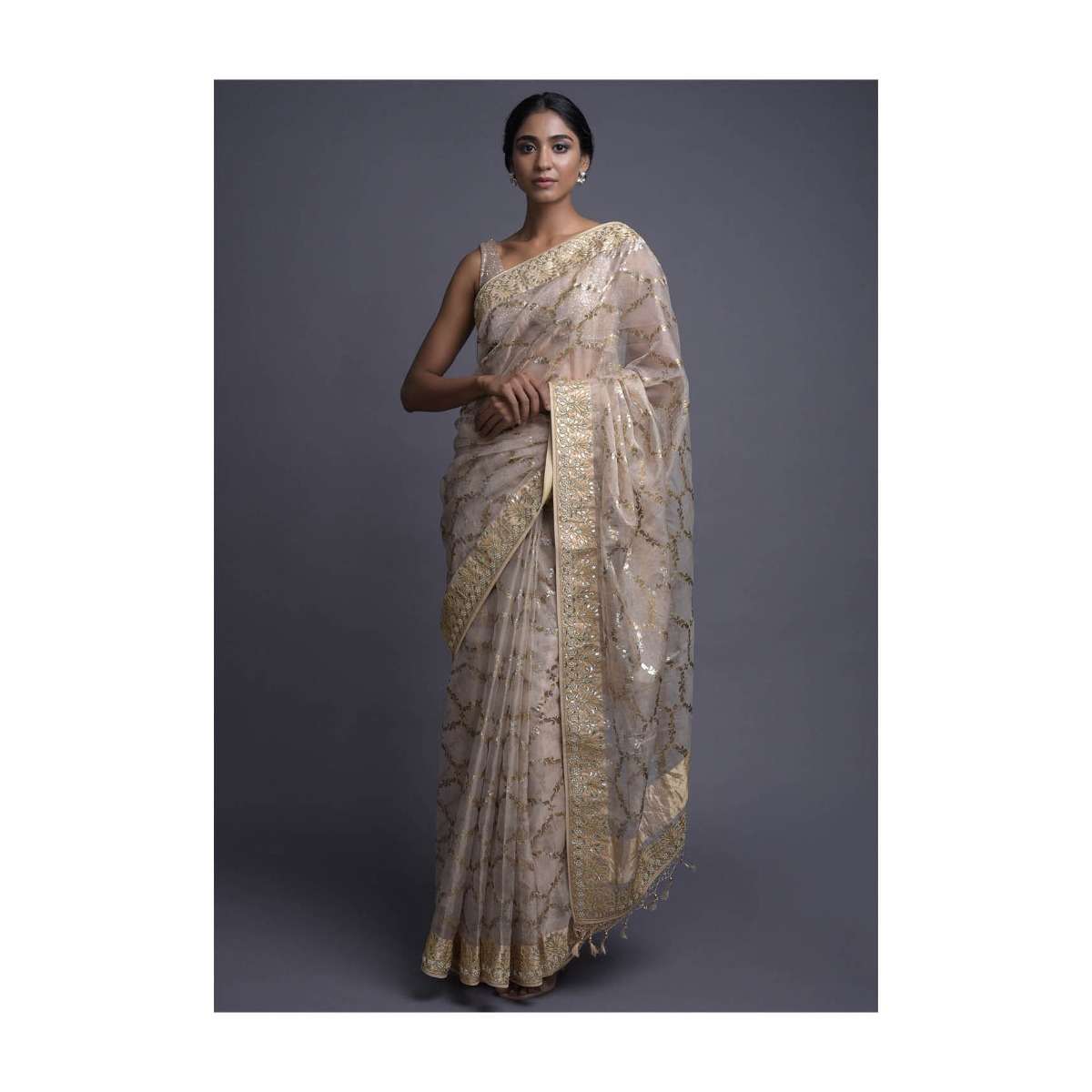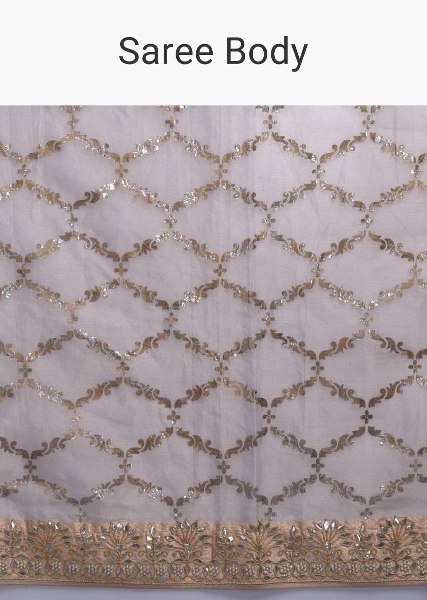 Golden Beige Saree In Silk With Foil Print And Gotta Work Online - Kalki Fashion