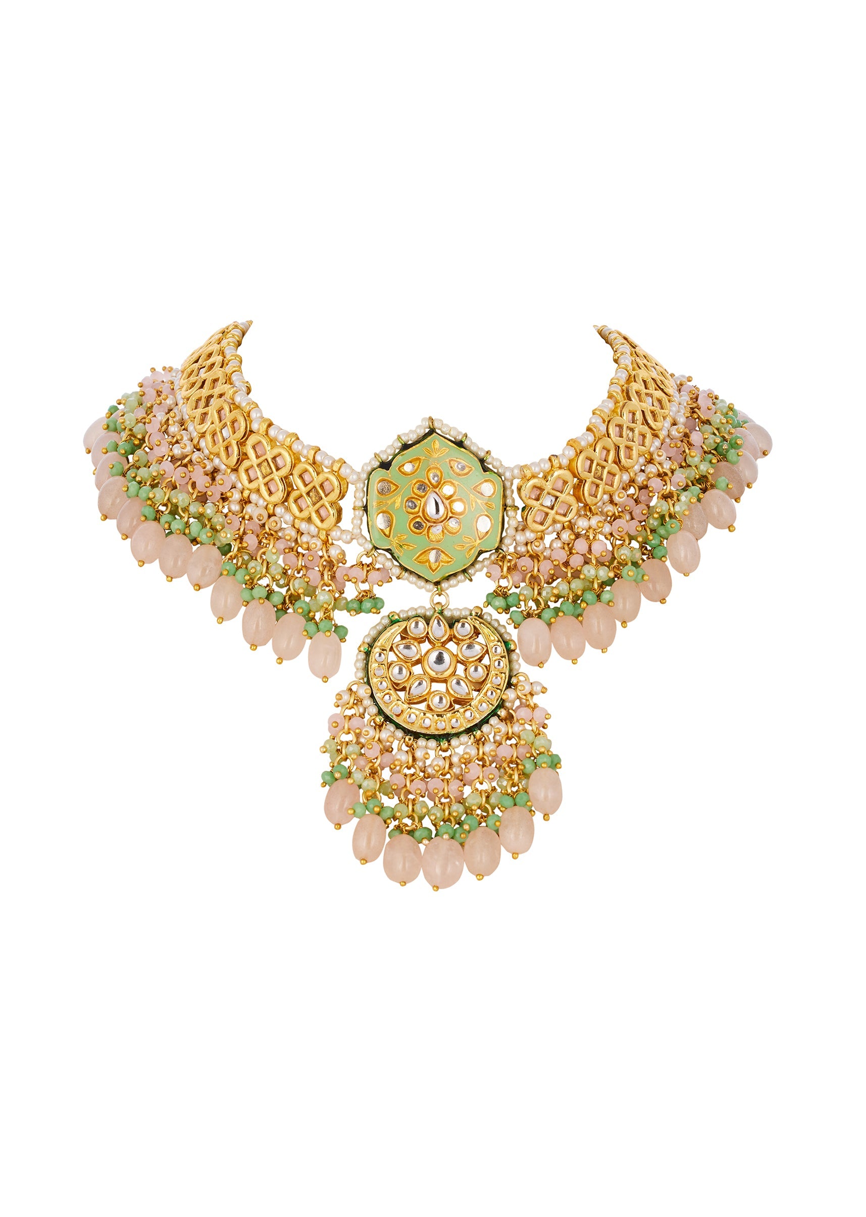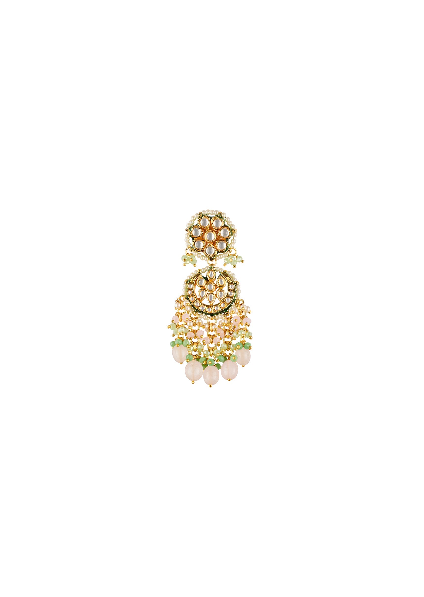 Green and Gold Traditional Kundan Chandbali Necklace Set with Faux Pearl