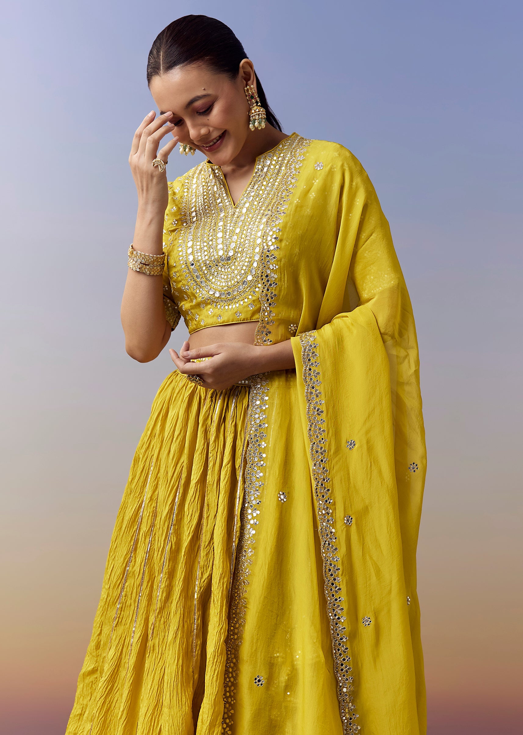 Green Bridesmaid Lehenga With Foil Mirror And Zari Work