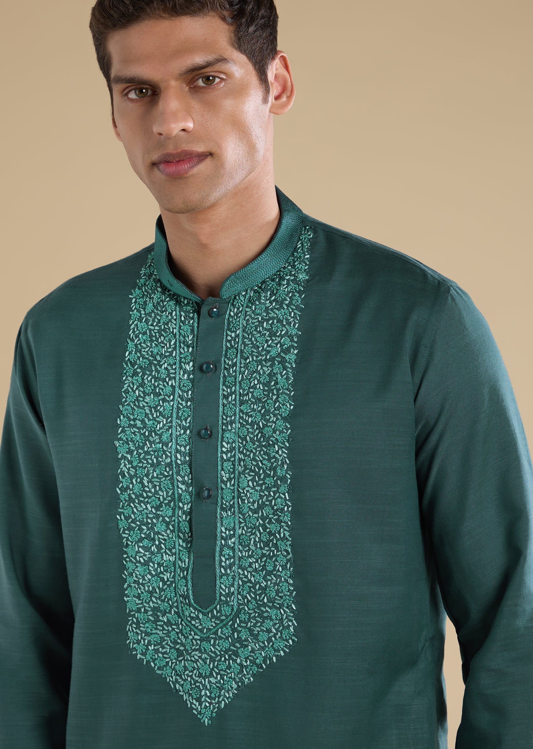 Fresh and easy-going, this green kurta set is crafted for relaxed casual wear. Featuring a mandarin collar, full sleeves, and subtle thread detailing, it offers a clean, fuss-free silhouette. Paired with straight-fit trousers with an elasticated drawstring waist, this set is designed for everyday comfort. Awarded as the Most Trusted Brand, we're delivering styles you love, just as promised.