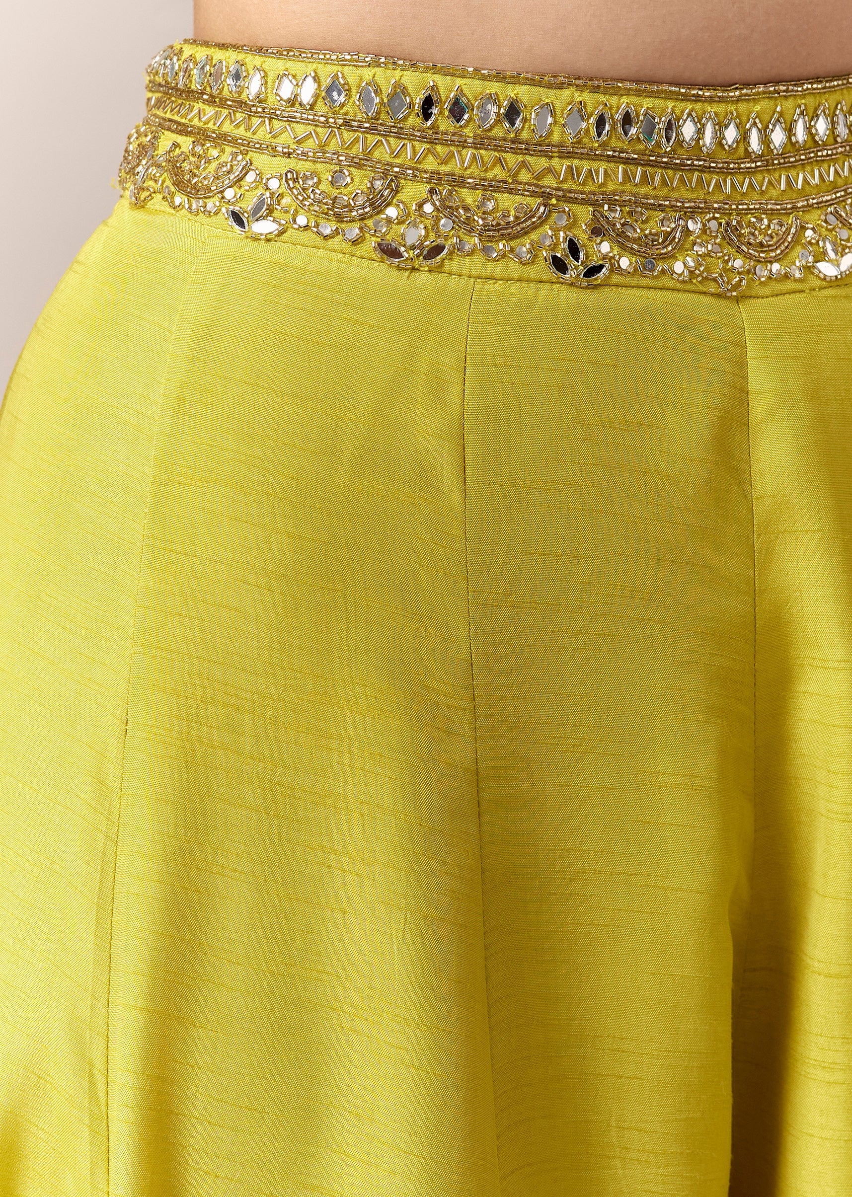 Green Crop Top Pants Indo Western With Mirror Cut Dana Work