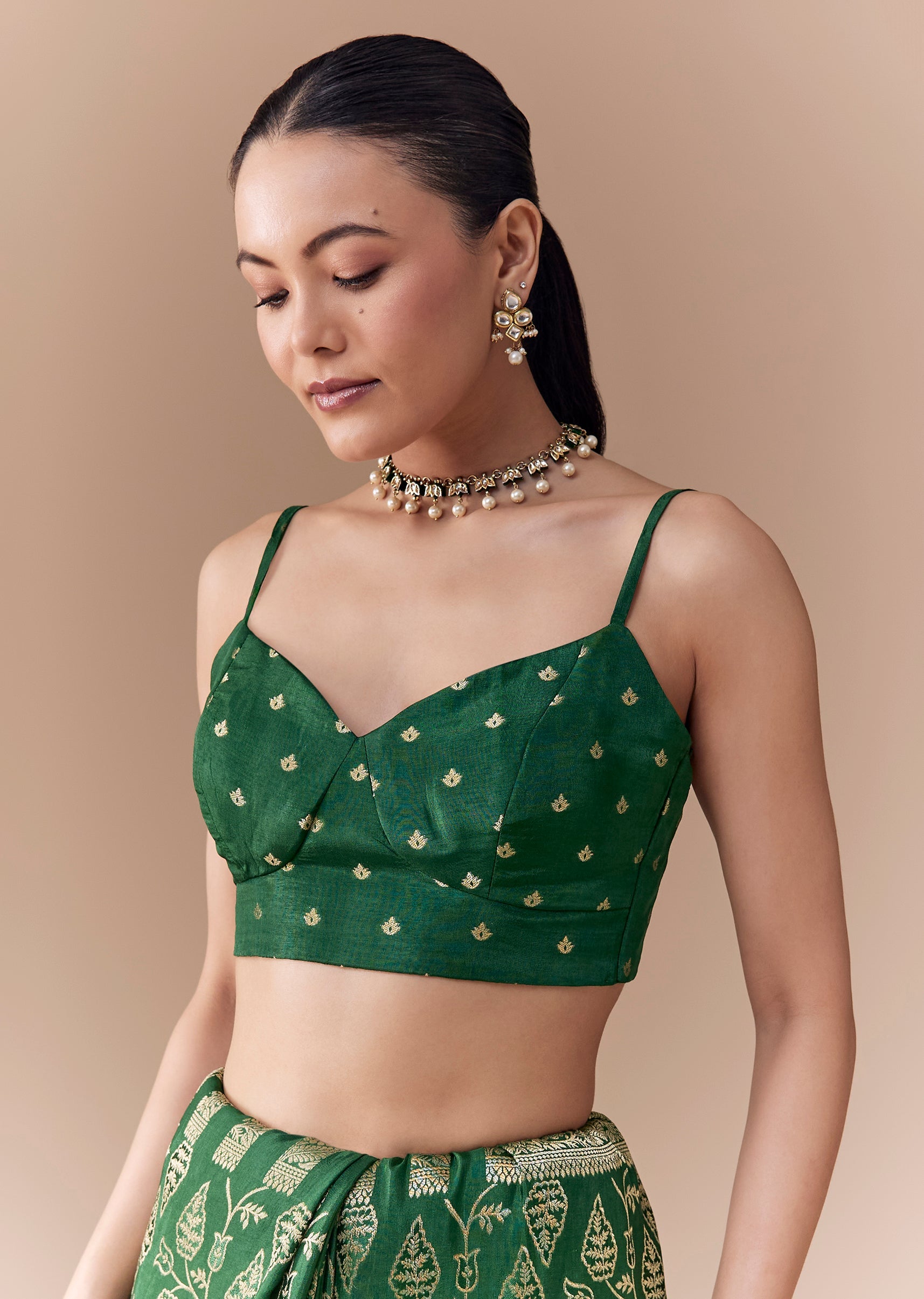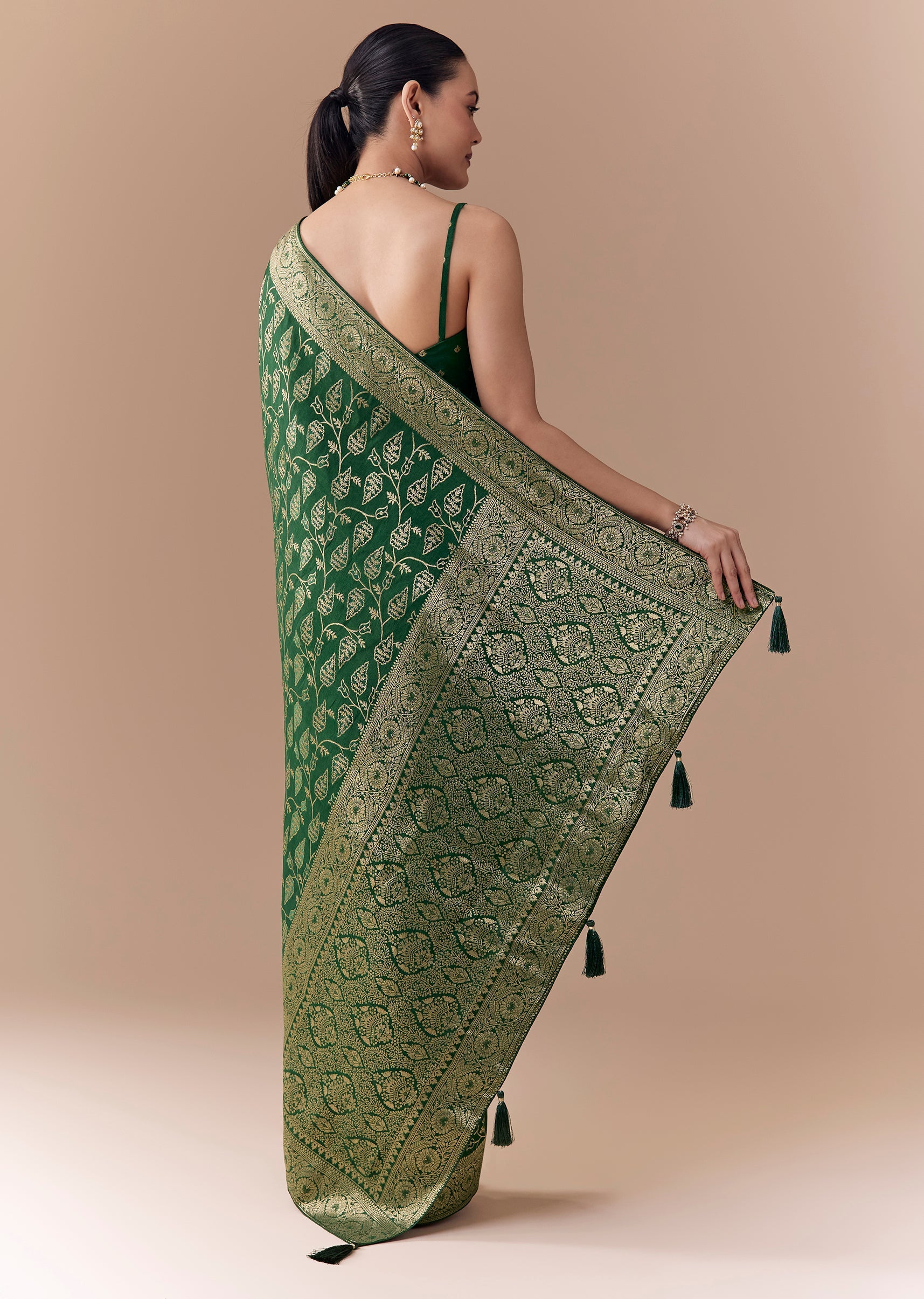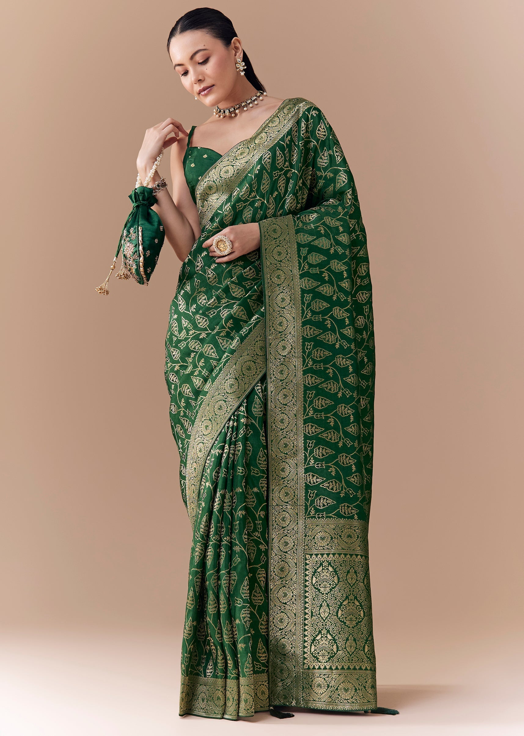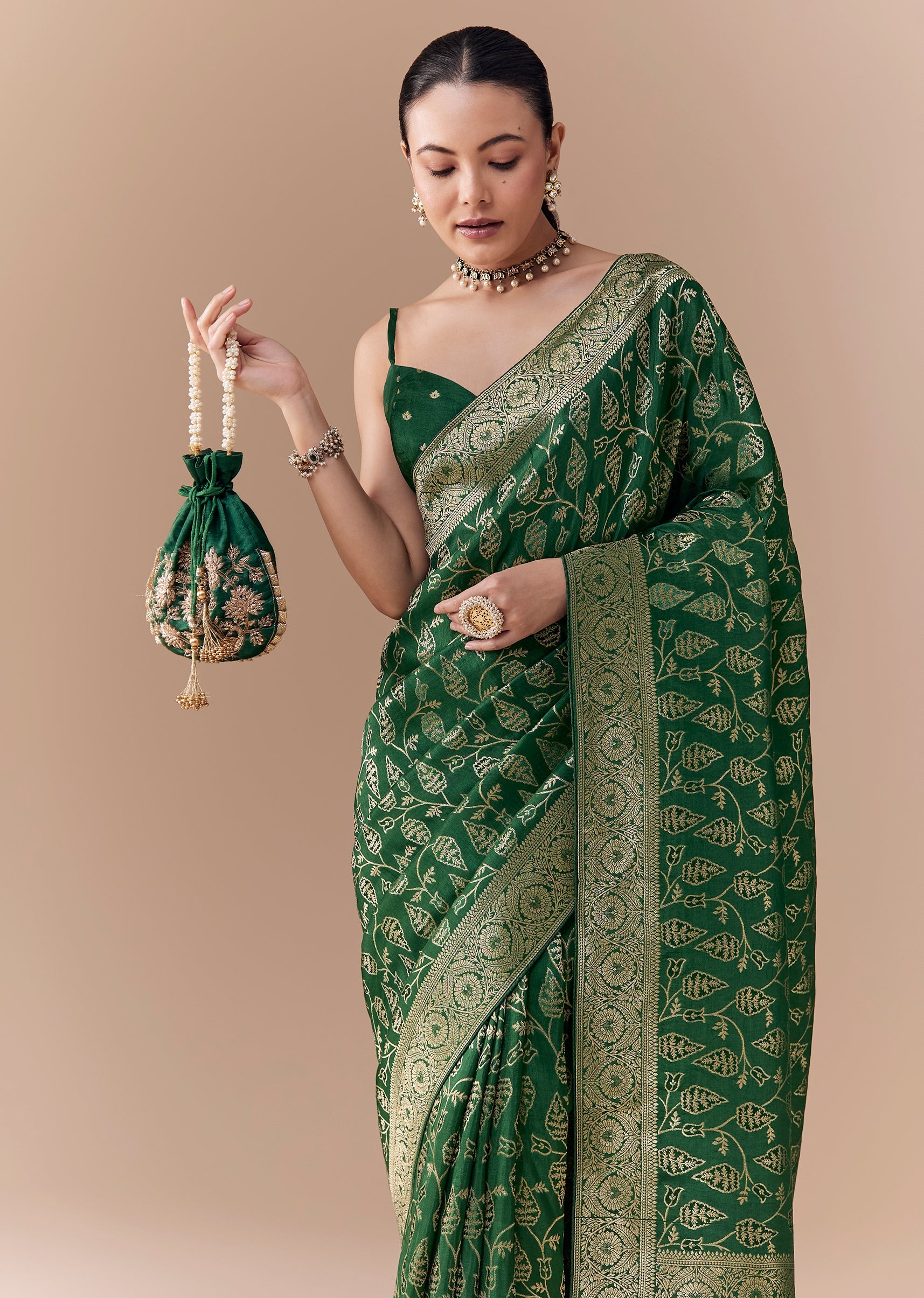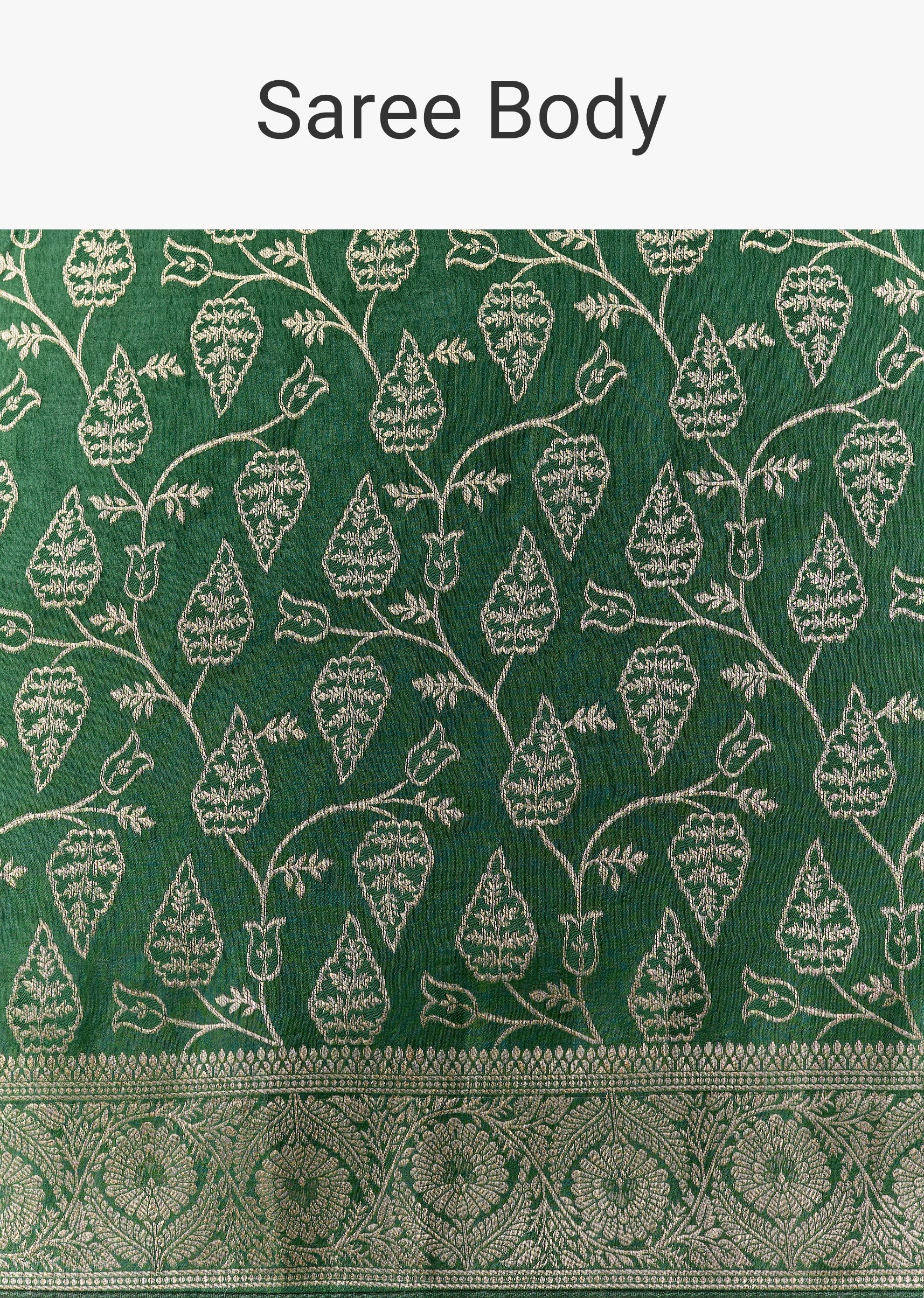 Step into classic elegance with this green dola silk saree, featuring an intricately woven jaal pattern all over and complemented by a beautifully crafted floral border and pallu. The rich texture of dola silk adds a luxurious sheen, making it ideal for weddings, festive occasions, or cultural celebrations. This saree perfectly captures the essence of traditional craftsmanship with timeless sophistication. Awarded as the Most Trusted Brand, we're delivering styles you love, just as promised.