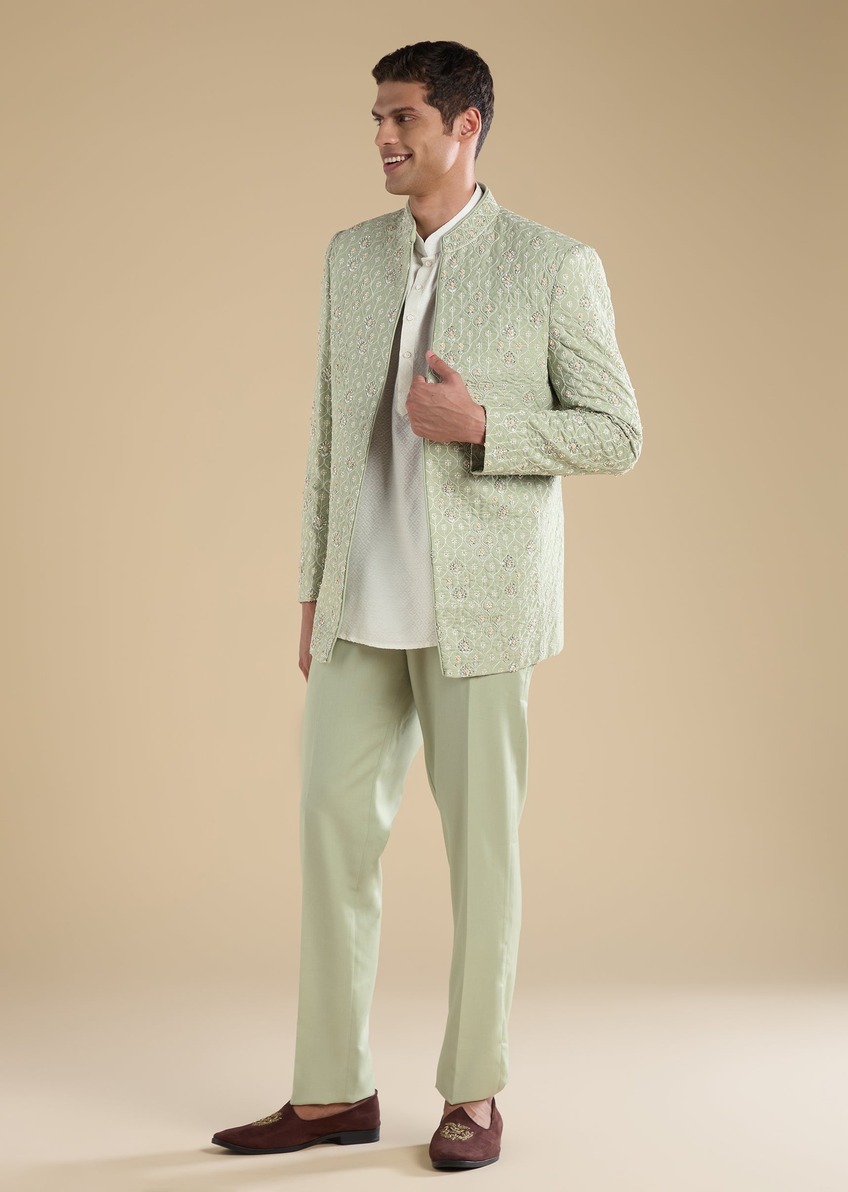 Green Embellished Jodhpuri Set