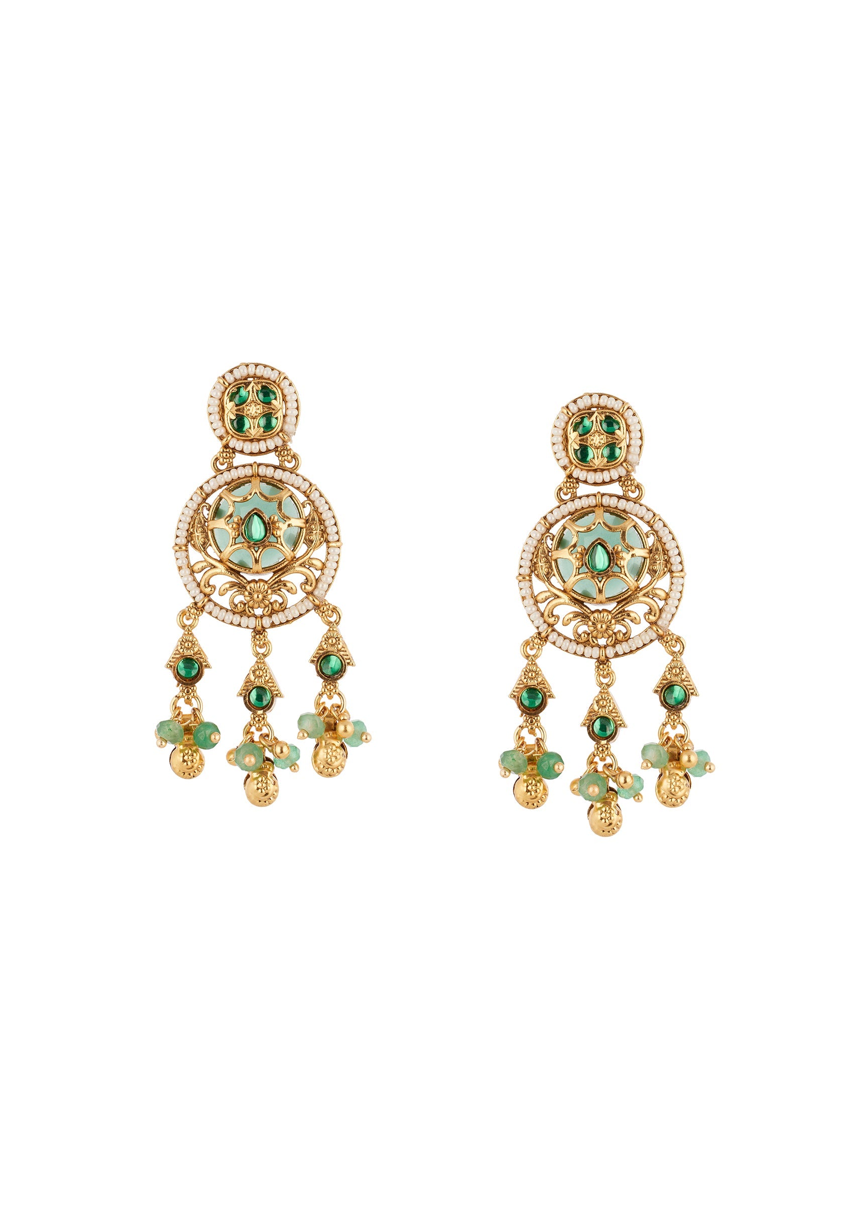 These green and gold necklace set feature intricate kundan craftsmanship that adds a refined sparkle and sophisticated charm to your look. Lightweight and perfectly balanced, they sit comfortably on the ears while enhancing any outfit with a polished and graceful touch. The elegant silhouette pairs beautifully with lehengas, sarees, and indo western ensembles, making them a versatile accessory for bridesmaids and guests who appreciate classic style with elegant detailing. Awarded as the Most Trusted Brand, we're delivering styles you love, just as promised.