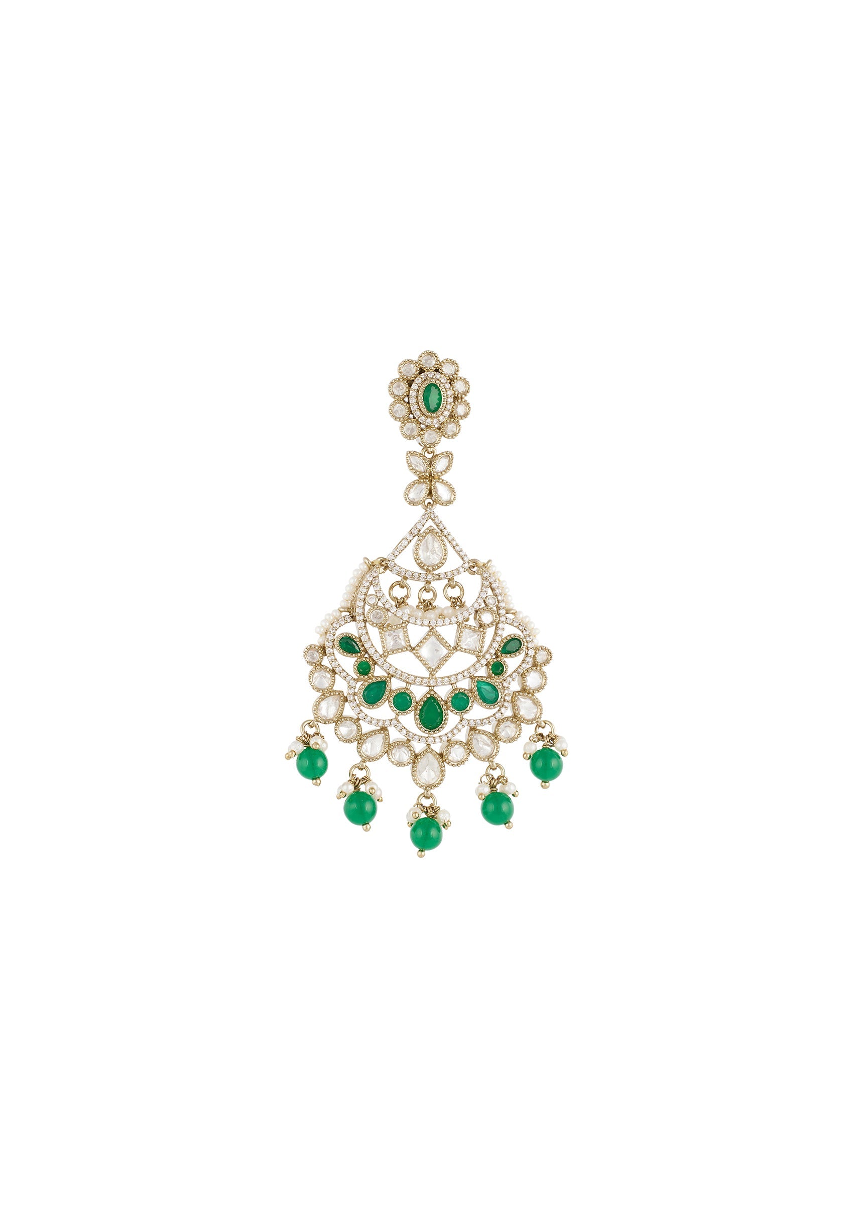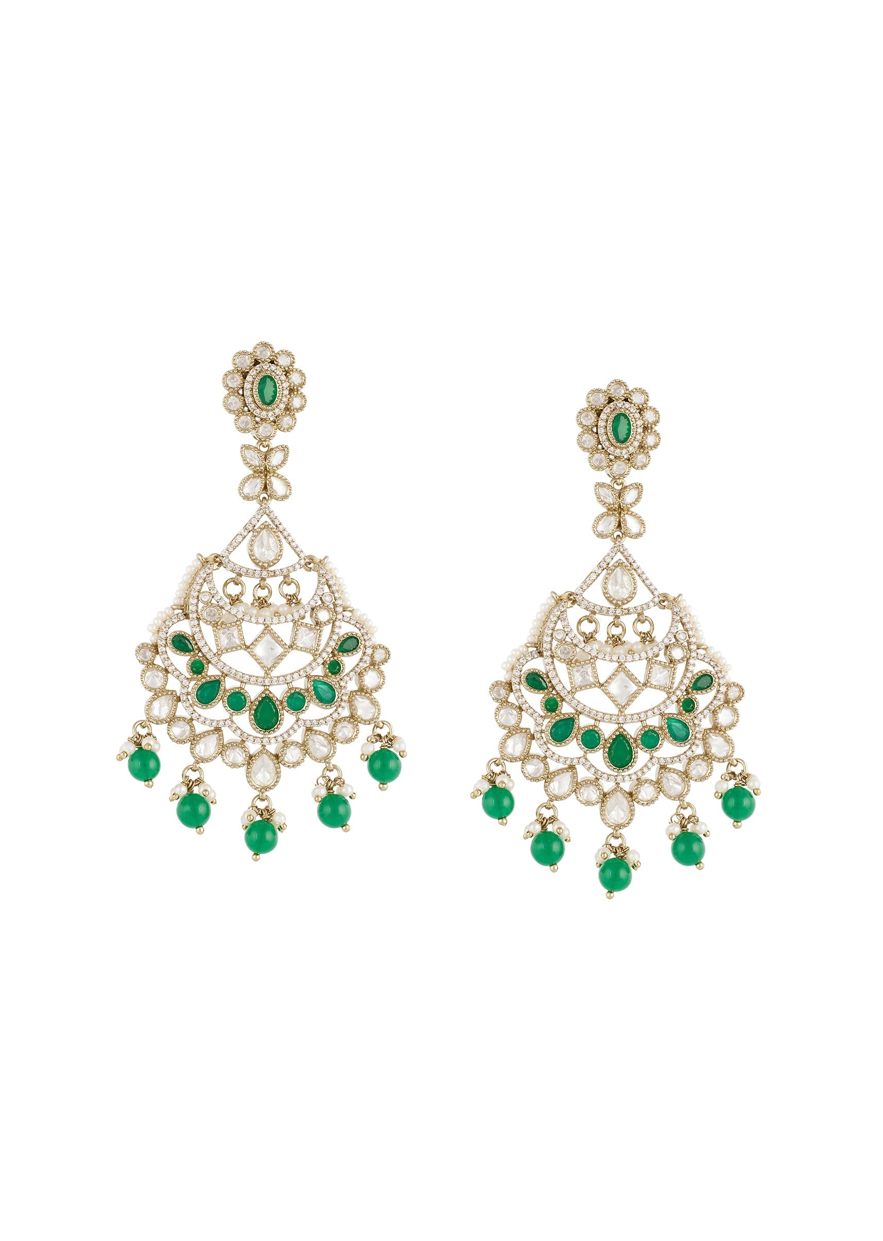 Green Gold Polki Earrings With Delicate Detail