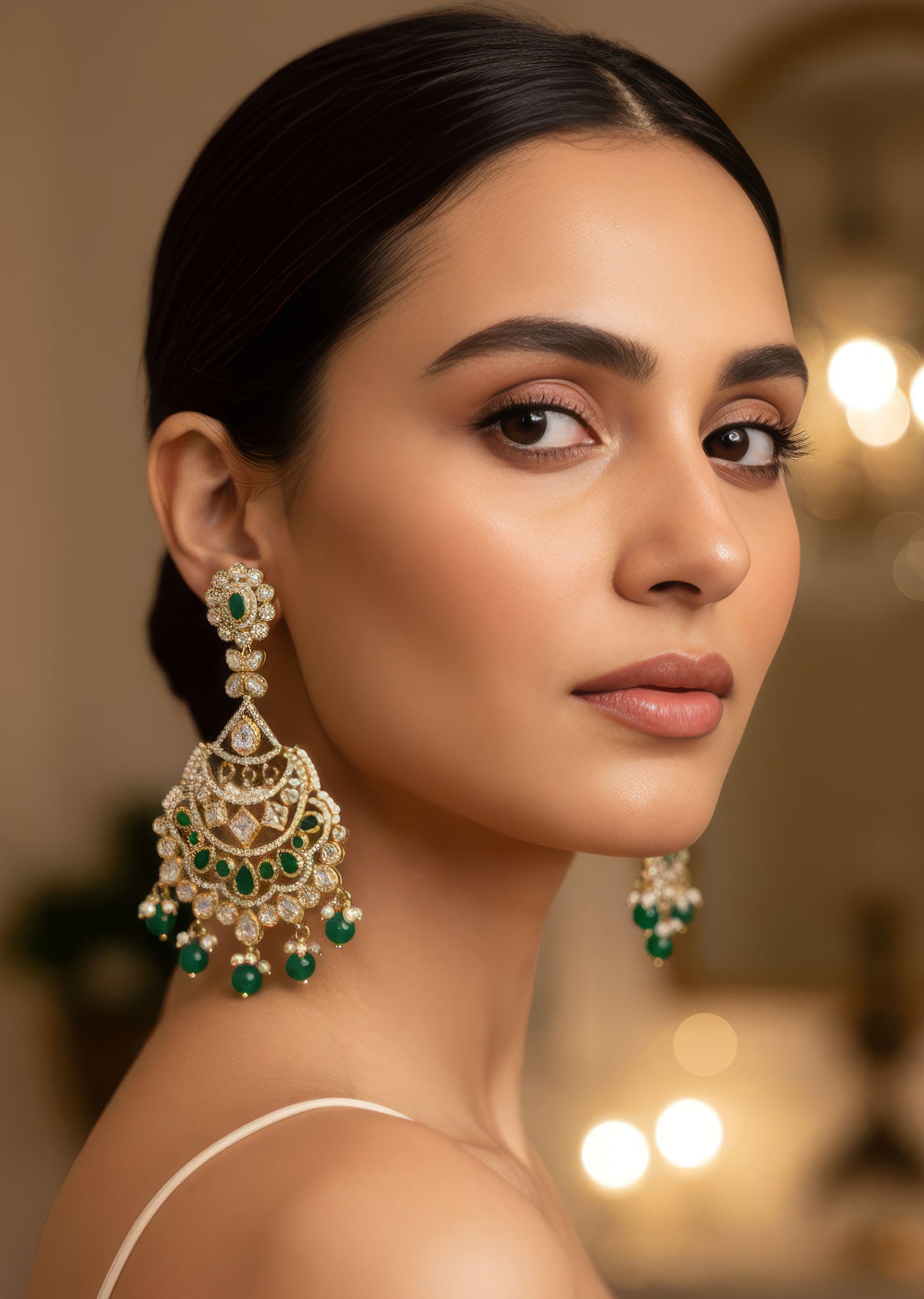 Pair them with green, gold, or pastel outfits to highlight the delicate polki work and elevate your overall look.