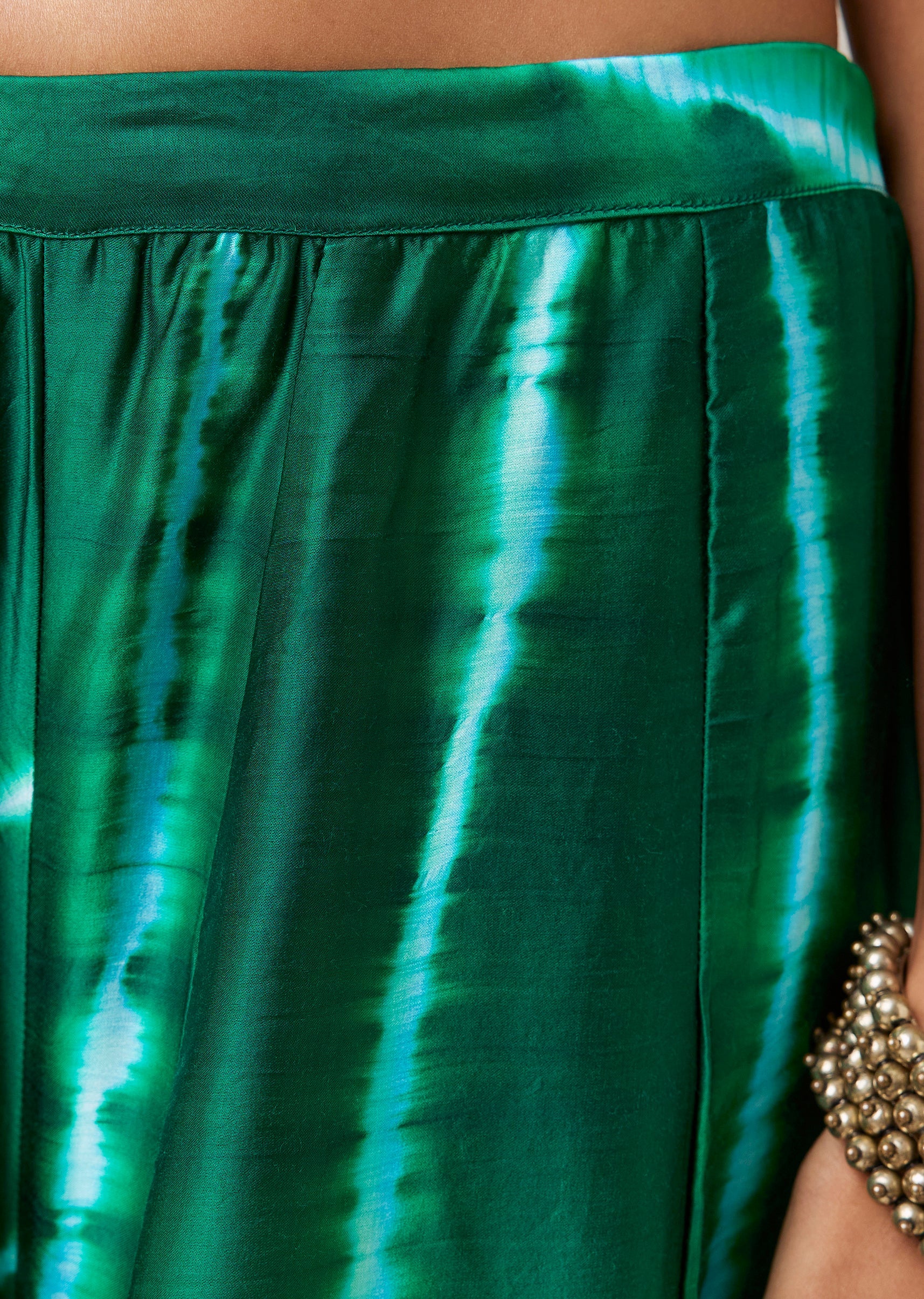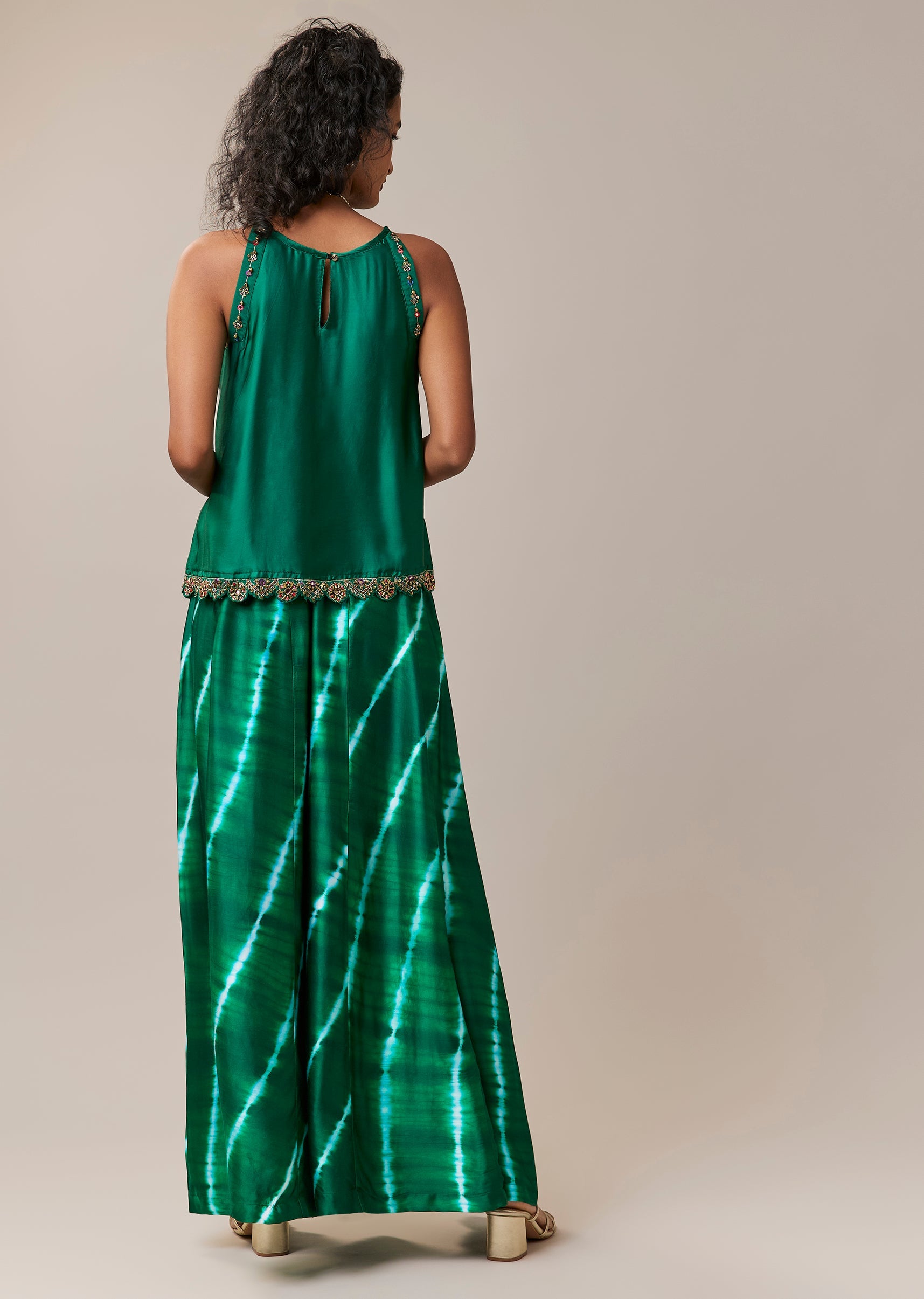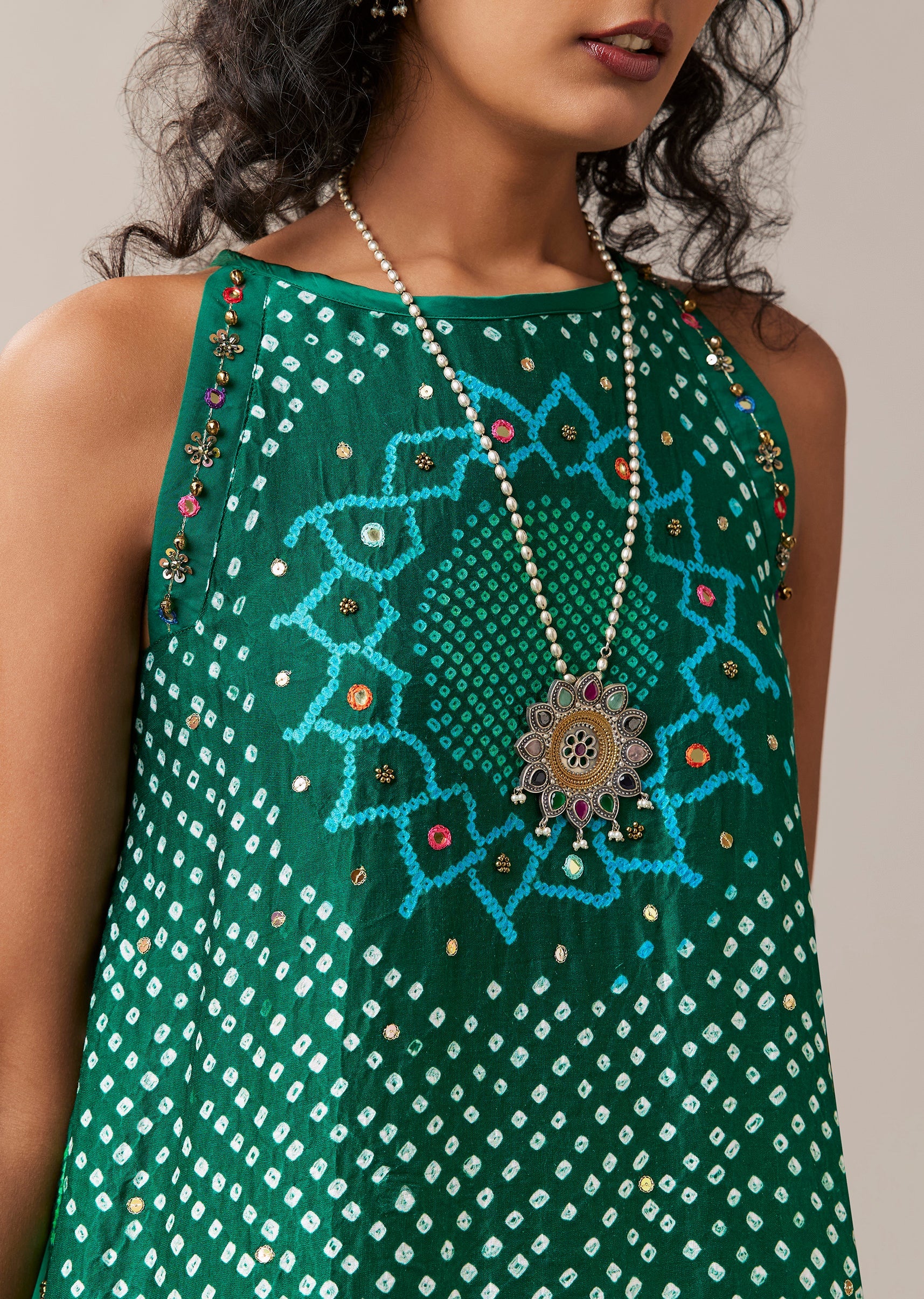 Green Hand Dyed Bandhani Top and Pant Set with Mirrors