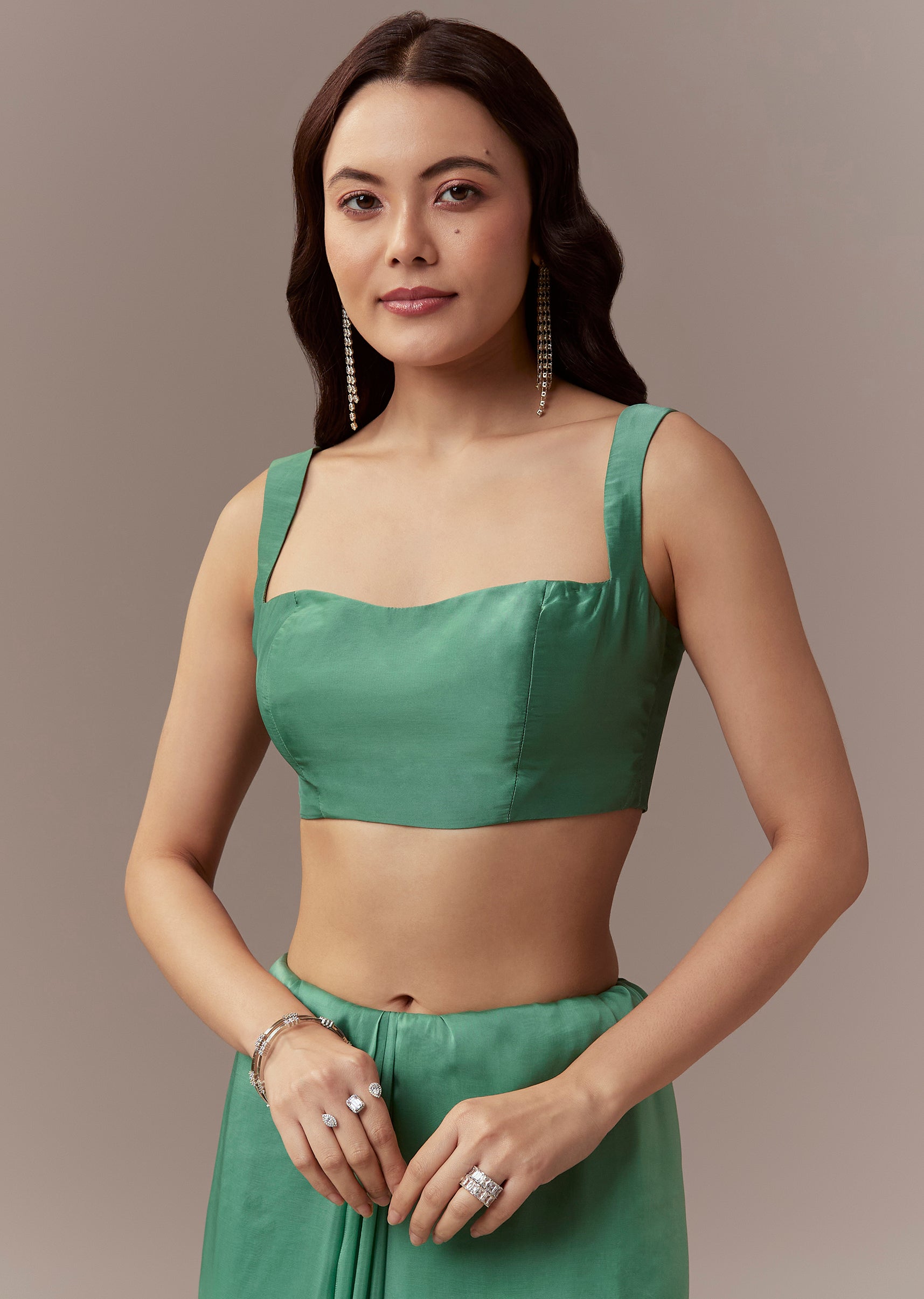 Fit Tips:Drape the saree comfortably at the waist and pleat evenly ensuring the blouse is stitched to fit perfectly for a graceful silhouette throughout the celebrations.