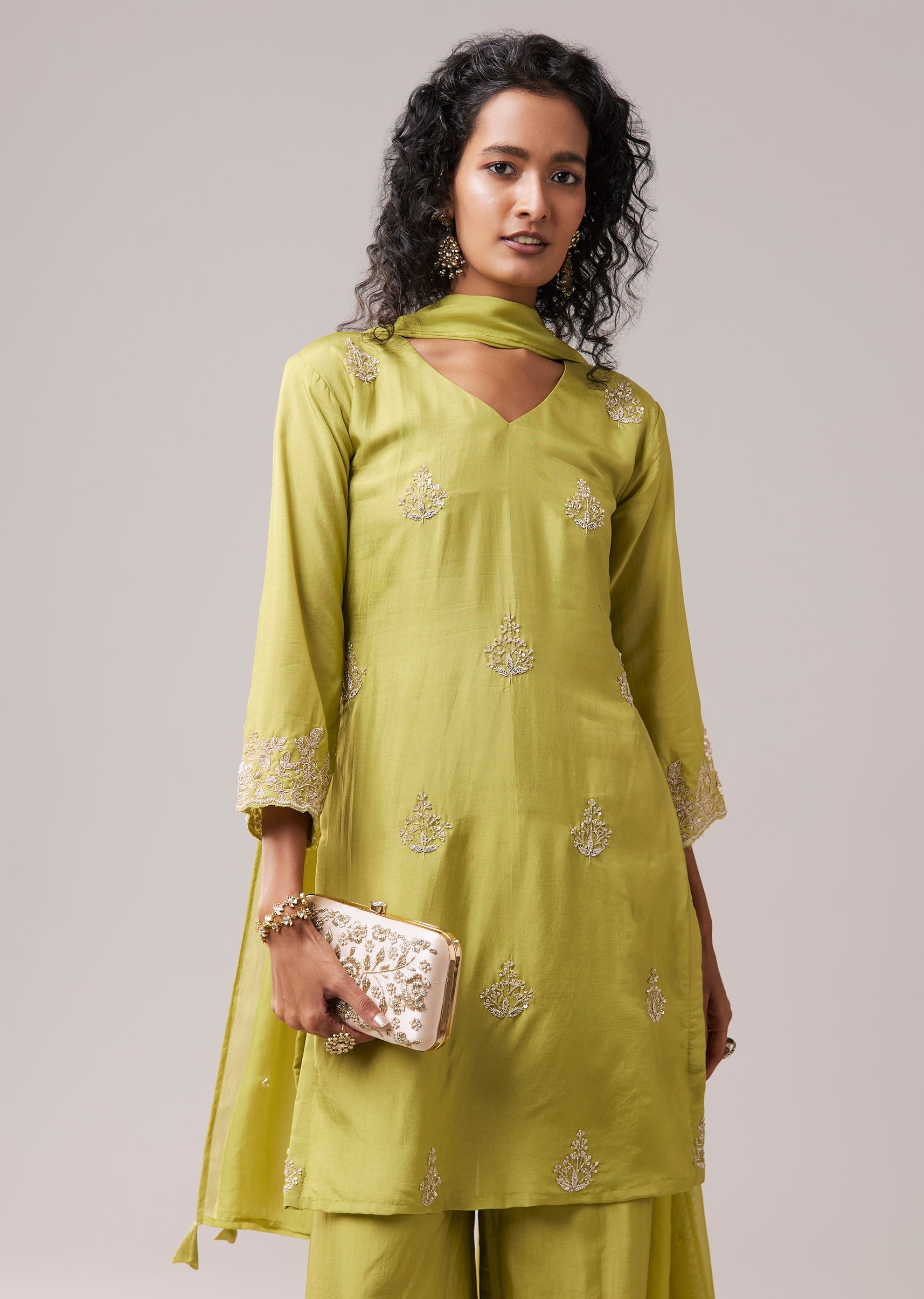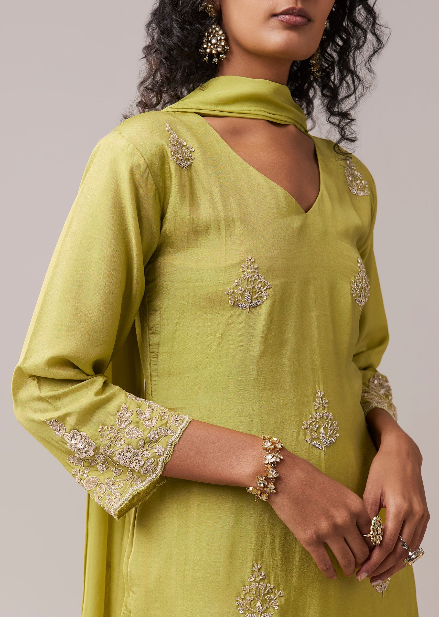 Green Kurta Palazzo Set in Silk with Cutdana Work