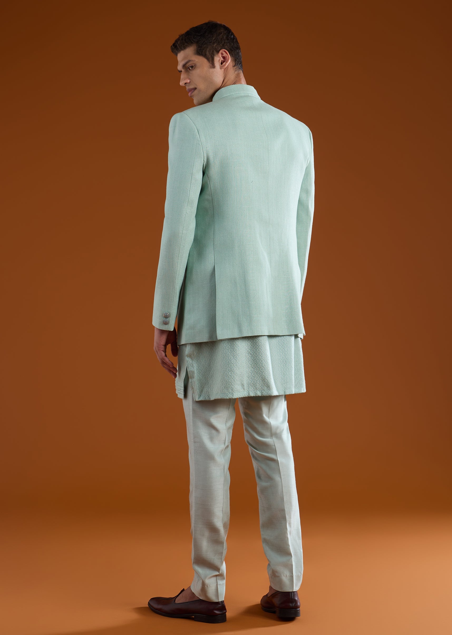 Complete the look with traditional juttis or mojaris and keep accessories minimal for an authentic jodhpuri appeal.