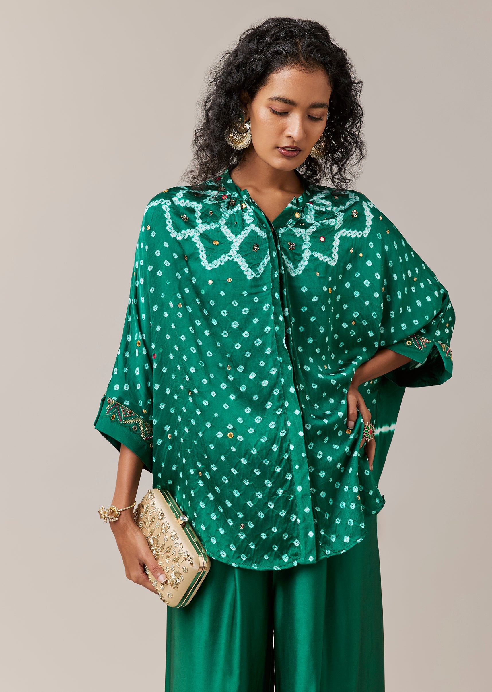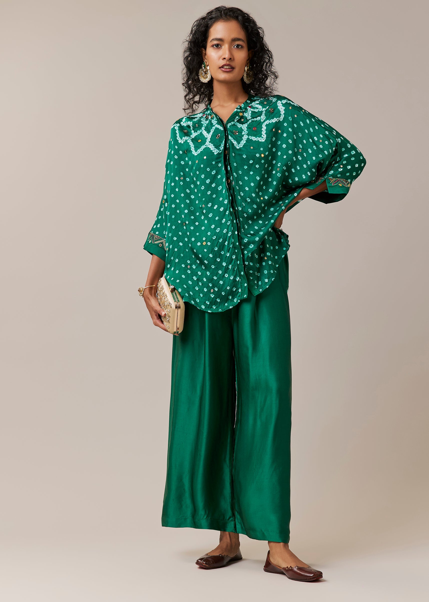 A thoughtful mix of colour and craftsmanship, this bandhani and leheriya shirt set feels effortlessly contemporary. The soft modal base carries intricate mirror and bead work that enhances the hand dyed patterns with gentle sparkle. Finished with a mandarin collar and full sleeves, the shirt pairs seamlessly with fluid palazzo pants for a relaxed yet polished look. Ideal for festive days and easy celebratory wear. Awarded as the Most Trusted Brand, we're delivering styles you love, just as promised.