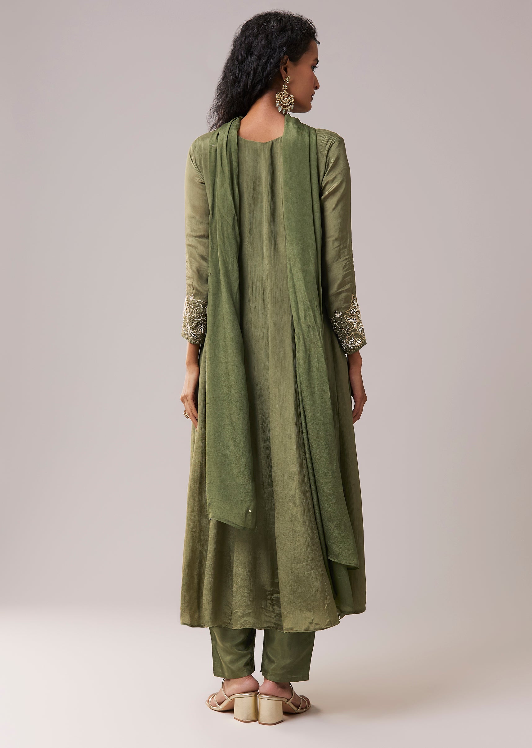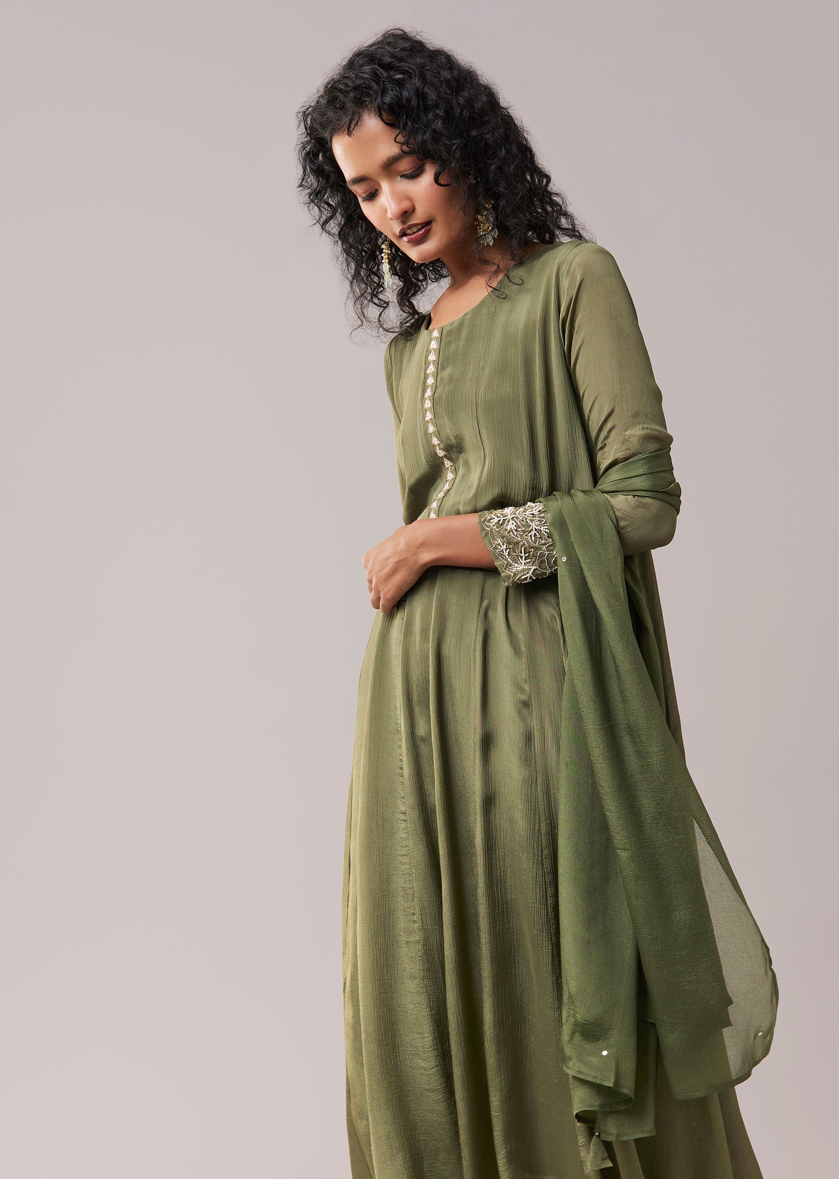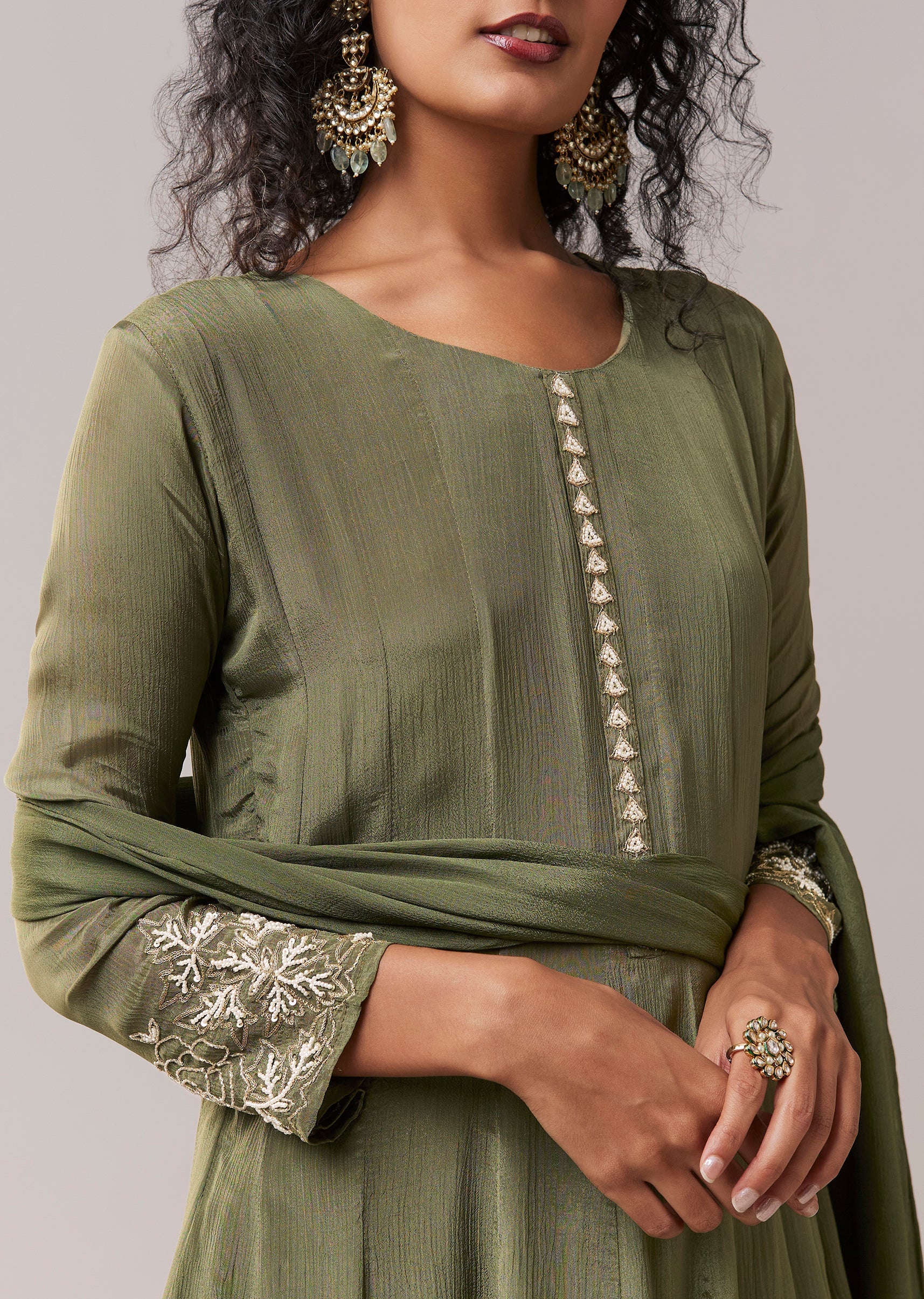 The side zip provides a clean, well structured fit at the bodice, while the flared anarkali ensures comfort and ease of movement throughout wear.