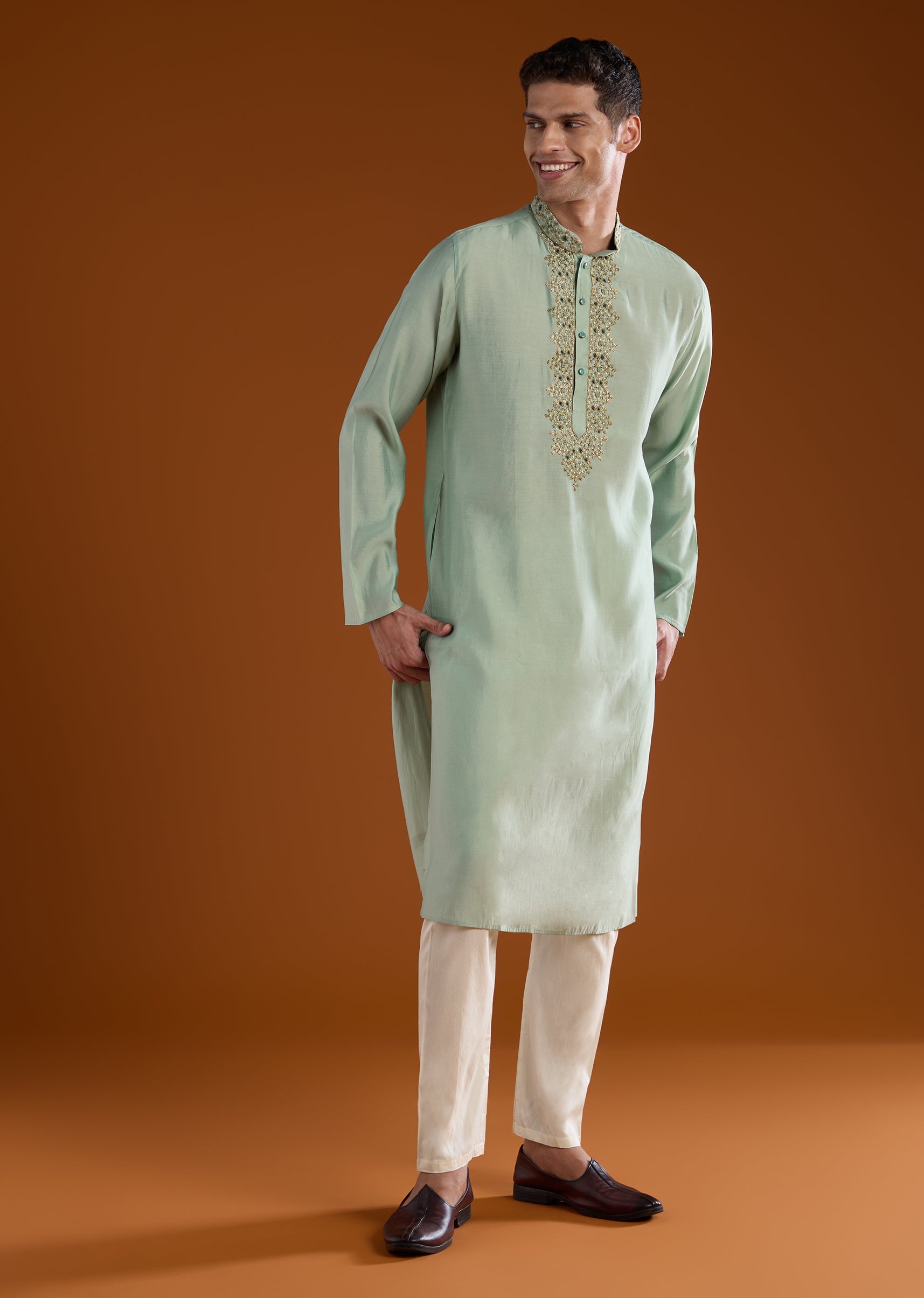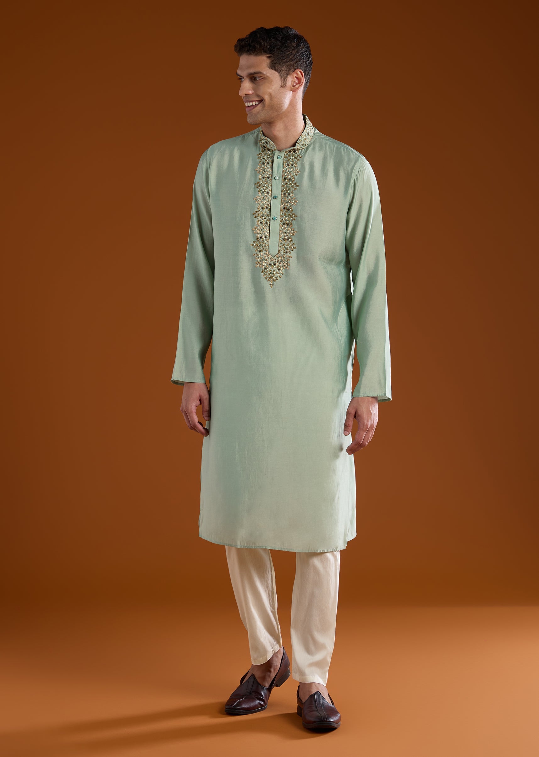 Match it with embroidered juttis and a sleek watch for a refined well dressed look.