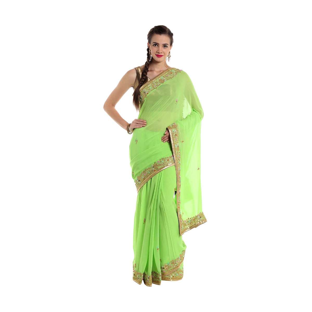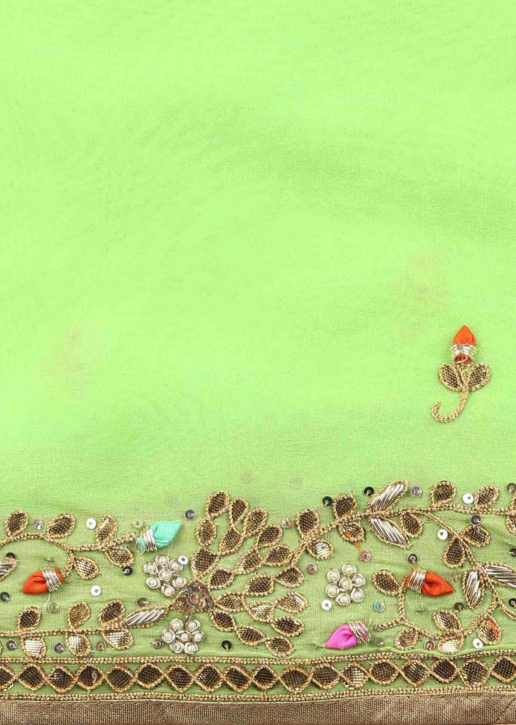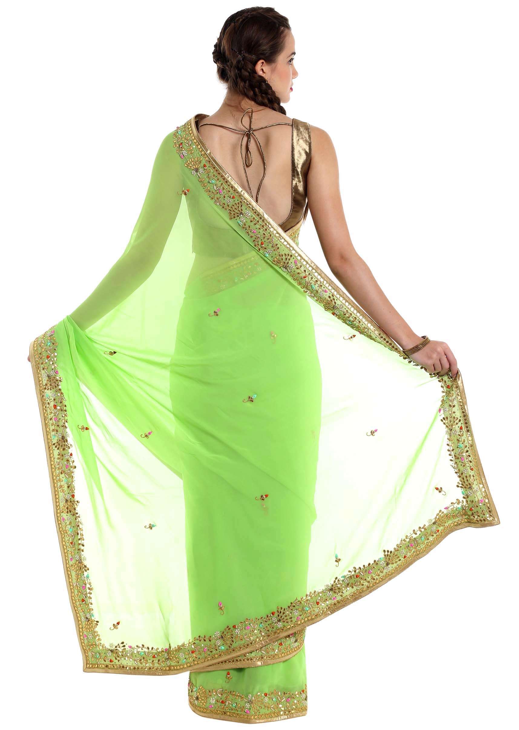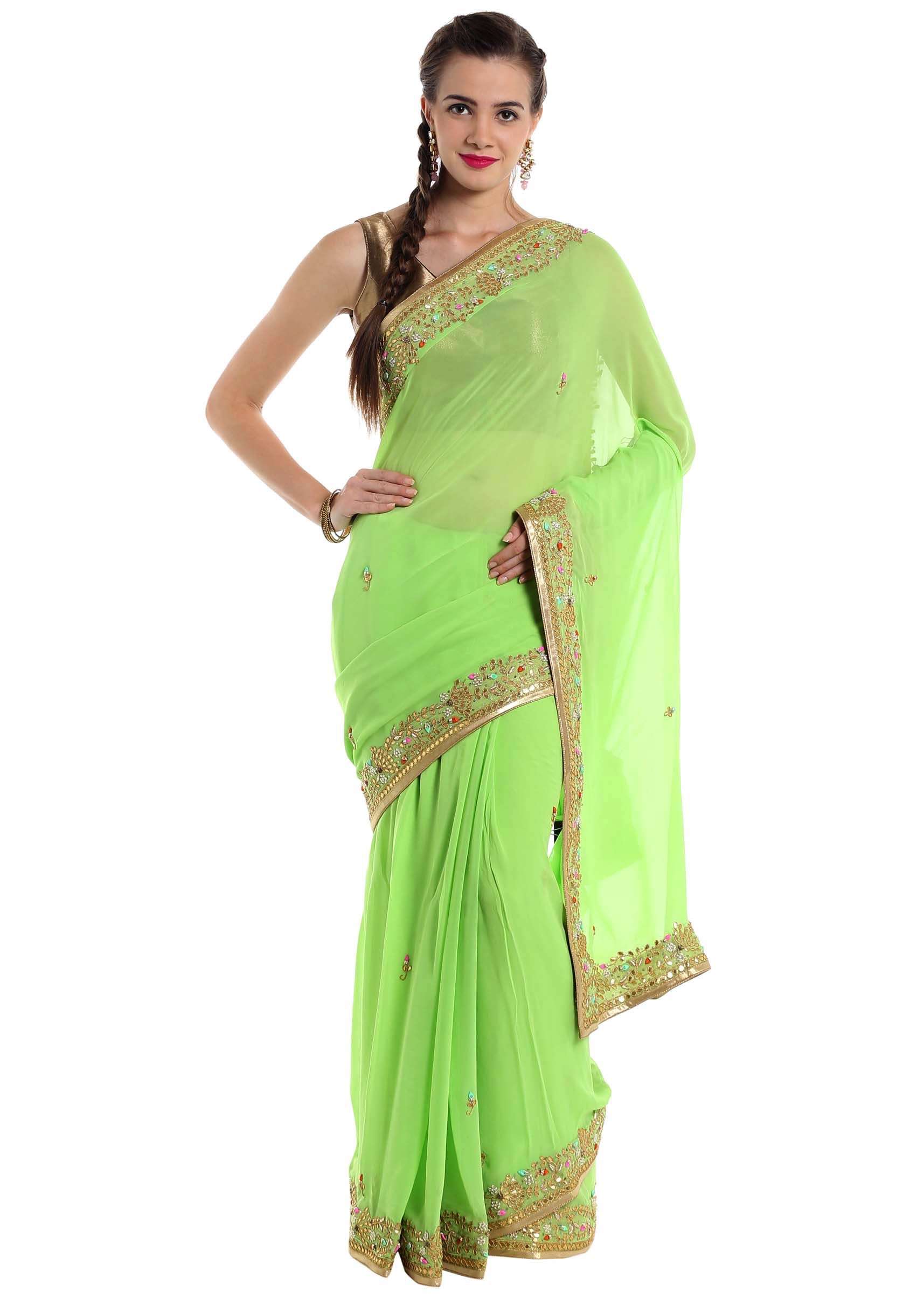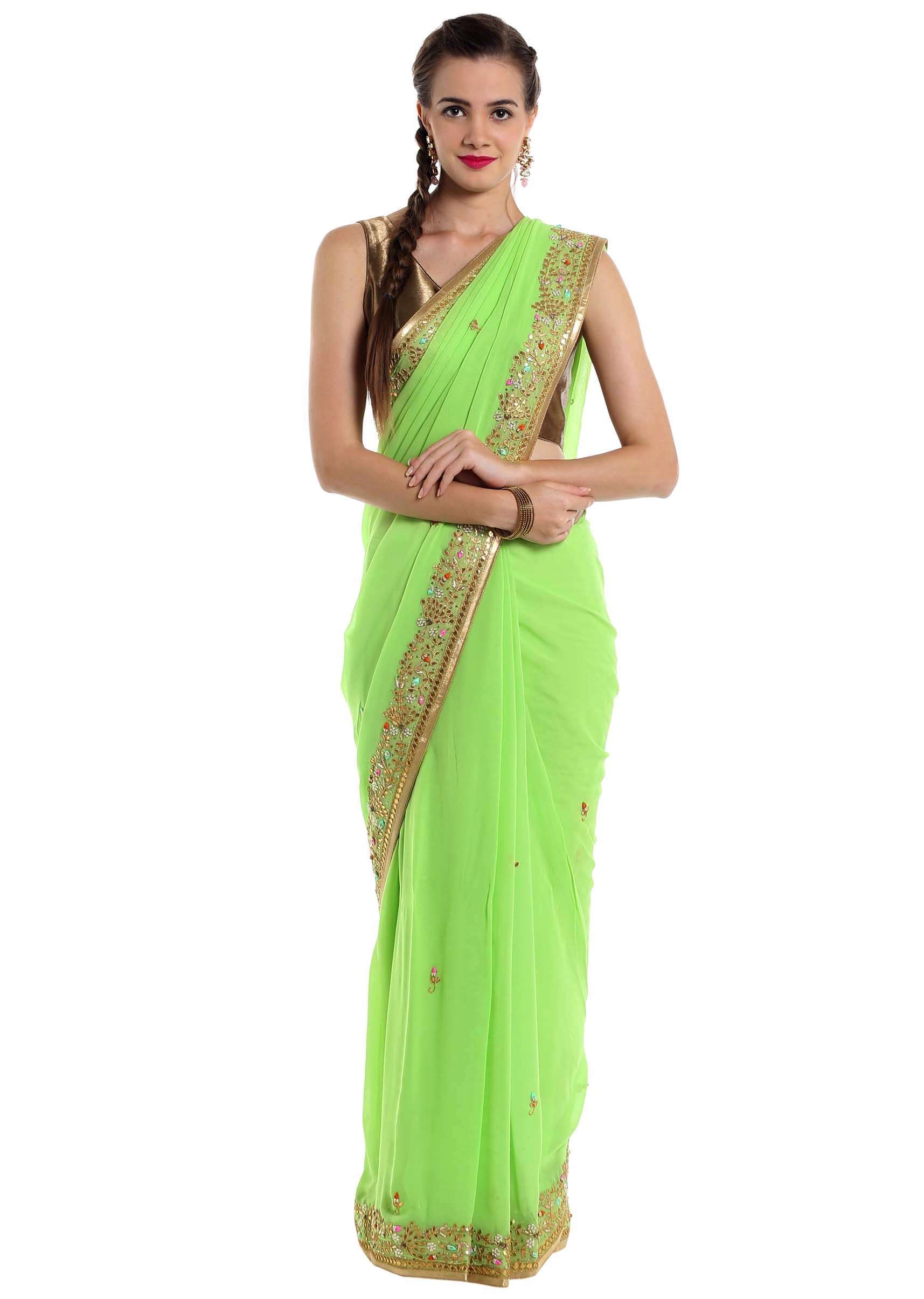 Green Saree Ingeorgette Adorned With Gotta Patch Work Online - Kalki Fashion