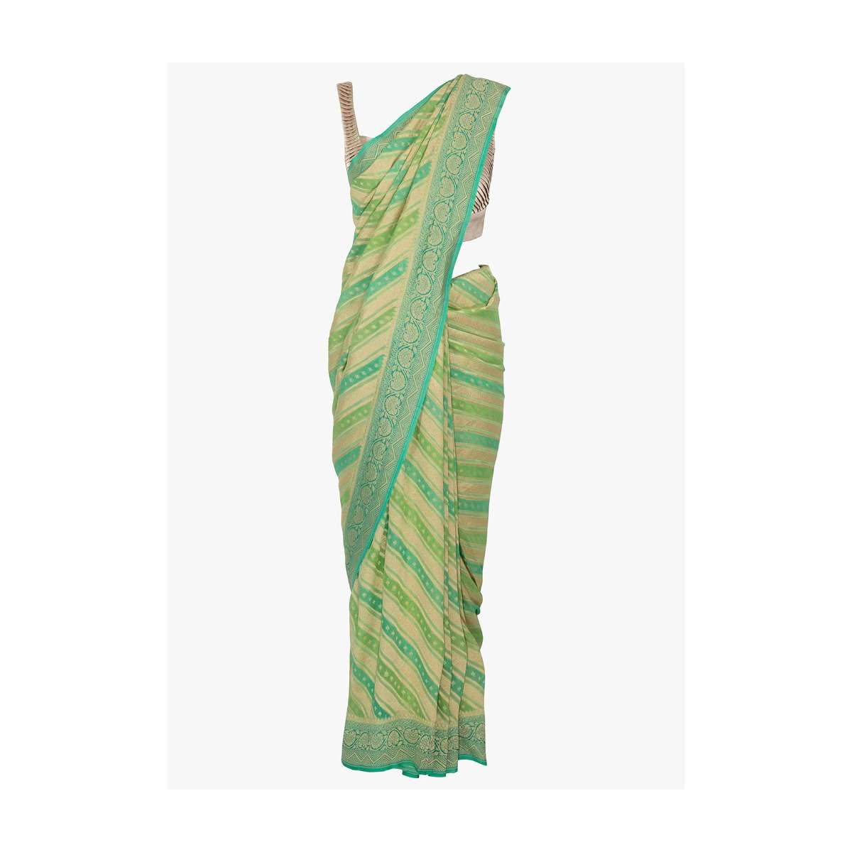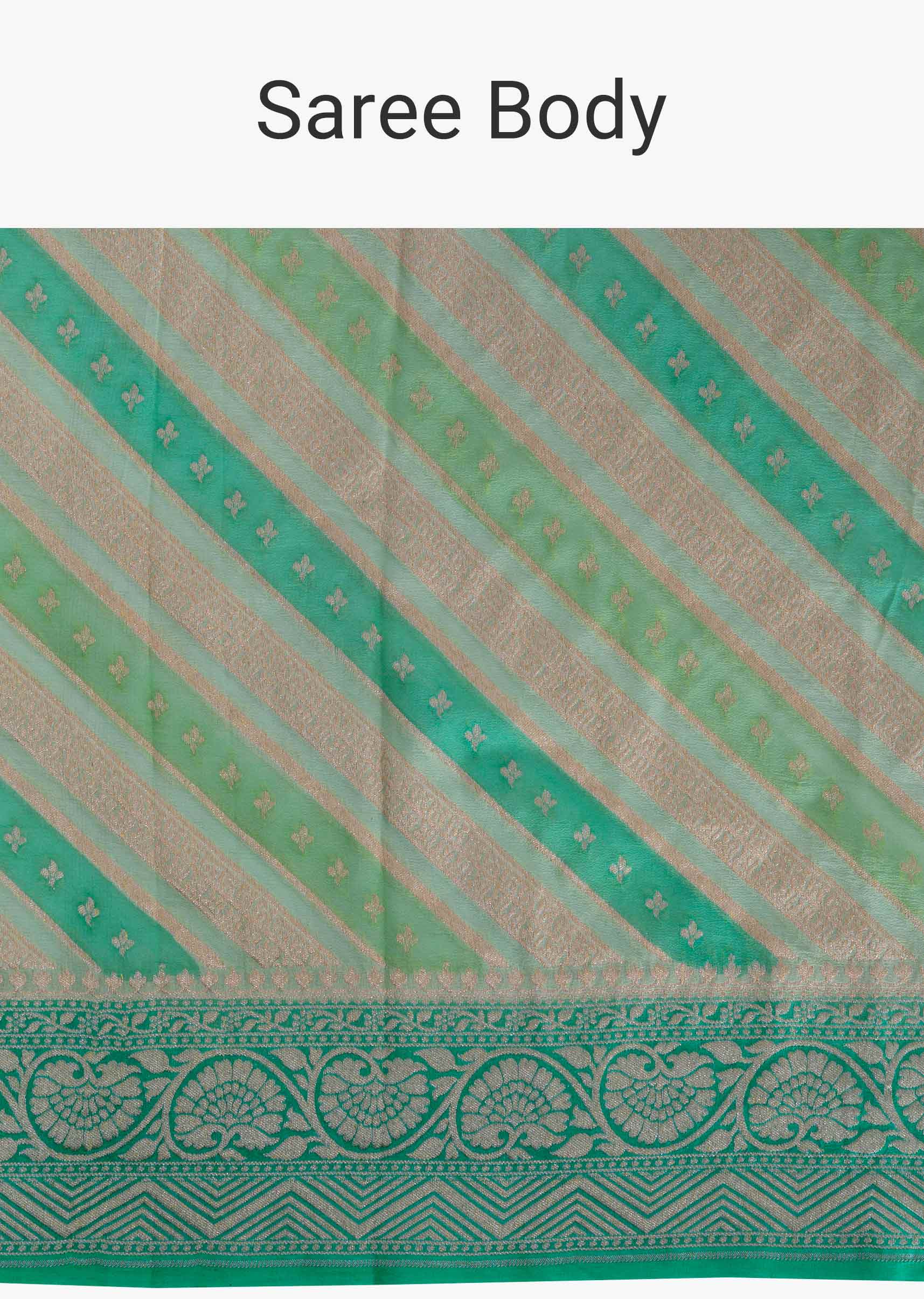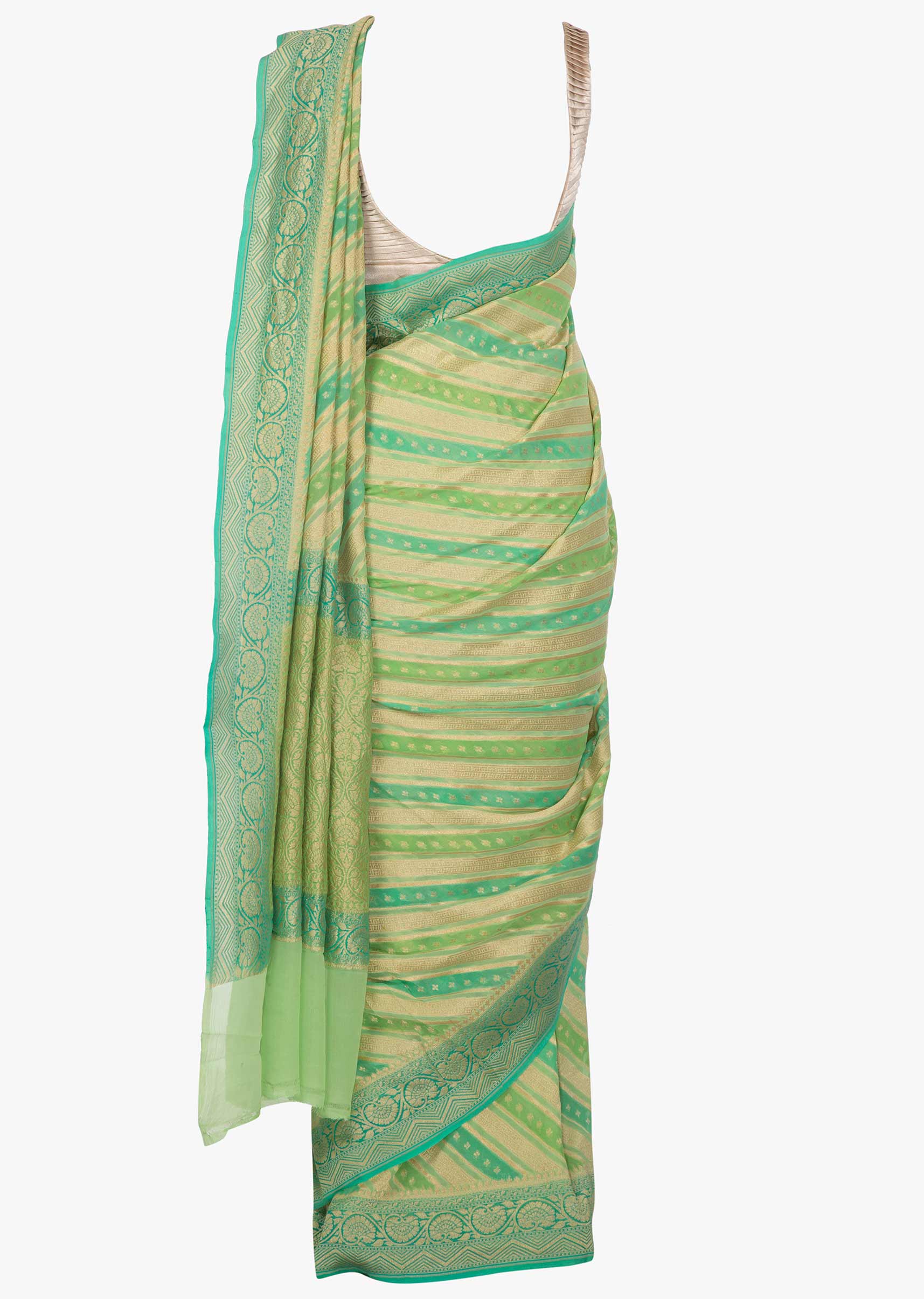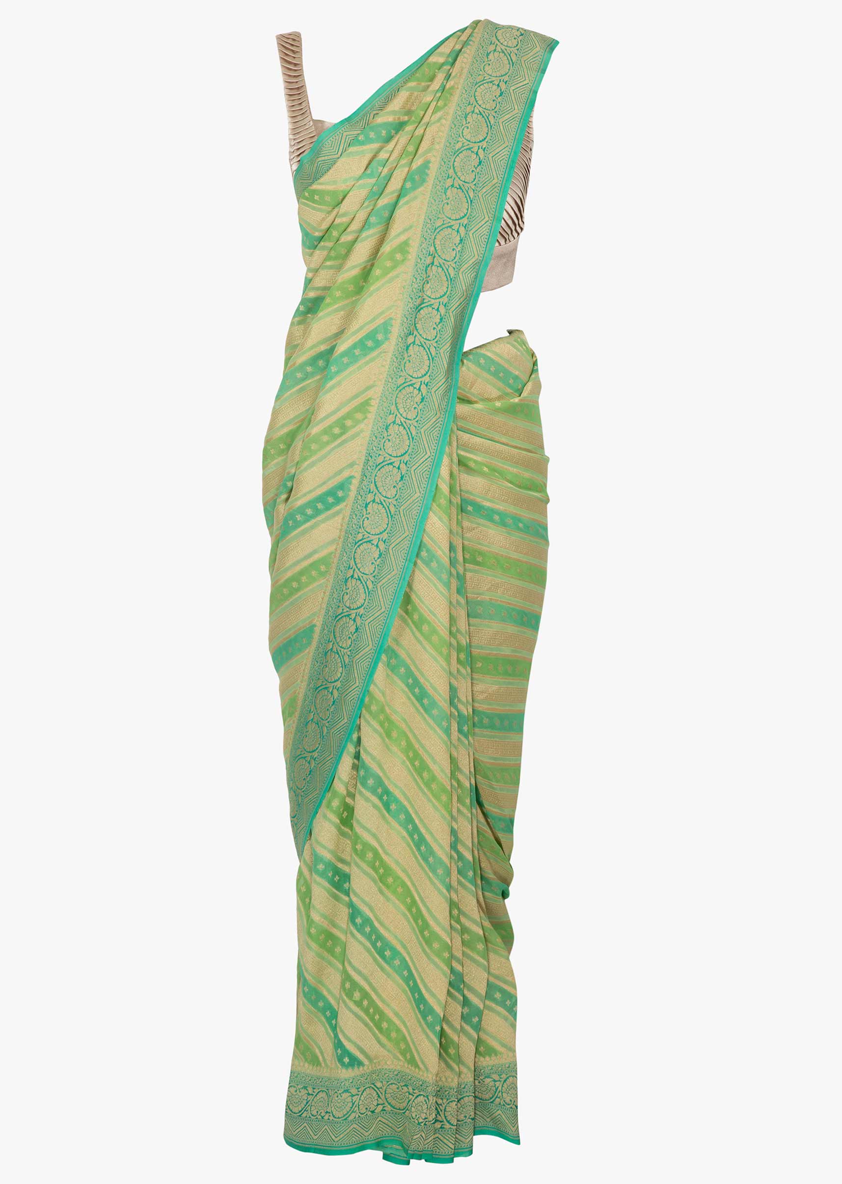 Green Saree With Shaded Effect And Weaved With Stripes And Buttis Online - Kalki Fashion