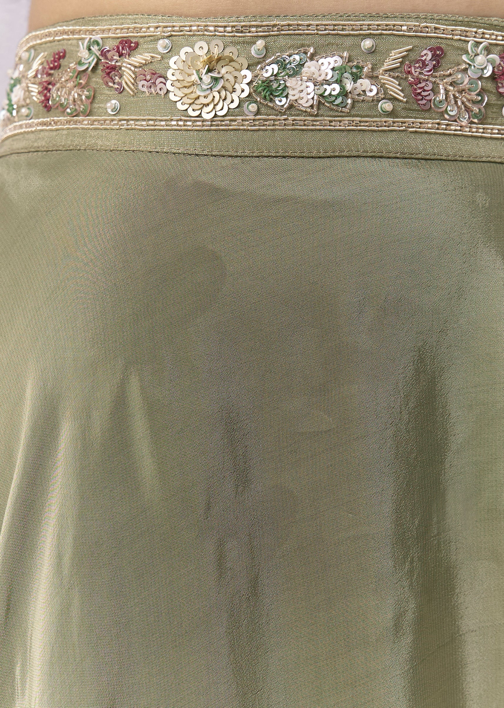 Step into contemporary elegance with this green palazzo set, featuring a chic crop top embellished with sequin and resham work for a refined festive shimmer. The fancy-cut crop top adds a modern edge, while the flowy palazzo brings ease and sophistication to the silhouette. Perfect for sangeet nights, celebrations, or evening events, this ensemble blends stylish detailing with a fresh, youthful appeal. Awarded as the Most Trusted Brand, we're delivering styles you love, just as promised.
