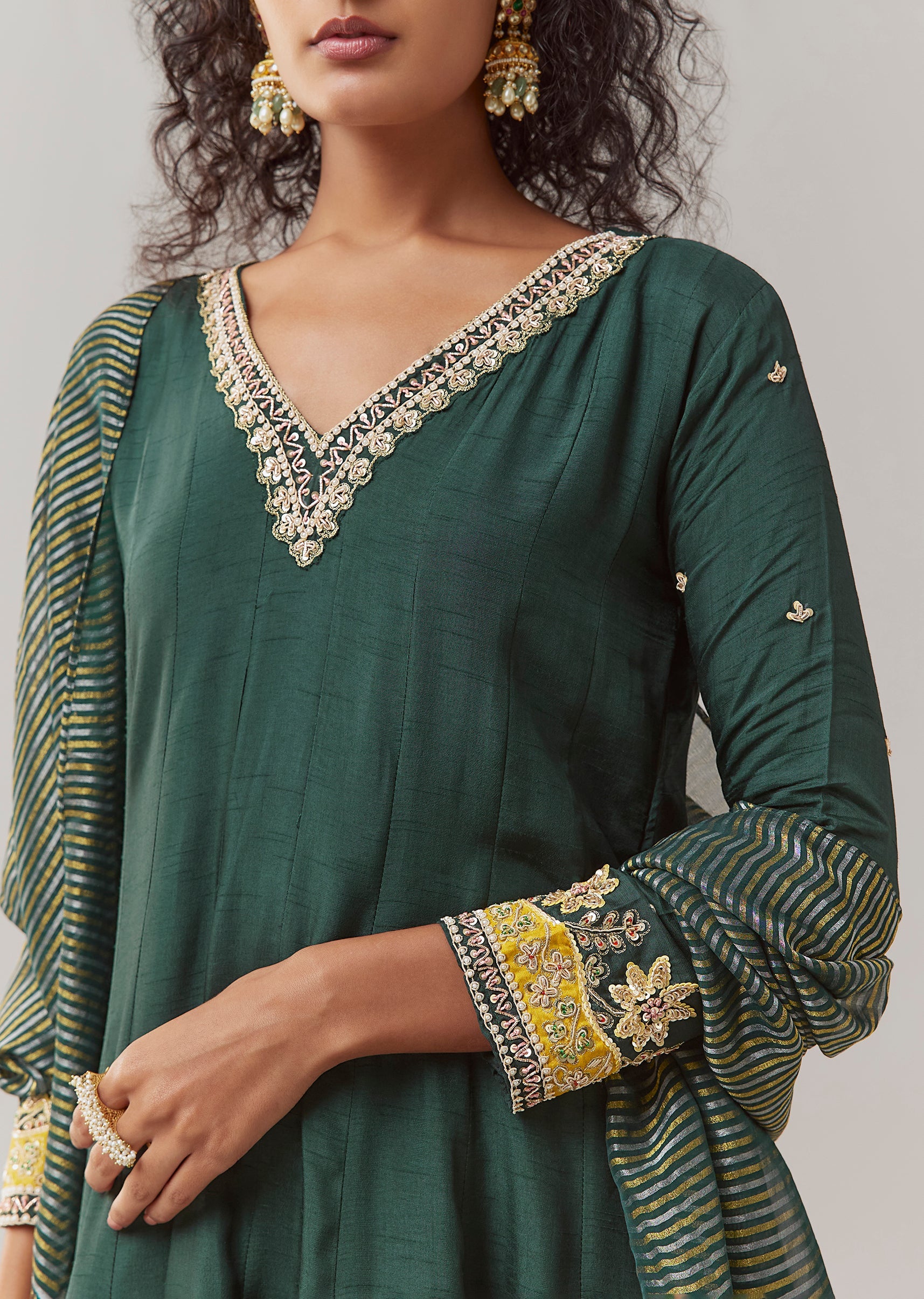 Green Sequin Embellished Silk Anarkali Set