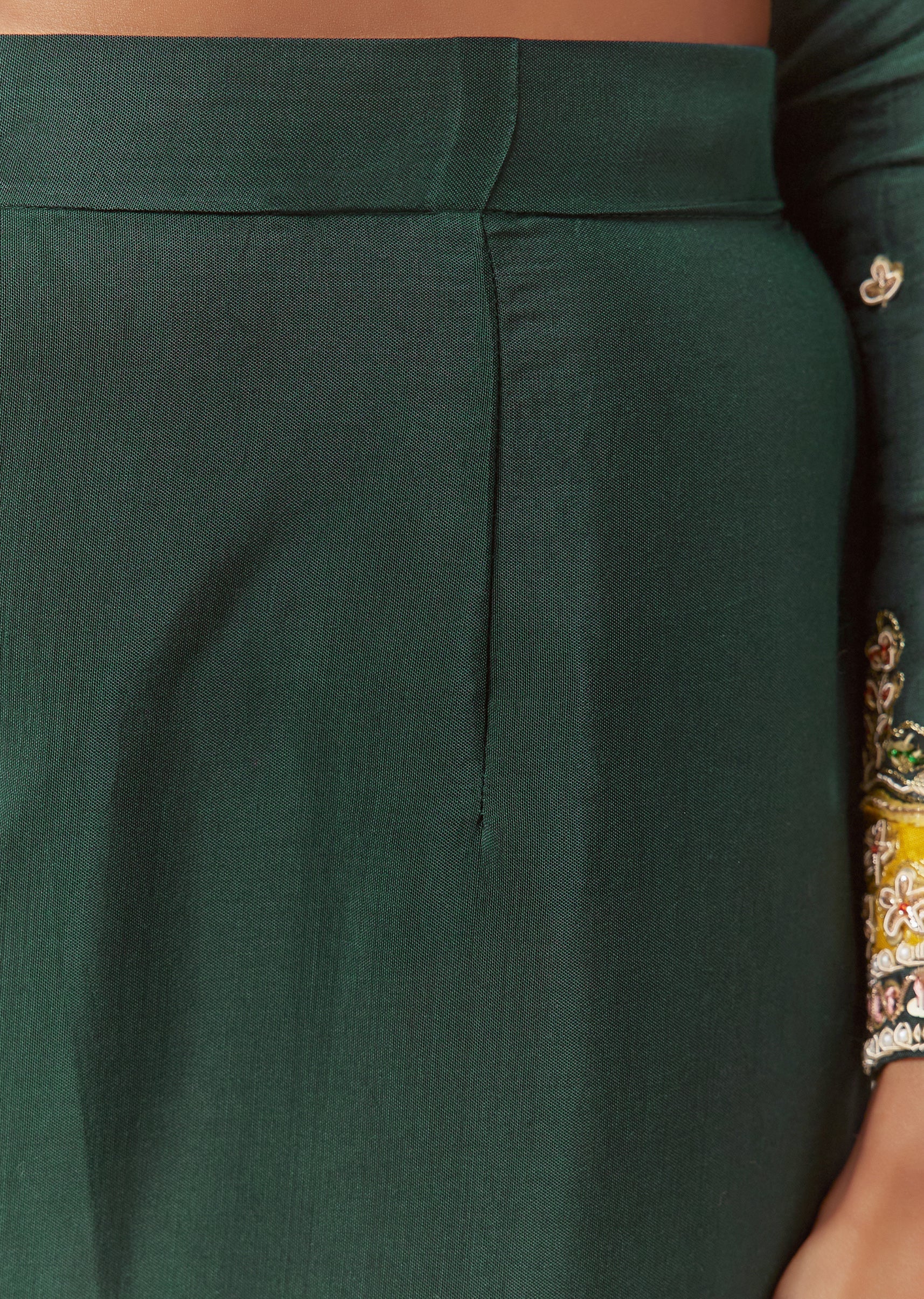 Style Tip Complement with antique gold or kundan jewelry and a neatly styled bun for a regal finish. Fit Tip The side zip offers a clean, contoured fit at the bodice, while the anarkali flare ensures comfort and graceful drape throughout wear.