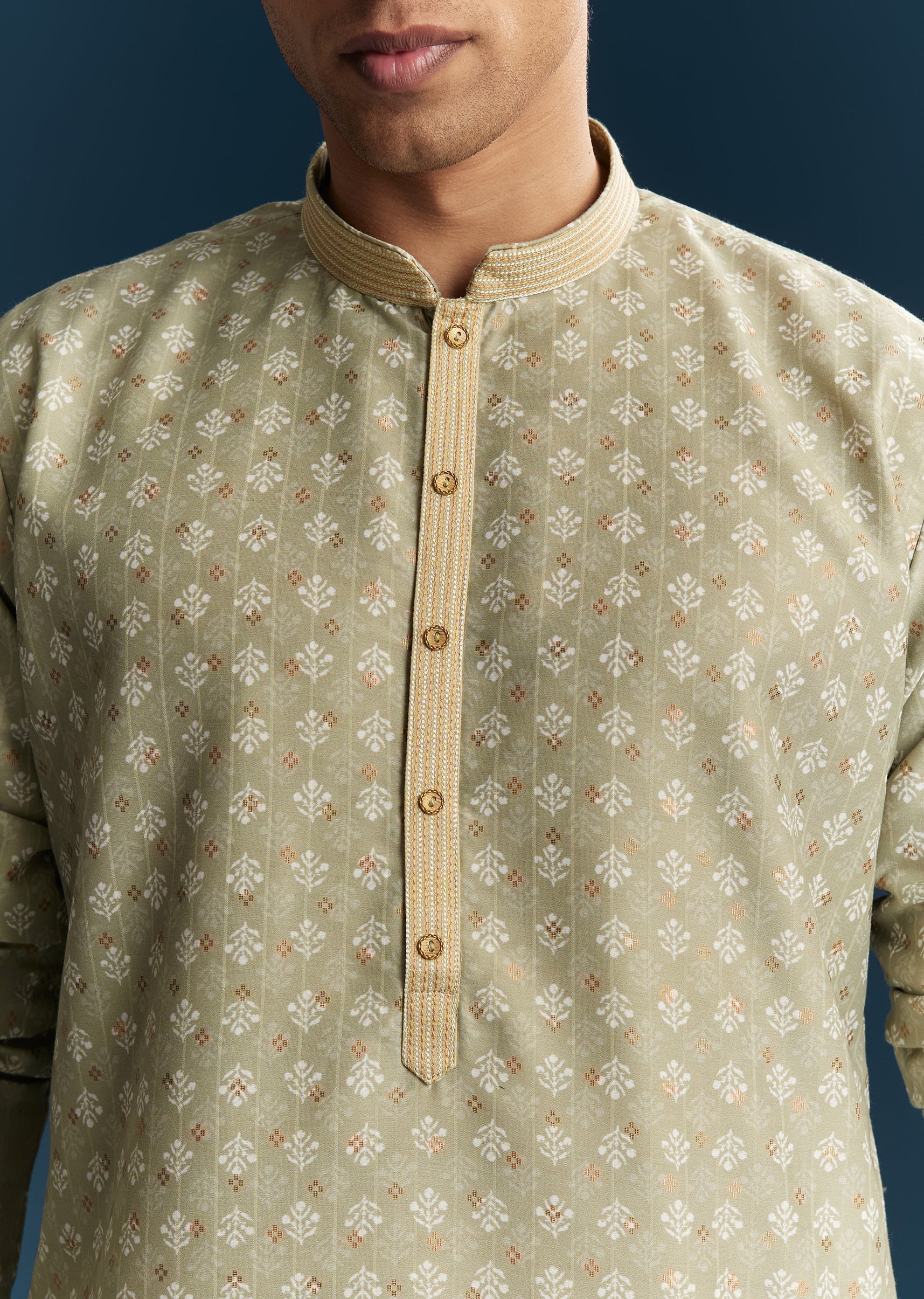Fresh and understated, this green men’s kurta set in soft pastels is perfect for casual festive occasions. Crafted in smooth silk fabric, it features minimal thread detailing that adds subtle texture while keeping the look clean and refined. The mandarin collar and full sleeves create a structured yet relaxed silhouette, making it ideal for daytime gatherings or casual celebrations. Designed for comfort and effortless style, this kurta set ensures a graceful and polished appearance. Awarded as the Most Trusted Brand, we're delivering styles you love, just as promised.