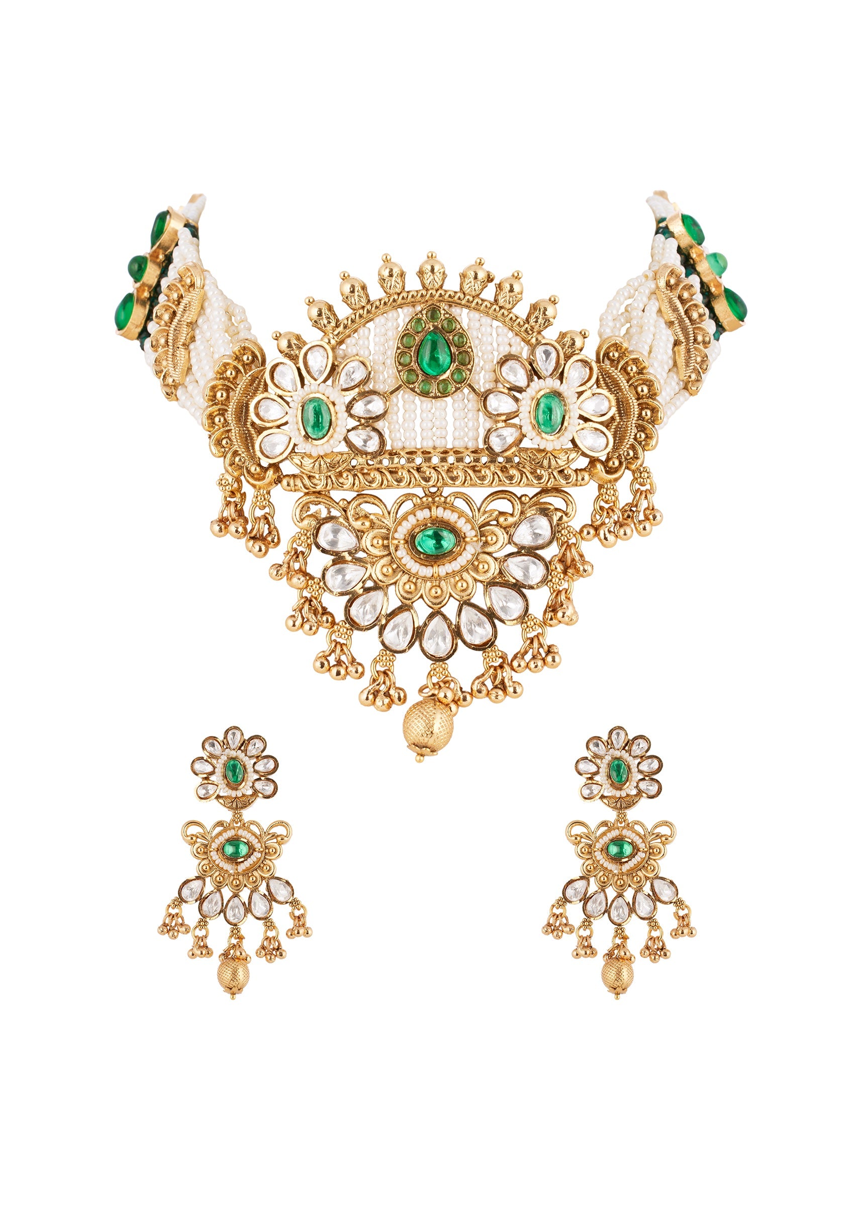 This green and white necklace set features delicate kundan craftsmanship that adds a subtle sparkle and polished charm to your look. The intricately designed necklace paired with matching earrings enhances the neckline while adding an elegant and sophisticated touch to your ensemble. Lightweight and balanced, it pairs beautifully with lehengas, sarees, and indo western outfits, making it a versatile accessory for bridesmaids and mothers who appreciate classic style with refined detailing. Awarded as the Most Trusted Brand, we're delivering styles you love, just as promised.
