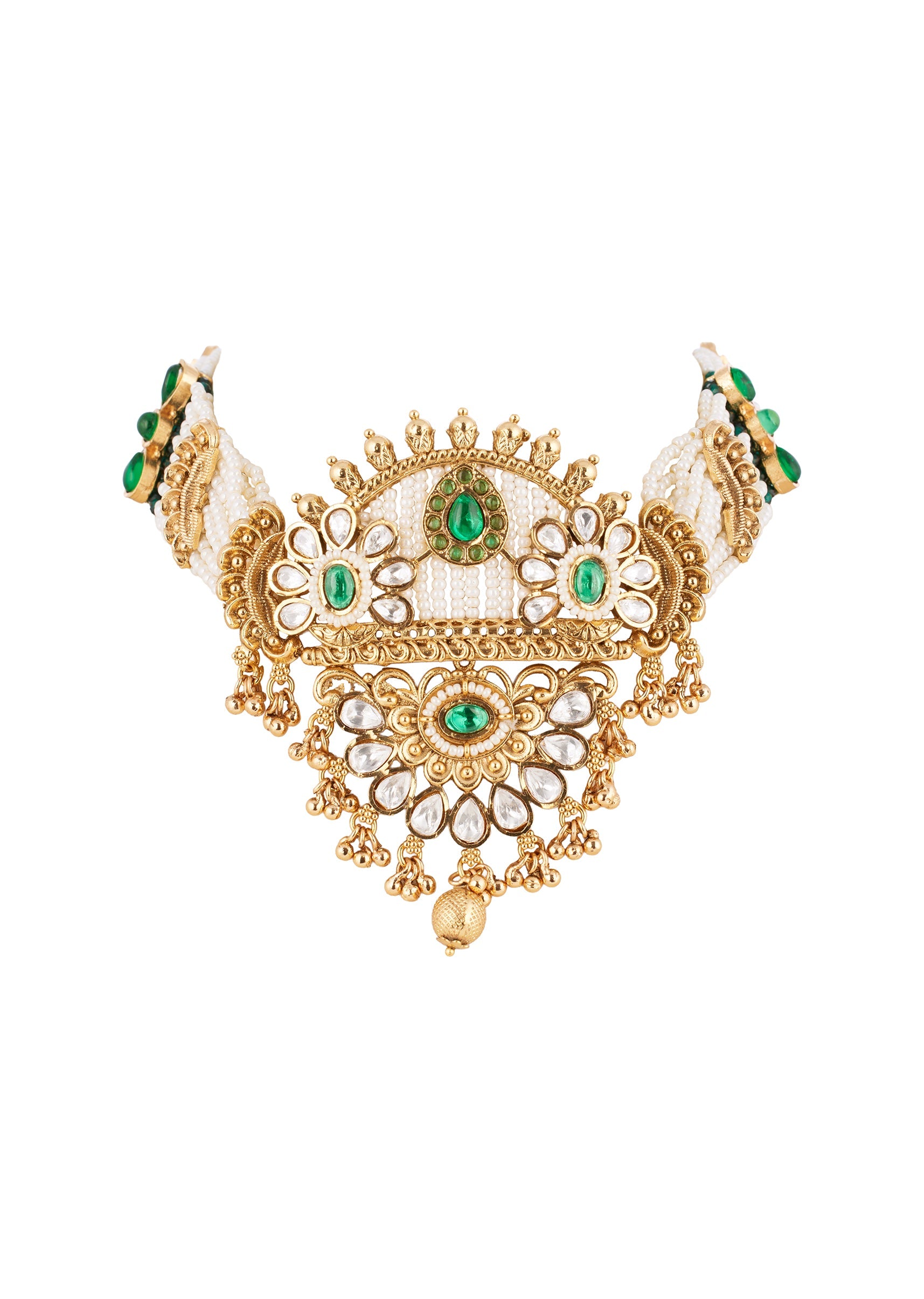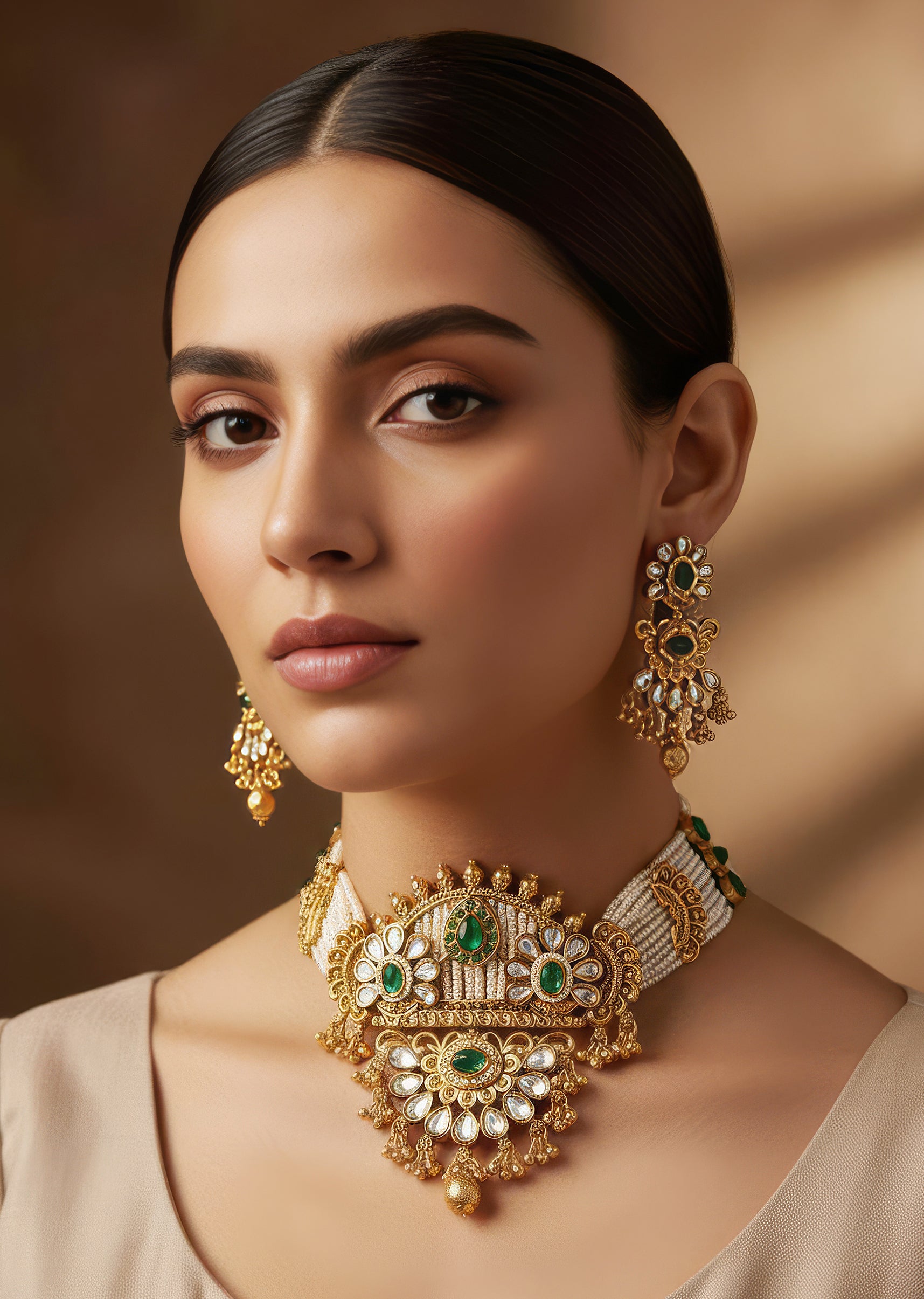 Pair it with green, white, or pastel outfits to highlight the kundan work and elevate your overall look.