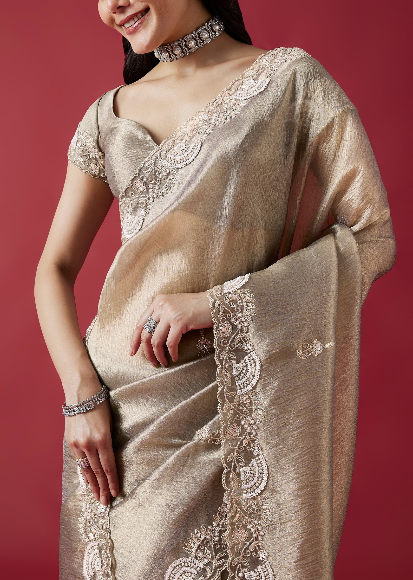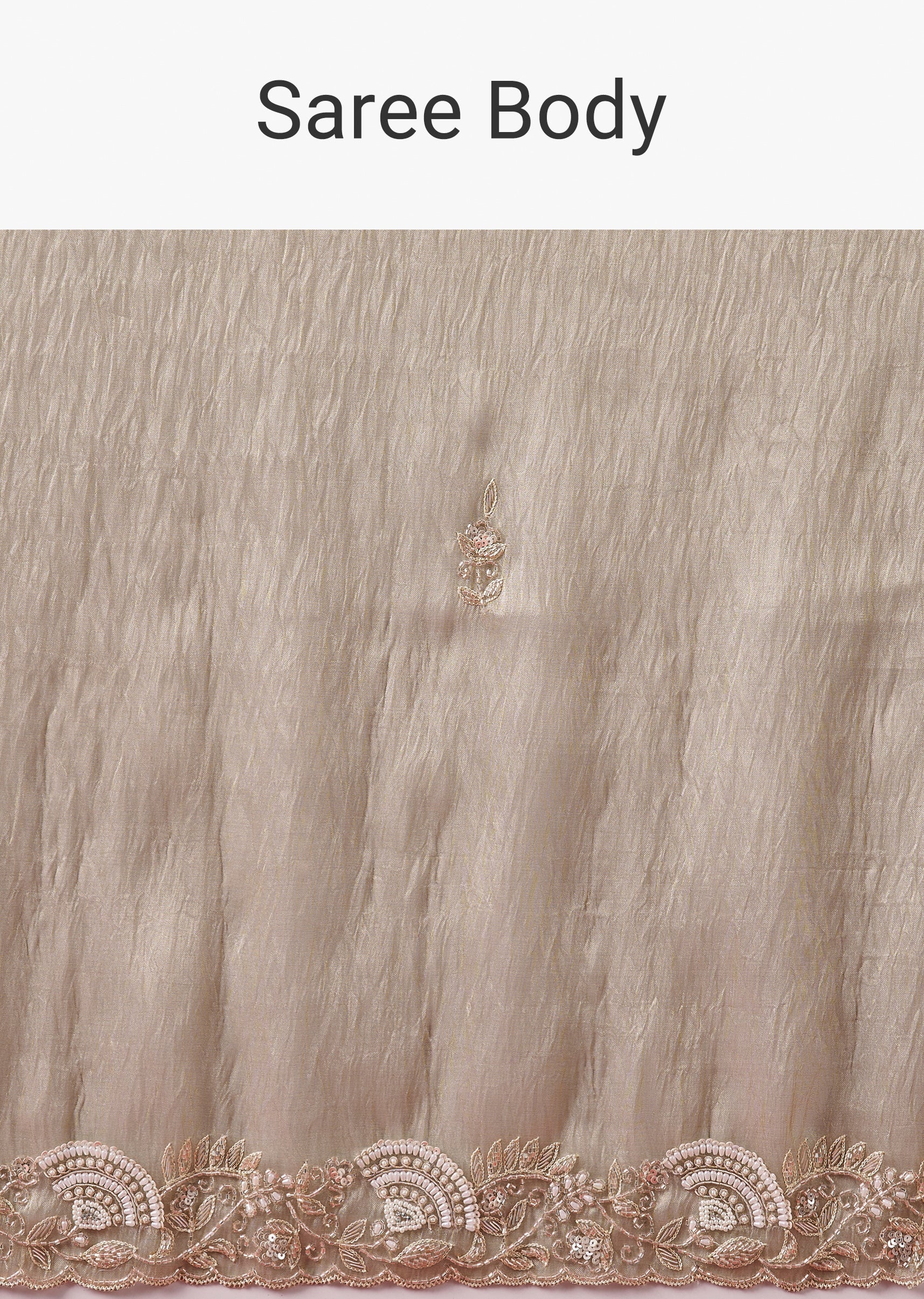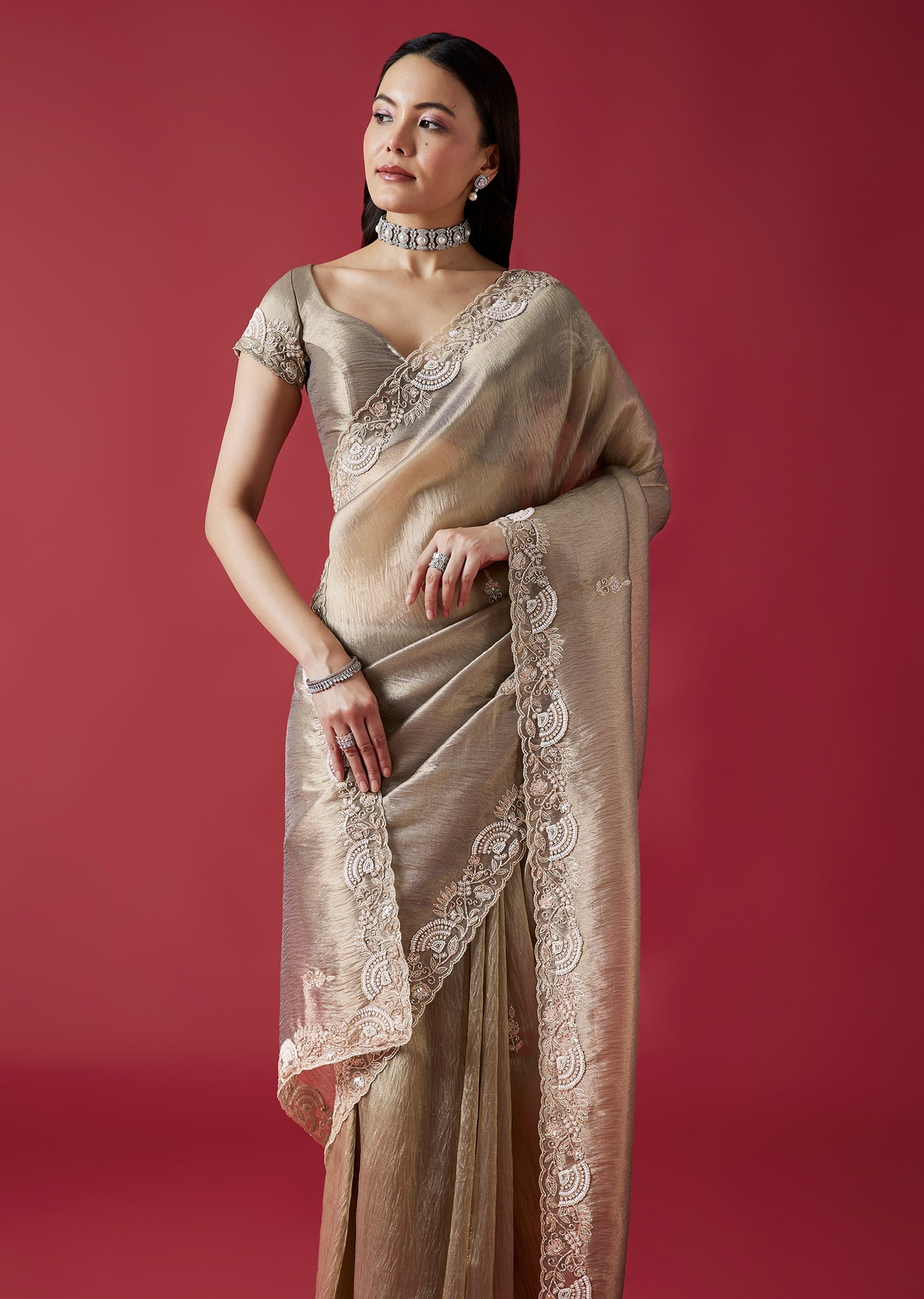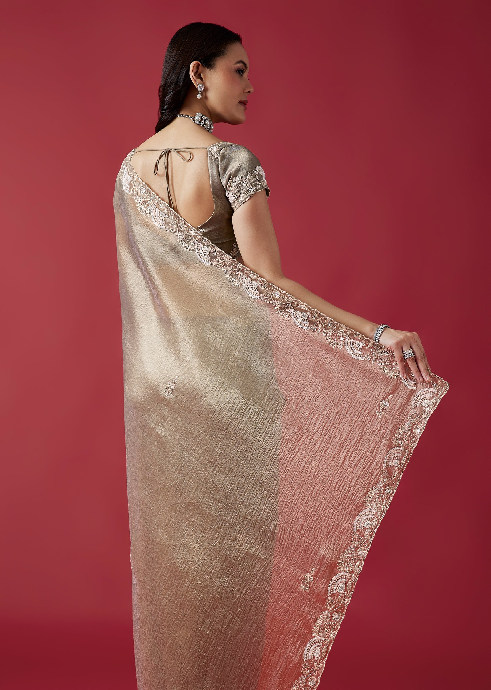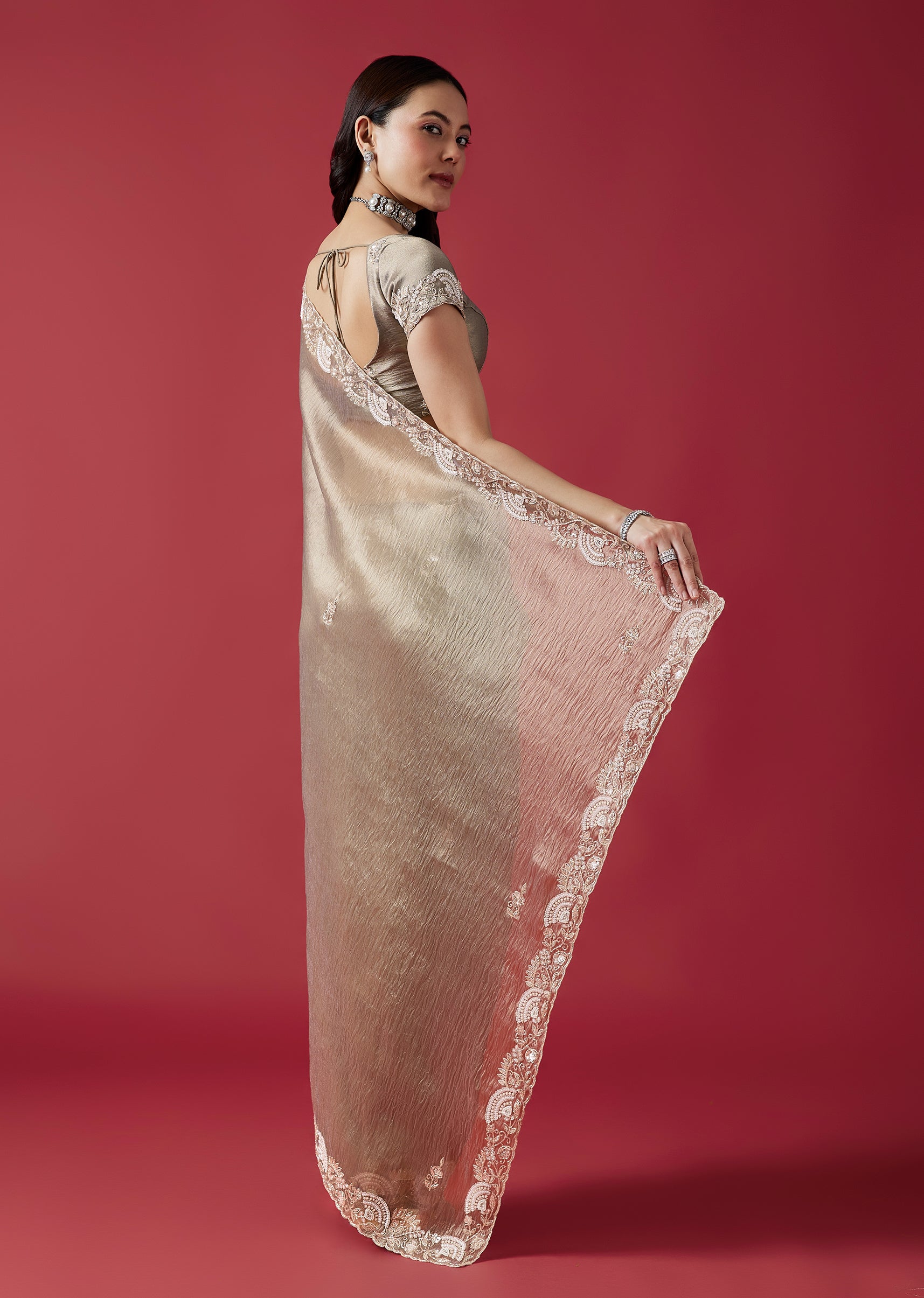 Grey Embroidered Crush Tissue Saree With Zardosi Detailing