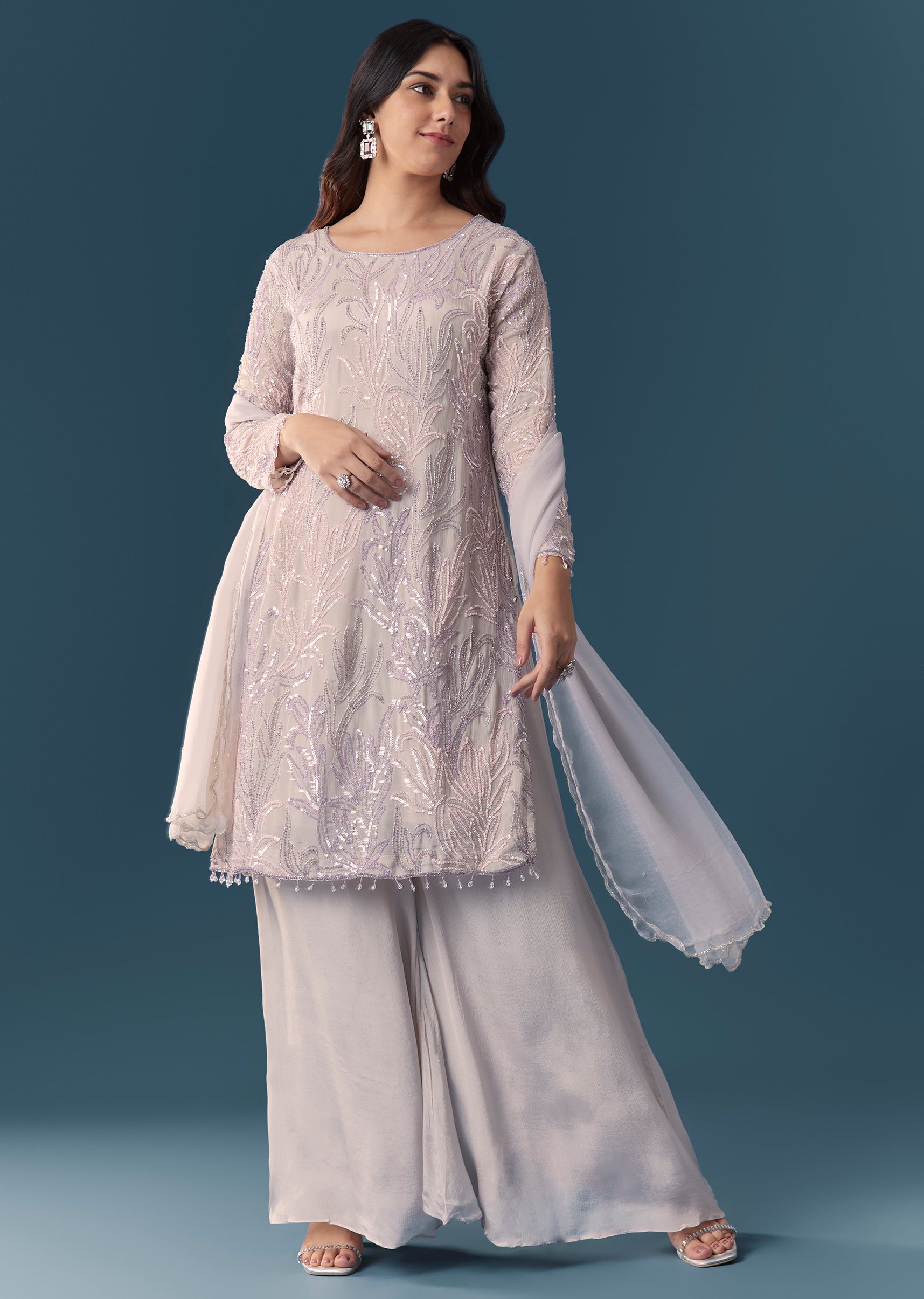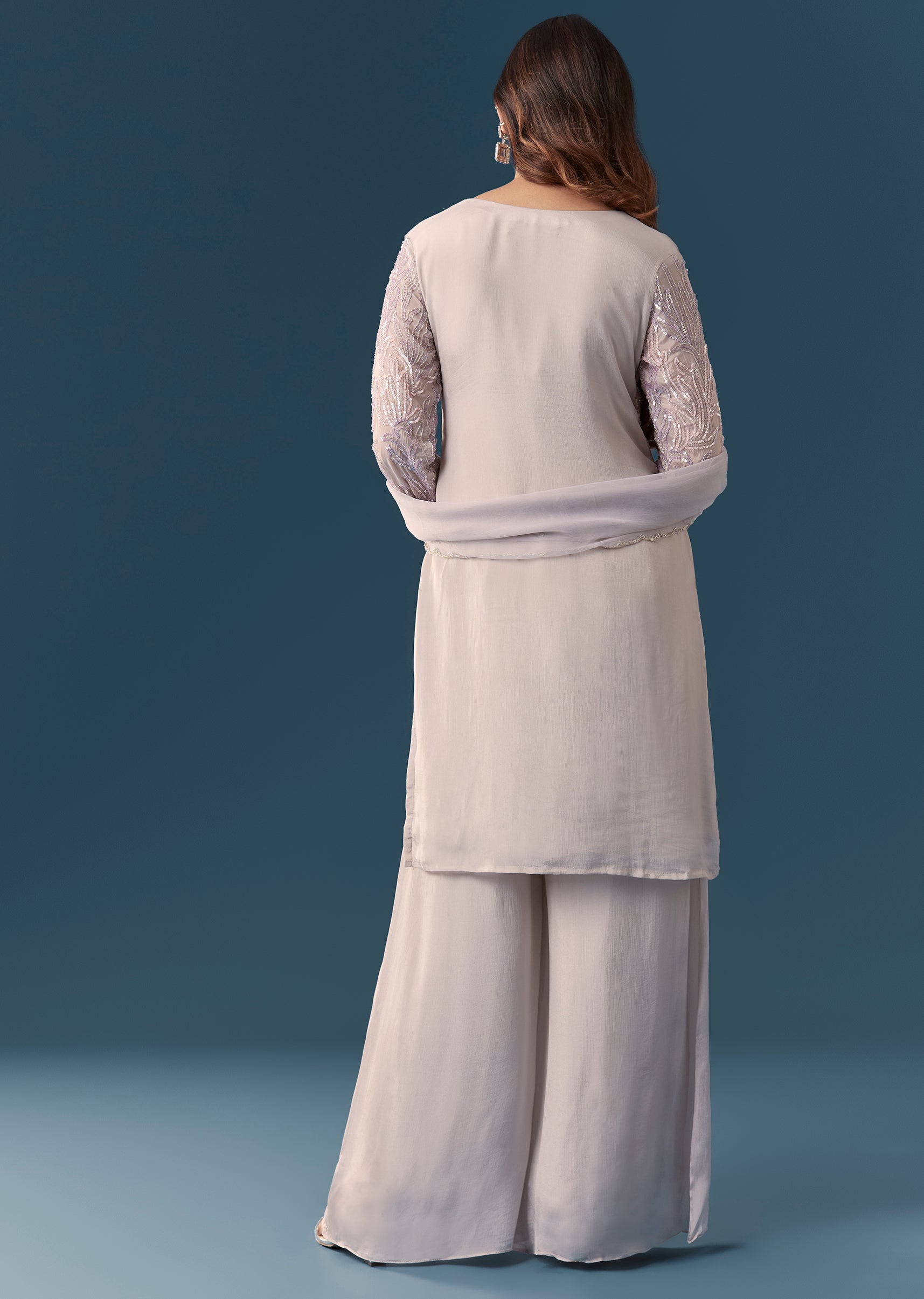Grey Embroidered Palazzo Suit Set With Dupatta