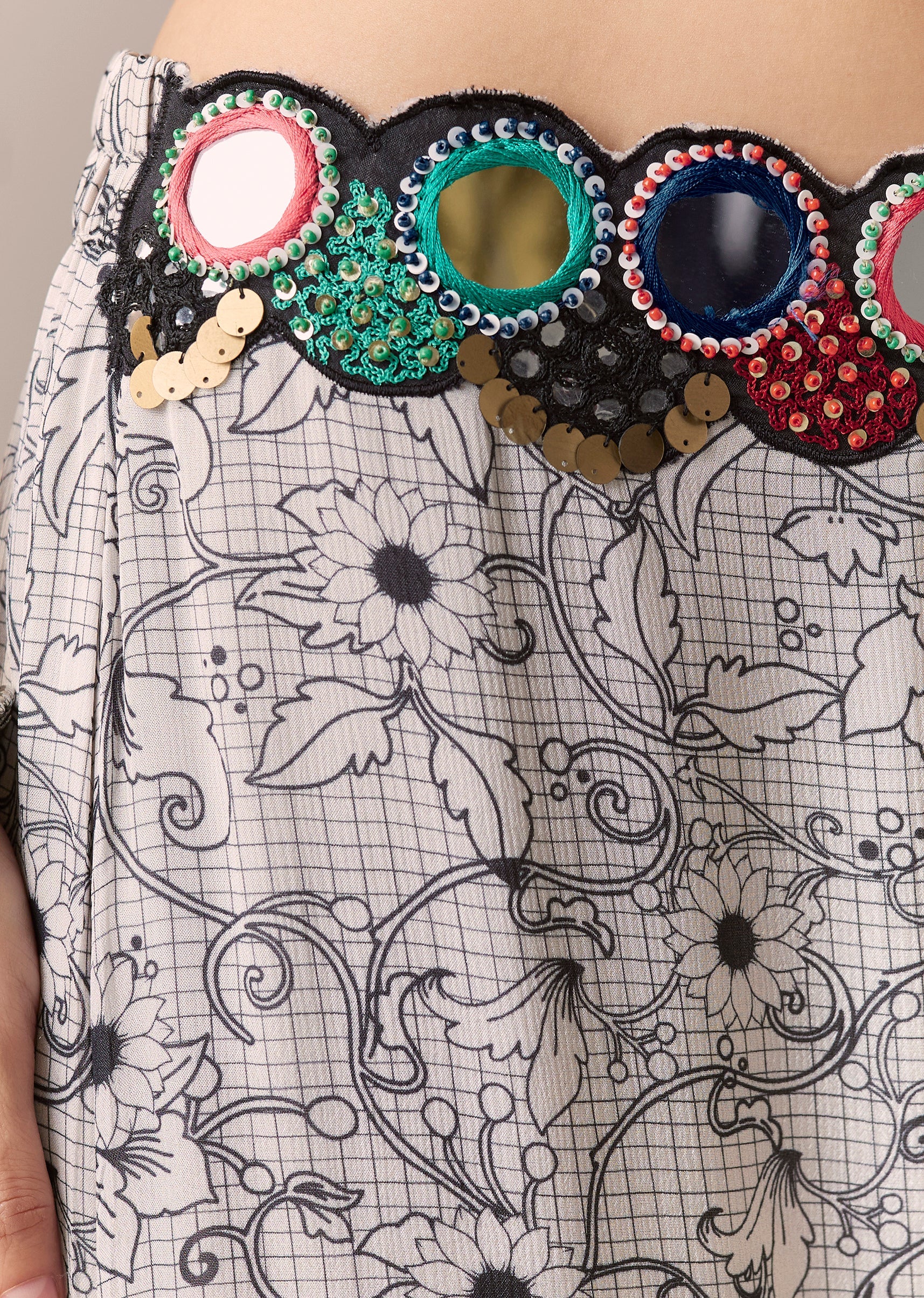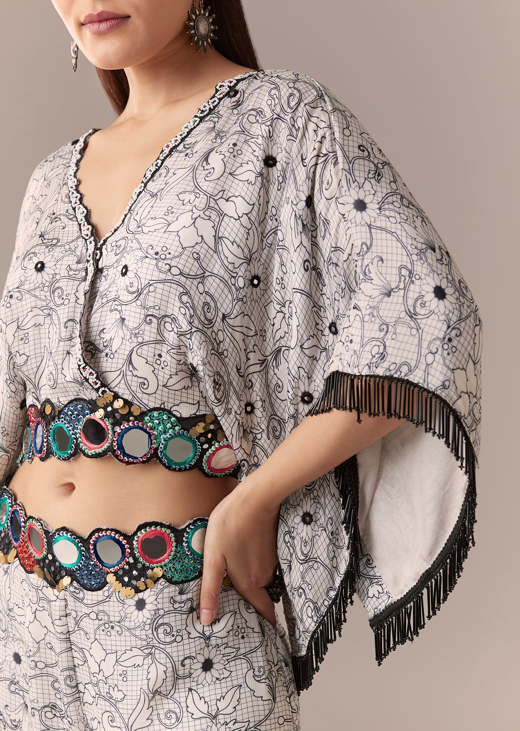 Crafted in chinon, this floral printed crop top features mirror work and flared sleeves for a contemporary finish. Paired with a mid-waist palazzo, it’s an easy festive pick for evening... More Product Details
