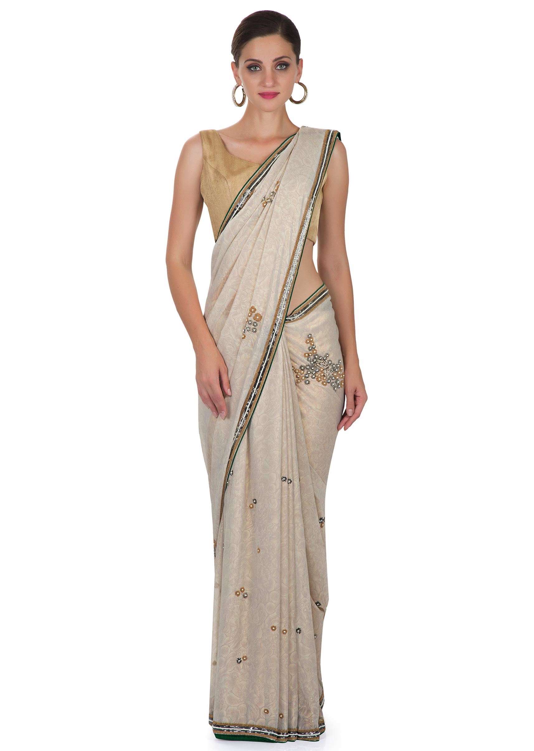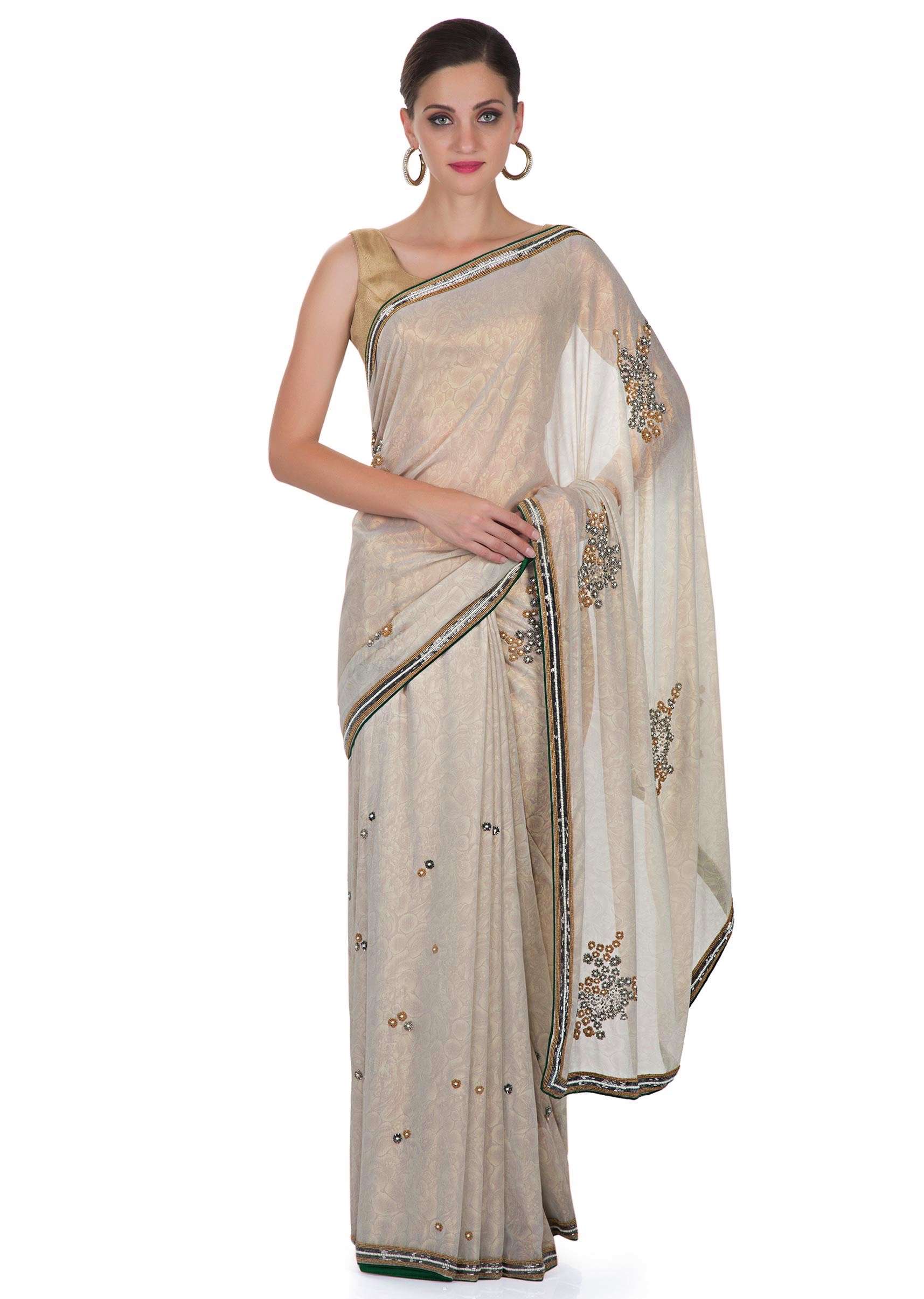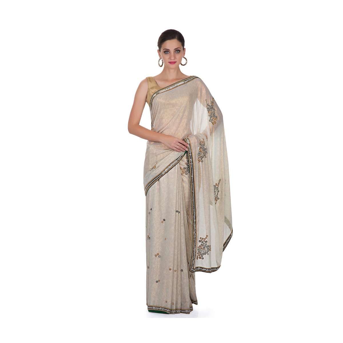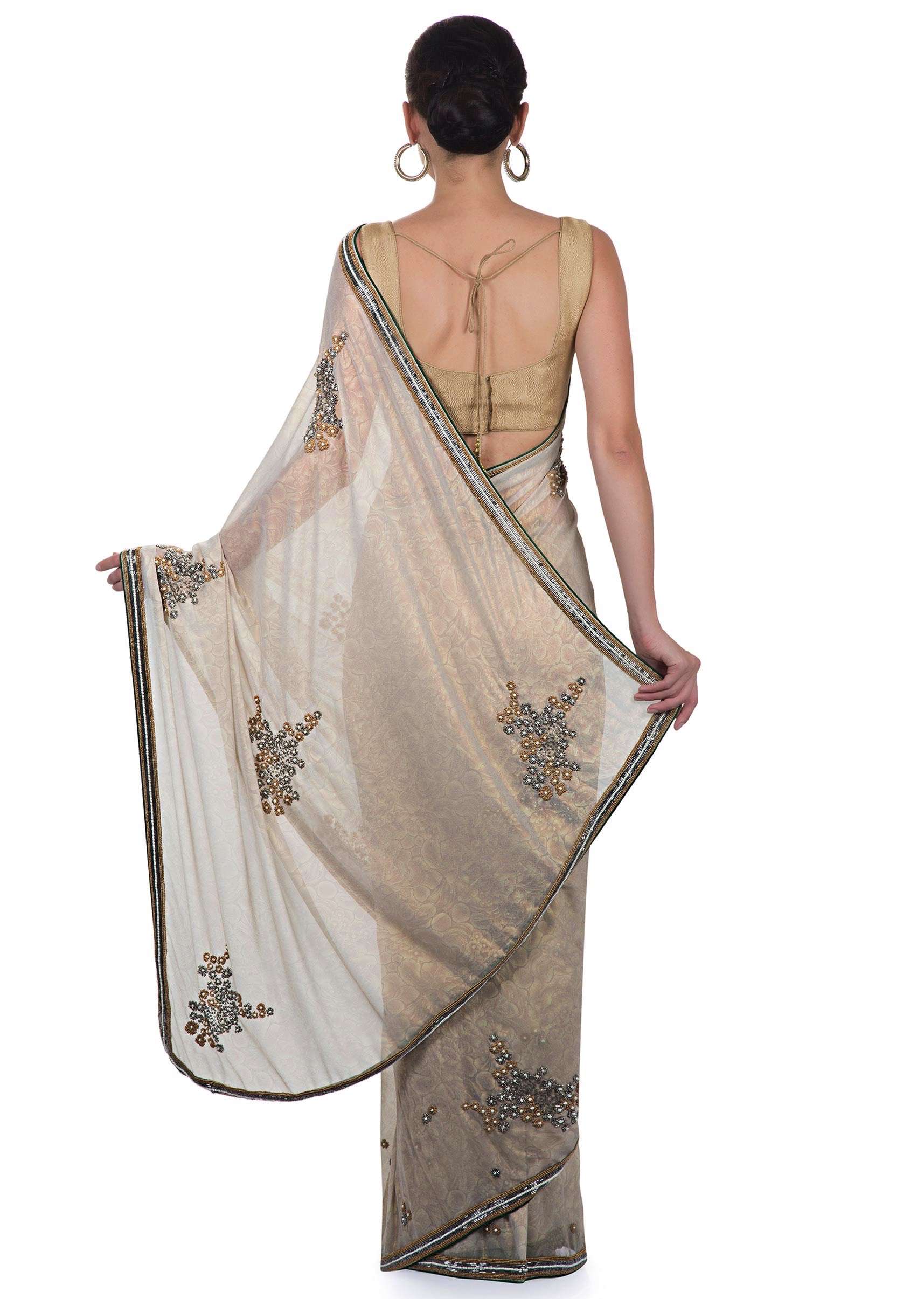 Grey Foil Georgette Saree Featuring Sequins and Beads Only on Kalki