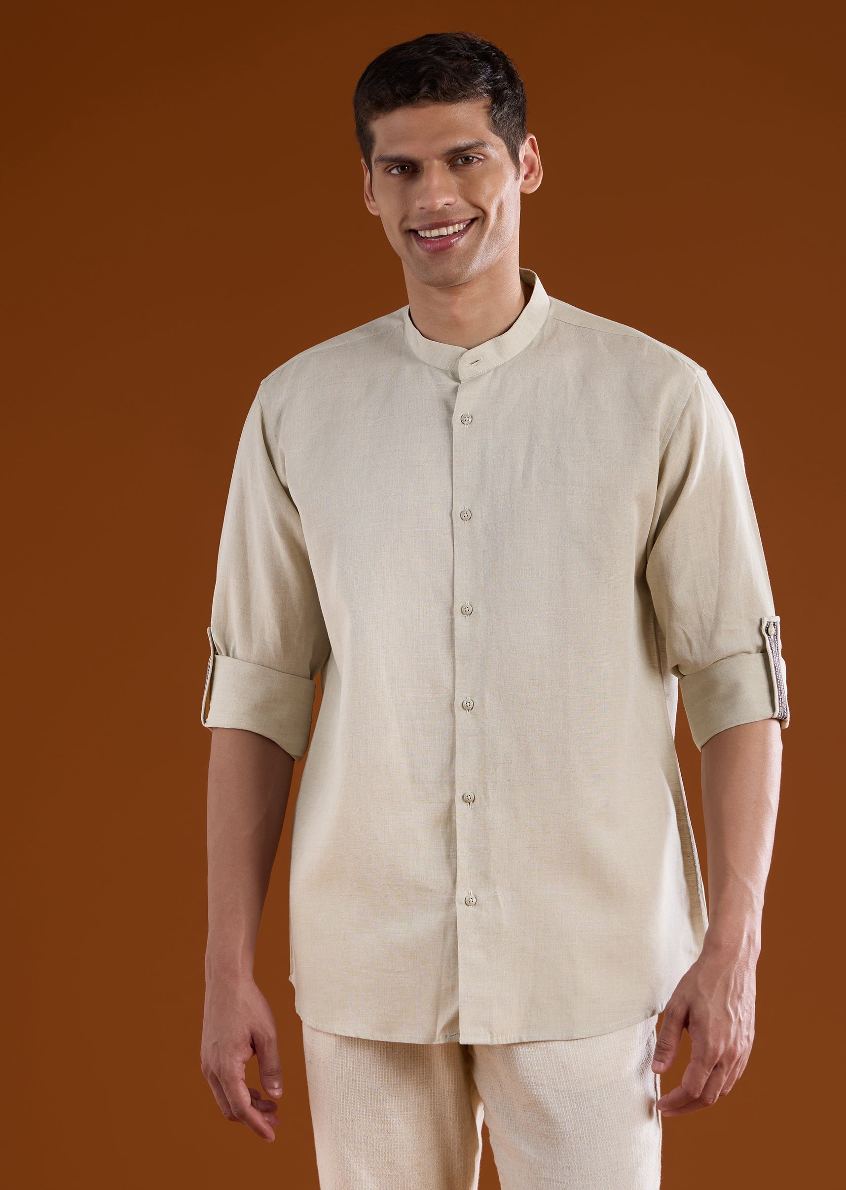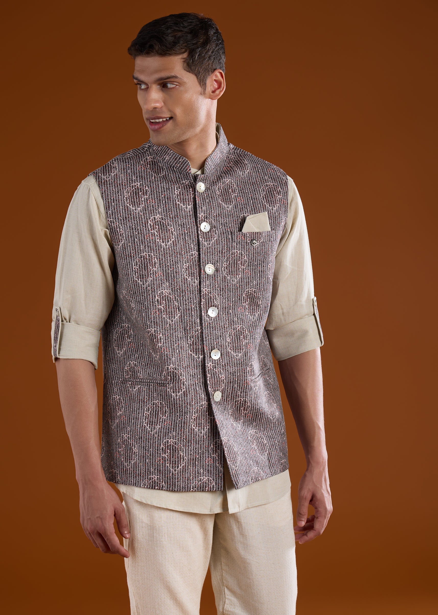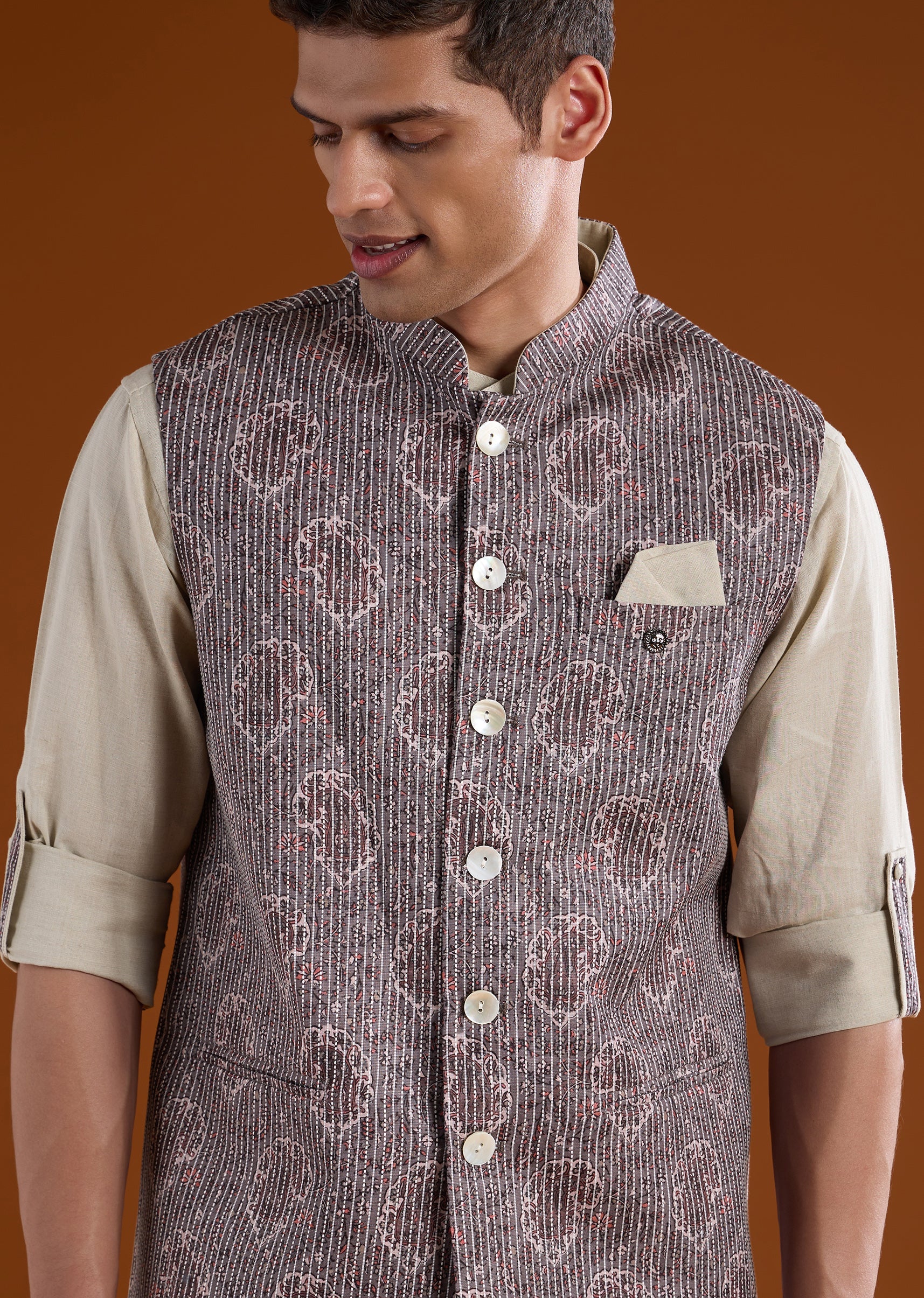 Effortlessly festive with understated elegance, this grey kurta jacket set is crafted in breathable linen blends for comfort and style. The kurta features a mandarin collar and full sleeves, paired... More Product Details