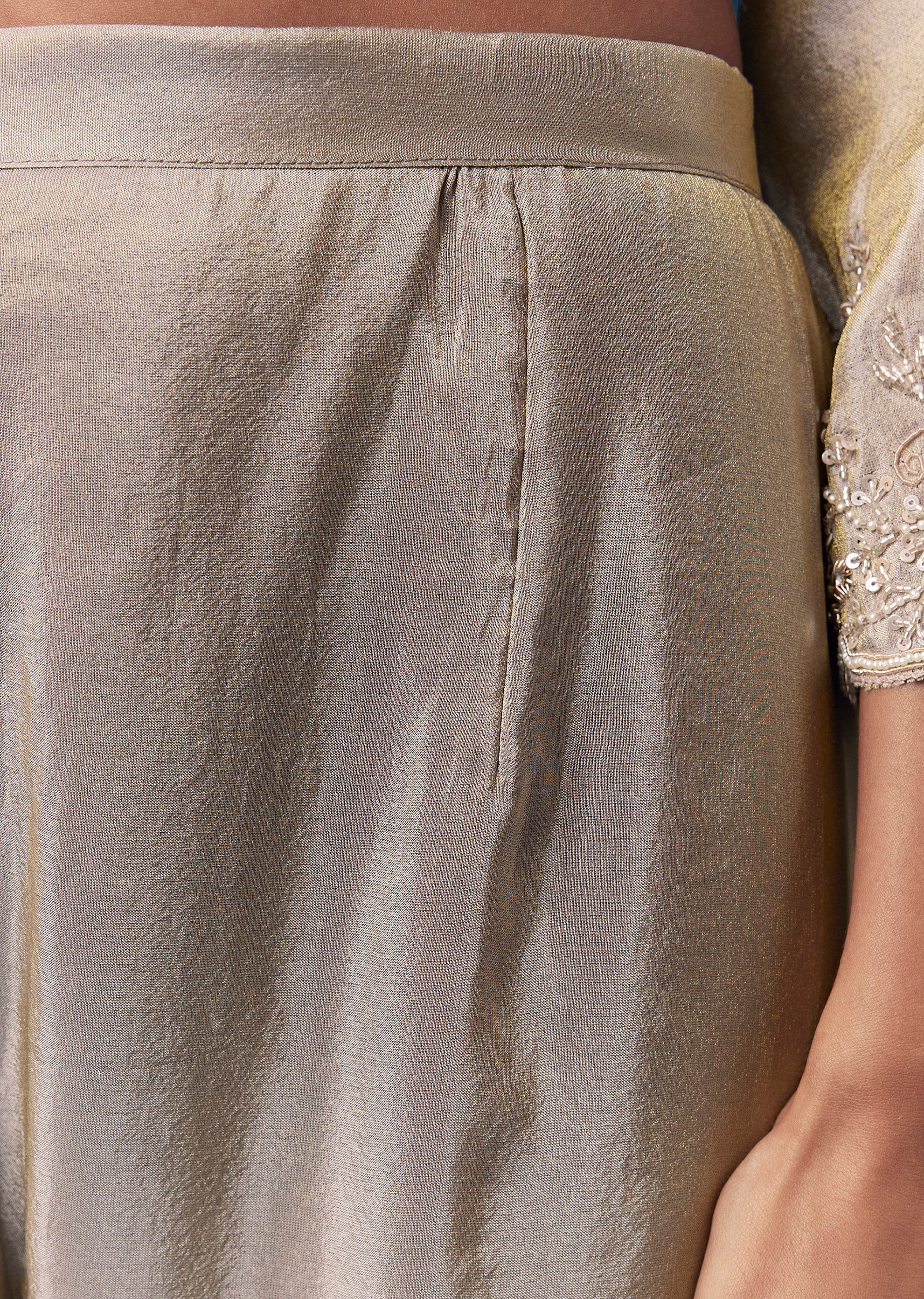 Delicately radiant and rich in detail, this tissue anarkali set captures festive elegance with its all over sequins and moti butti embroidery. The subtle shimmer enhances the soft sheen of... More Product Details