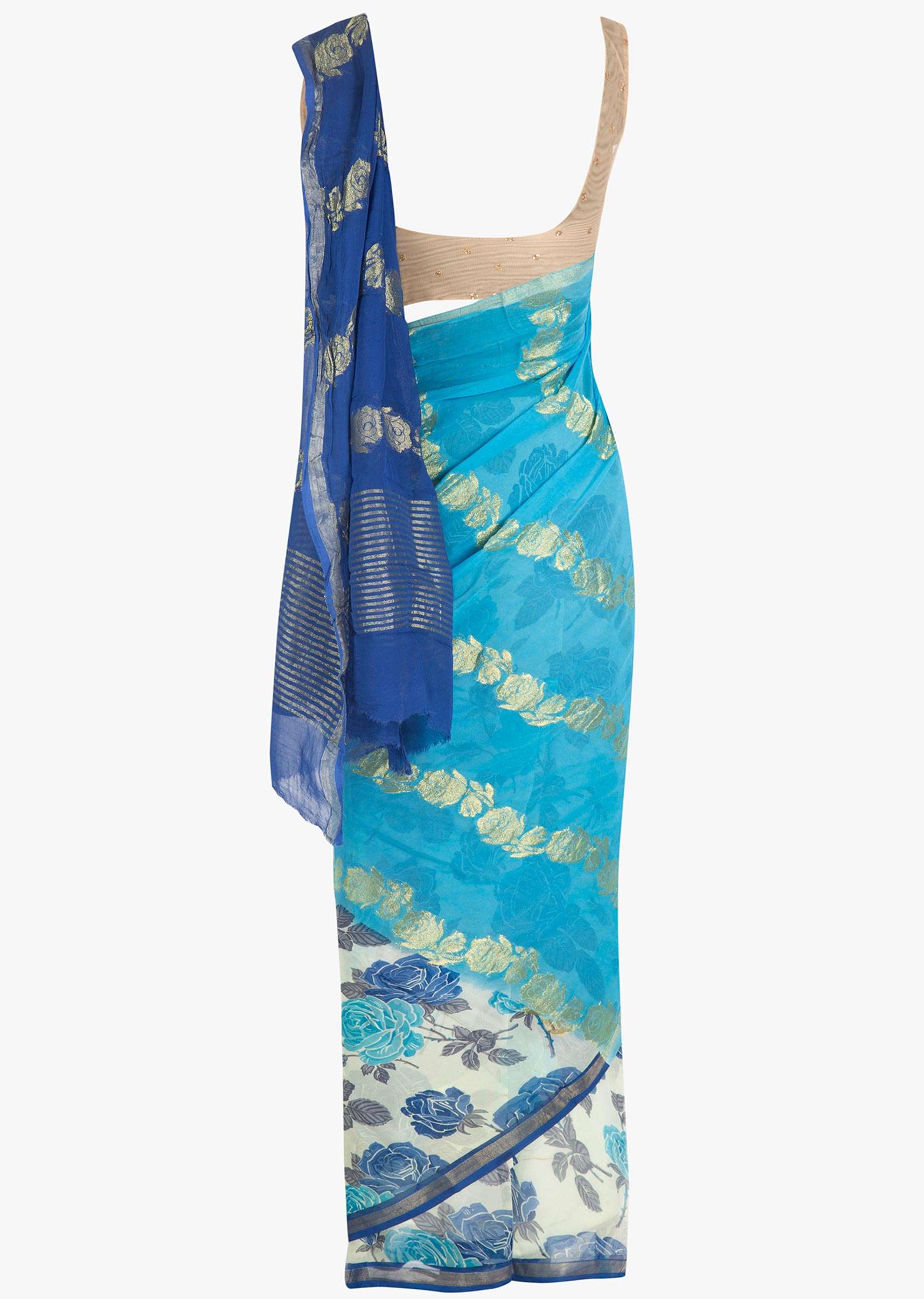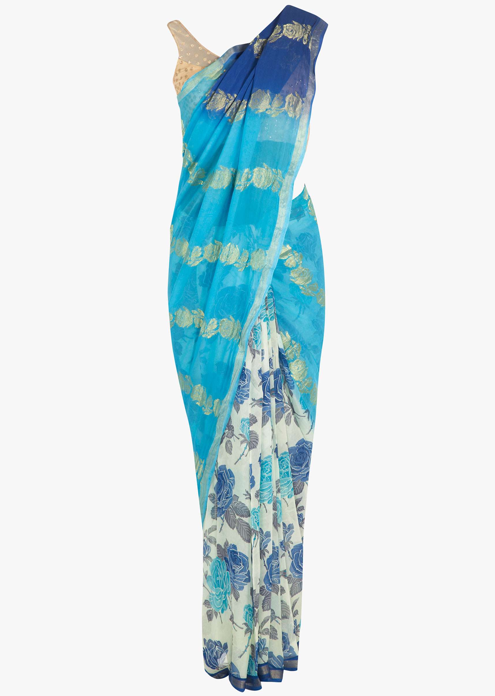 Half and half printed georgette saree with shaded pallo only on Kalki