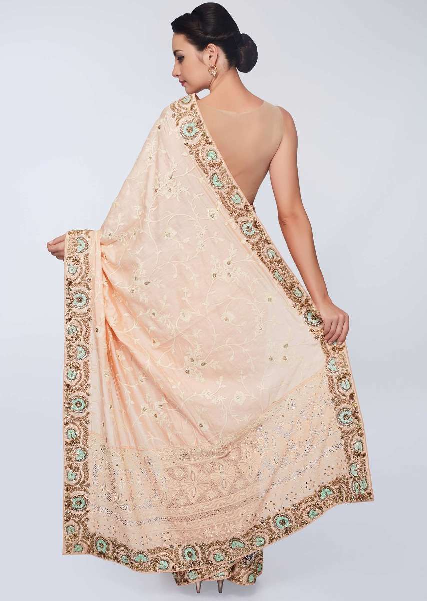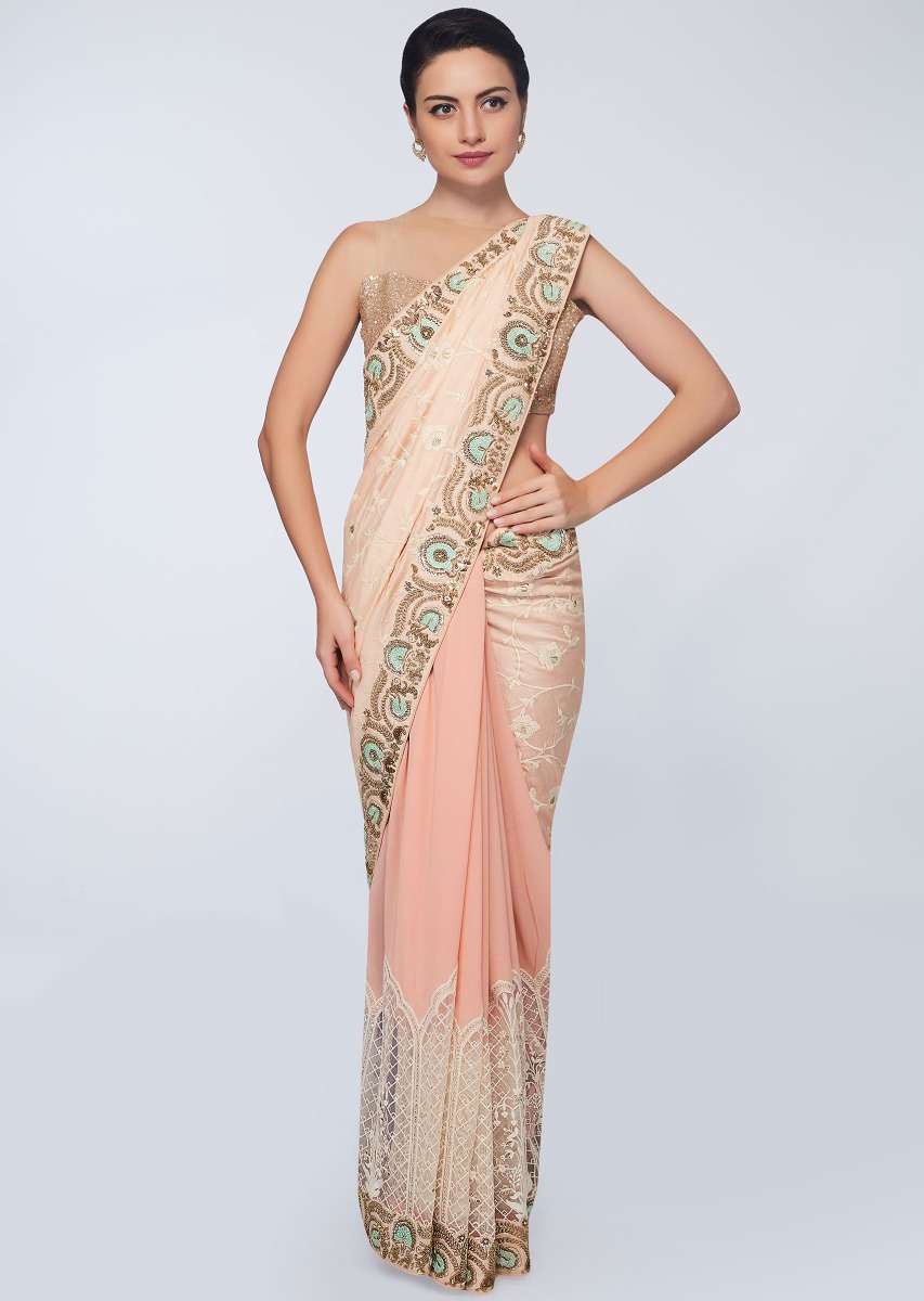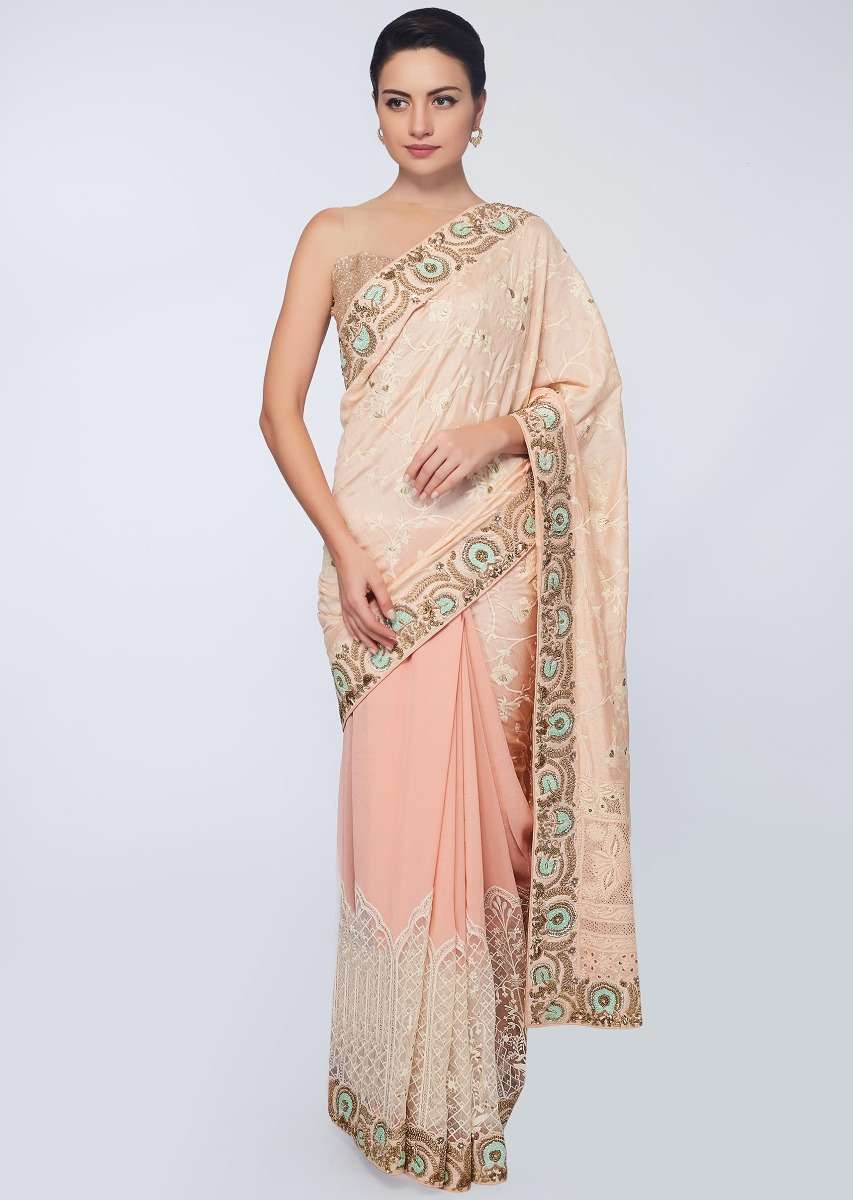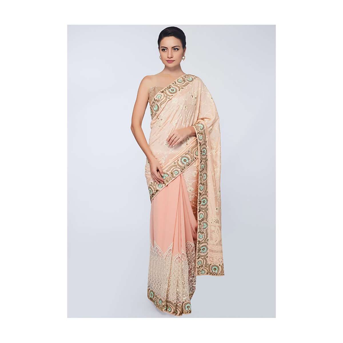 Half And Half Saree In Chiffon And Cotton In Shades Of Peach Online - Kalki Fashion