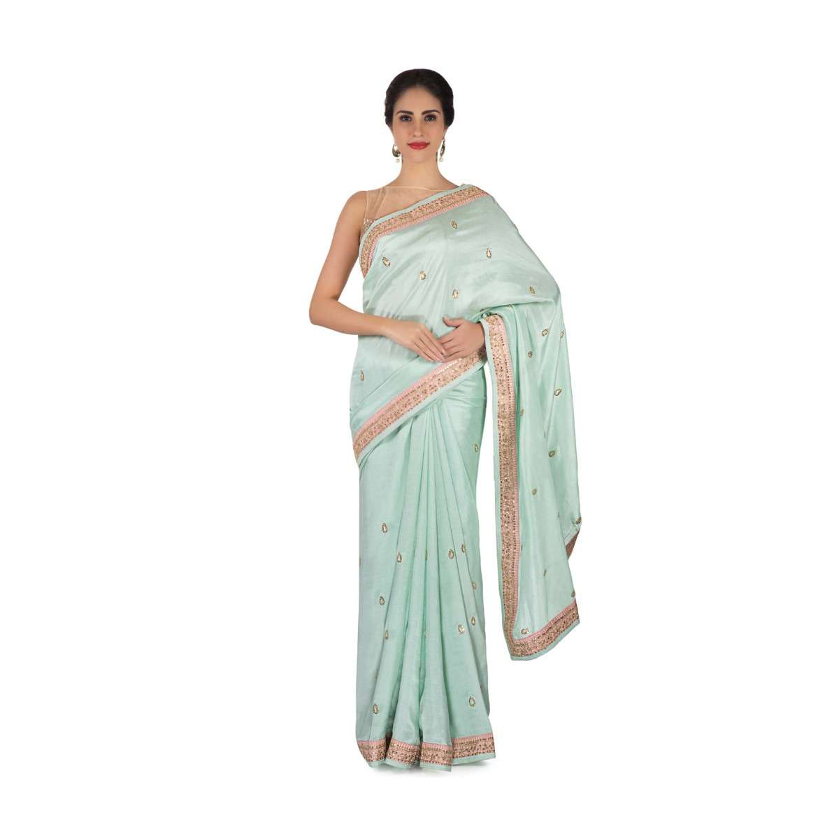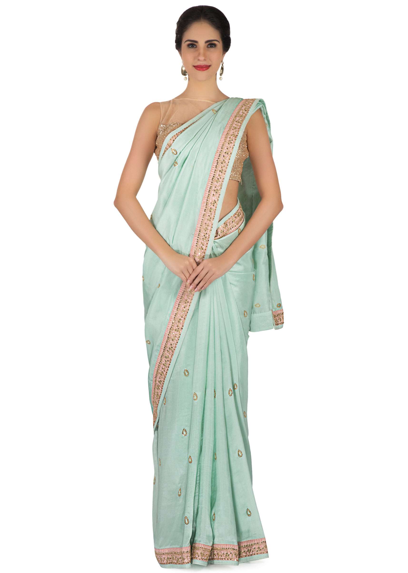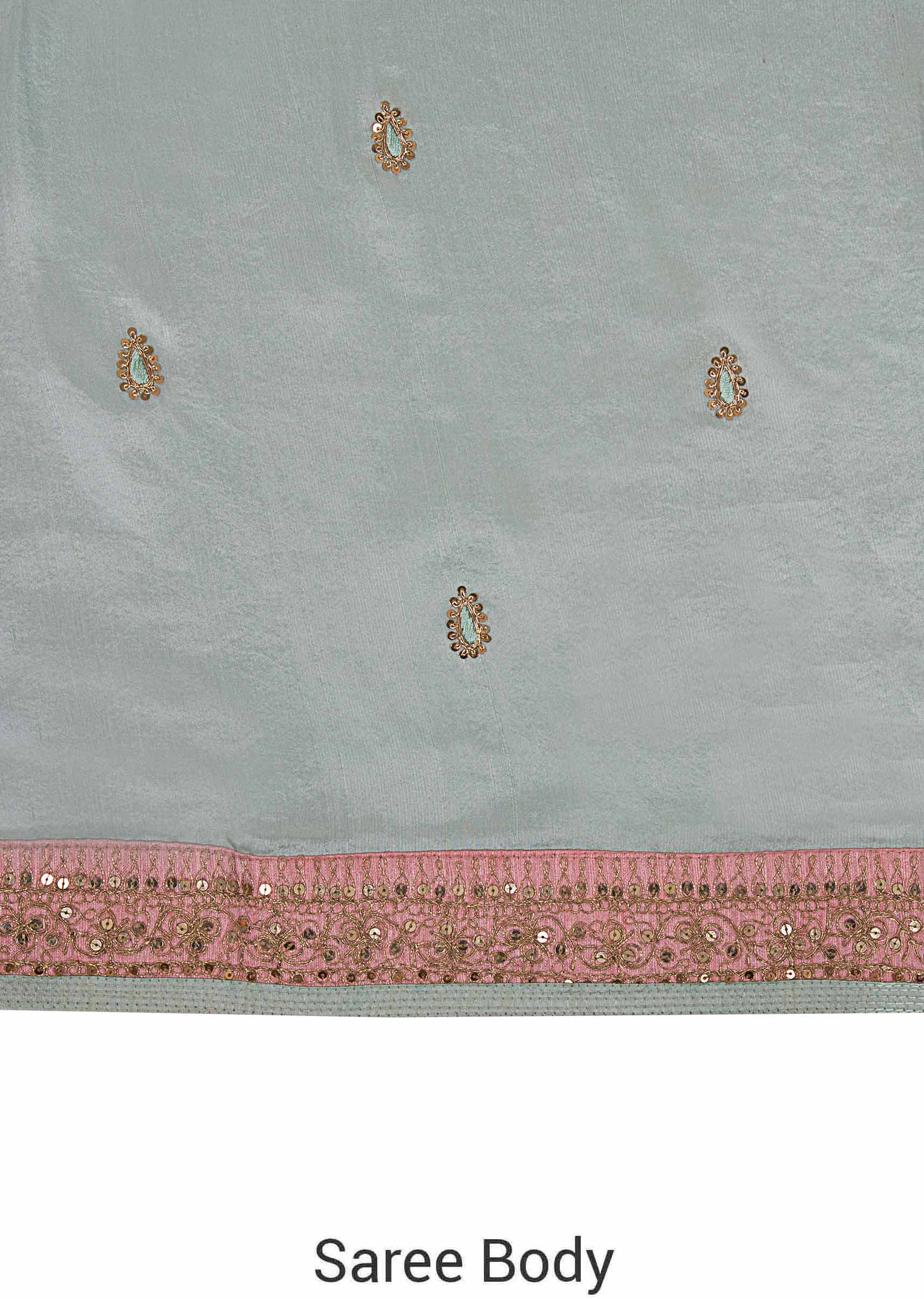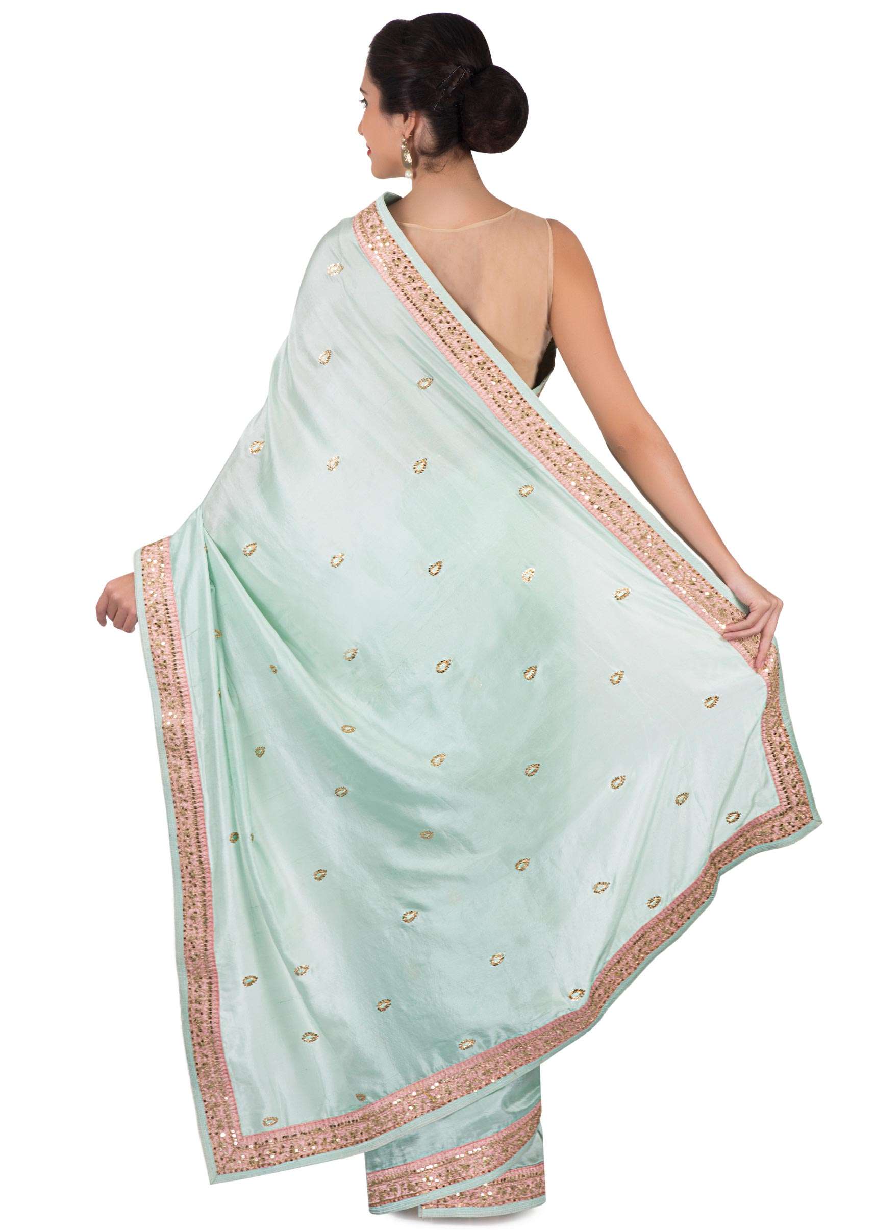 Ice blue saree in satin crepe in sequin butti and border only on Kalki