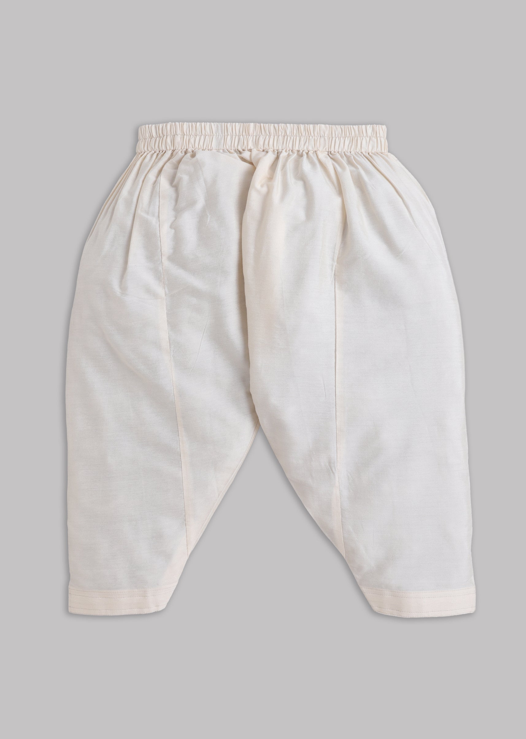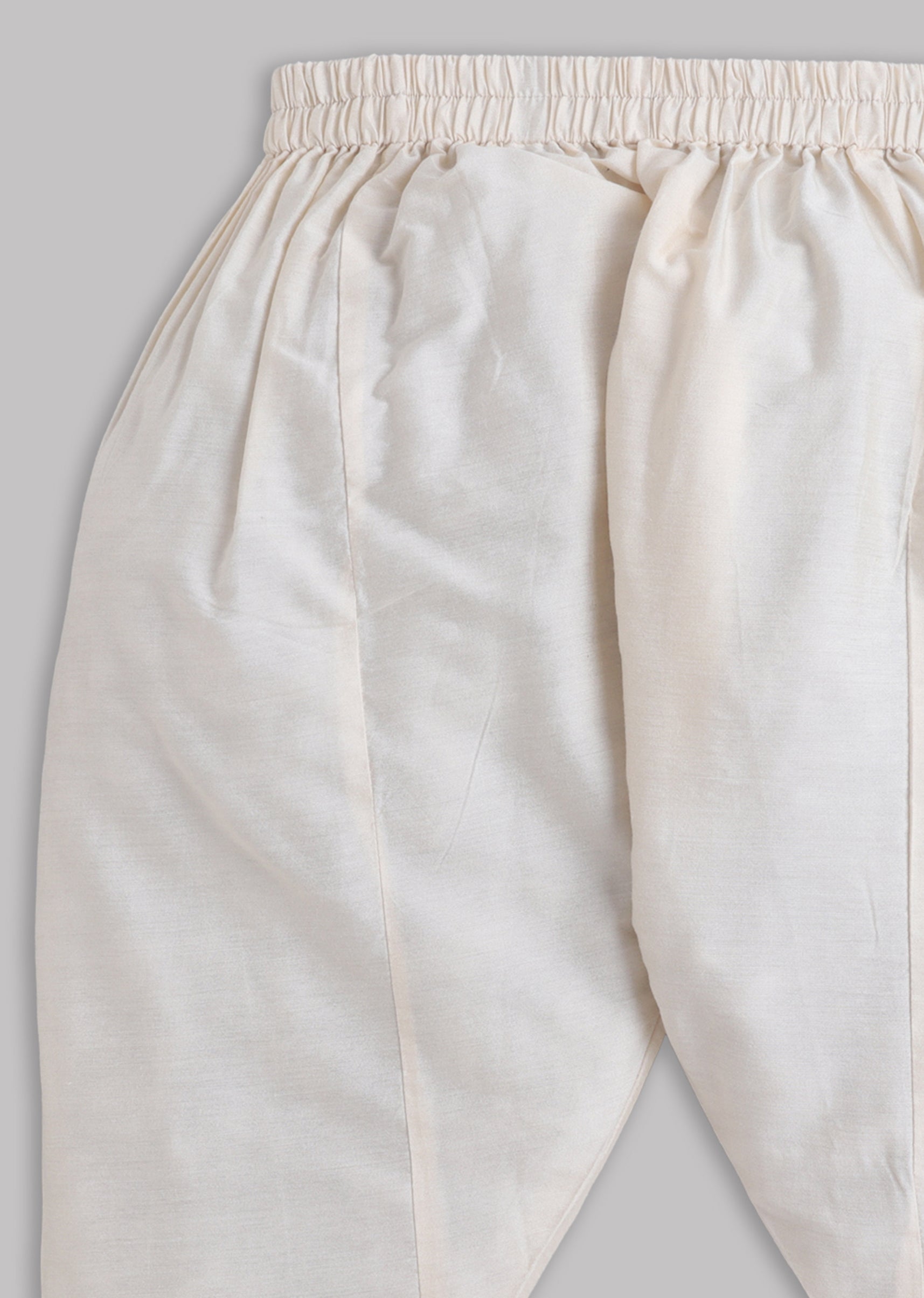 Ikat Printed Chanderi Kurta Set With Beige Salwar