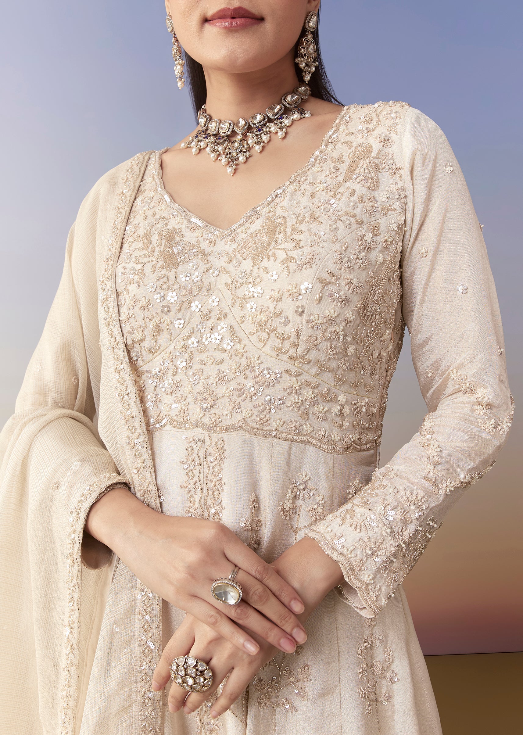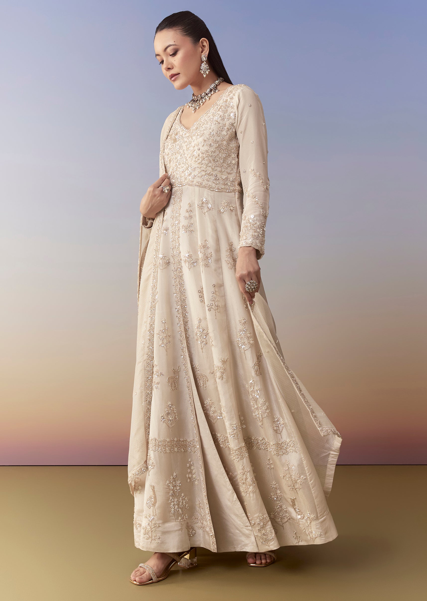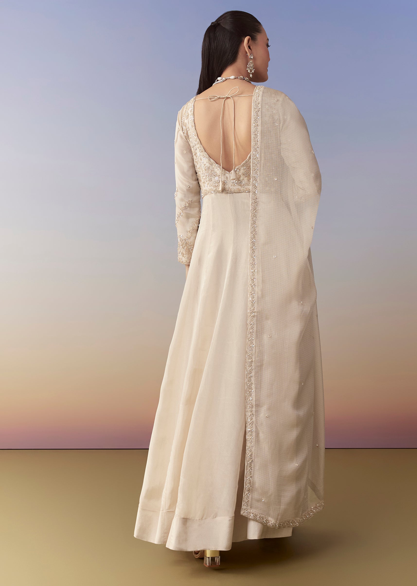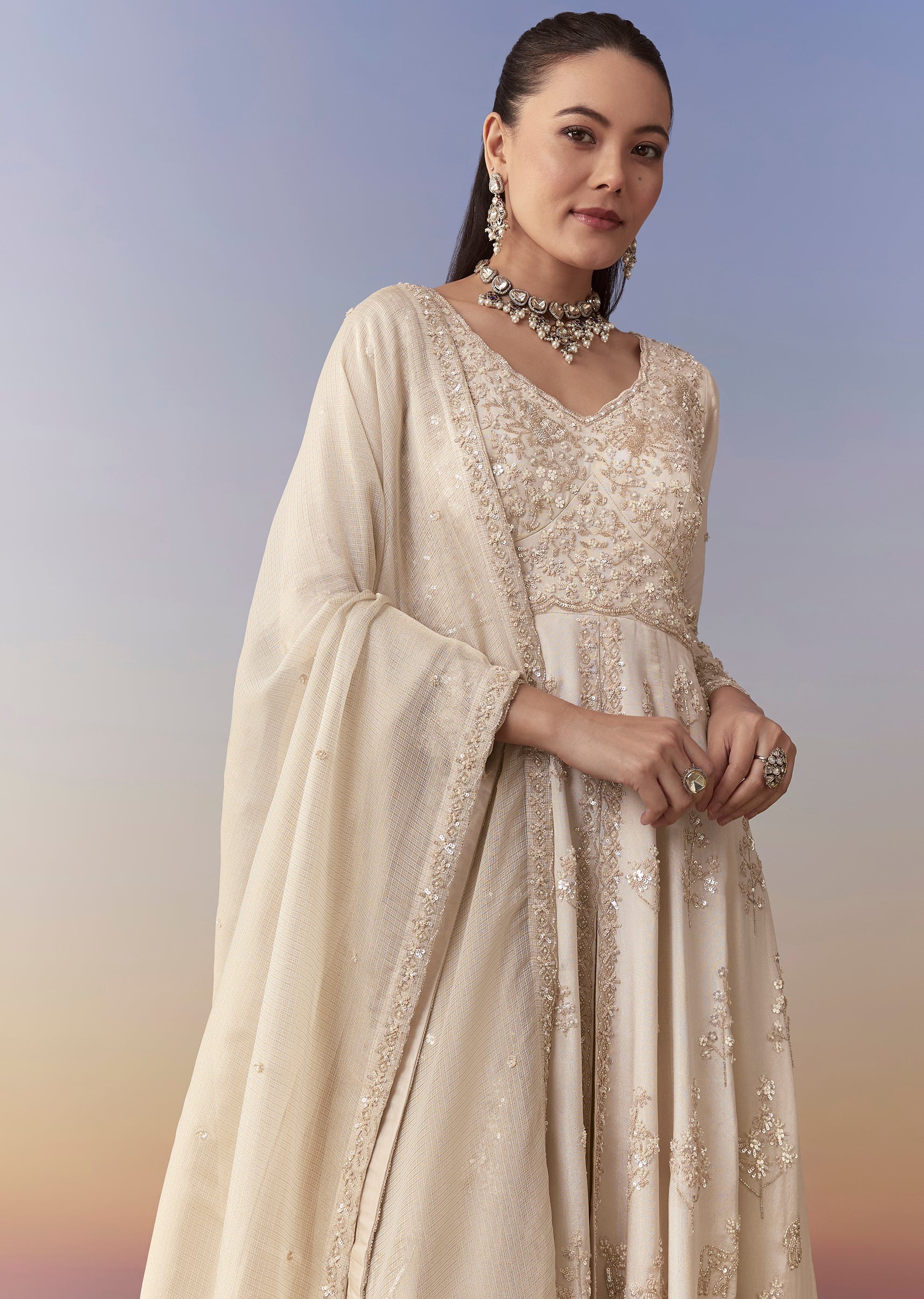 Ivory Anarkali Set with Cutdana Work