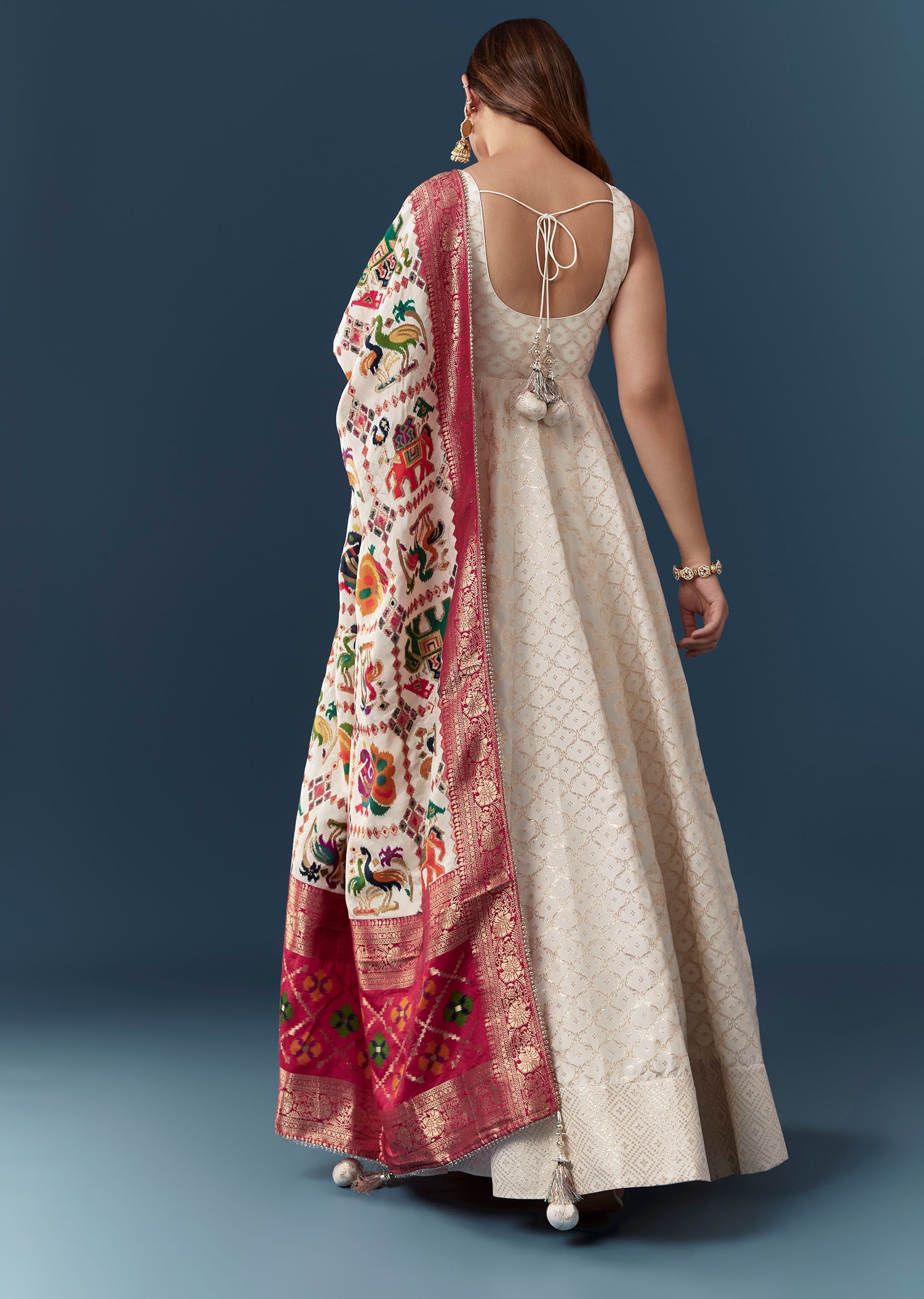 Ivory Banarasi Weave Silk Anarkali Set