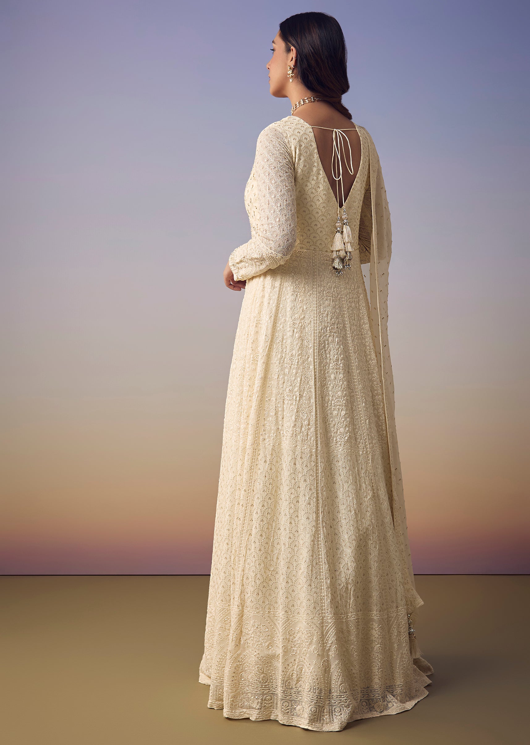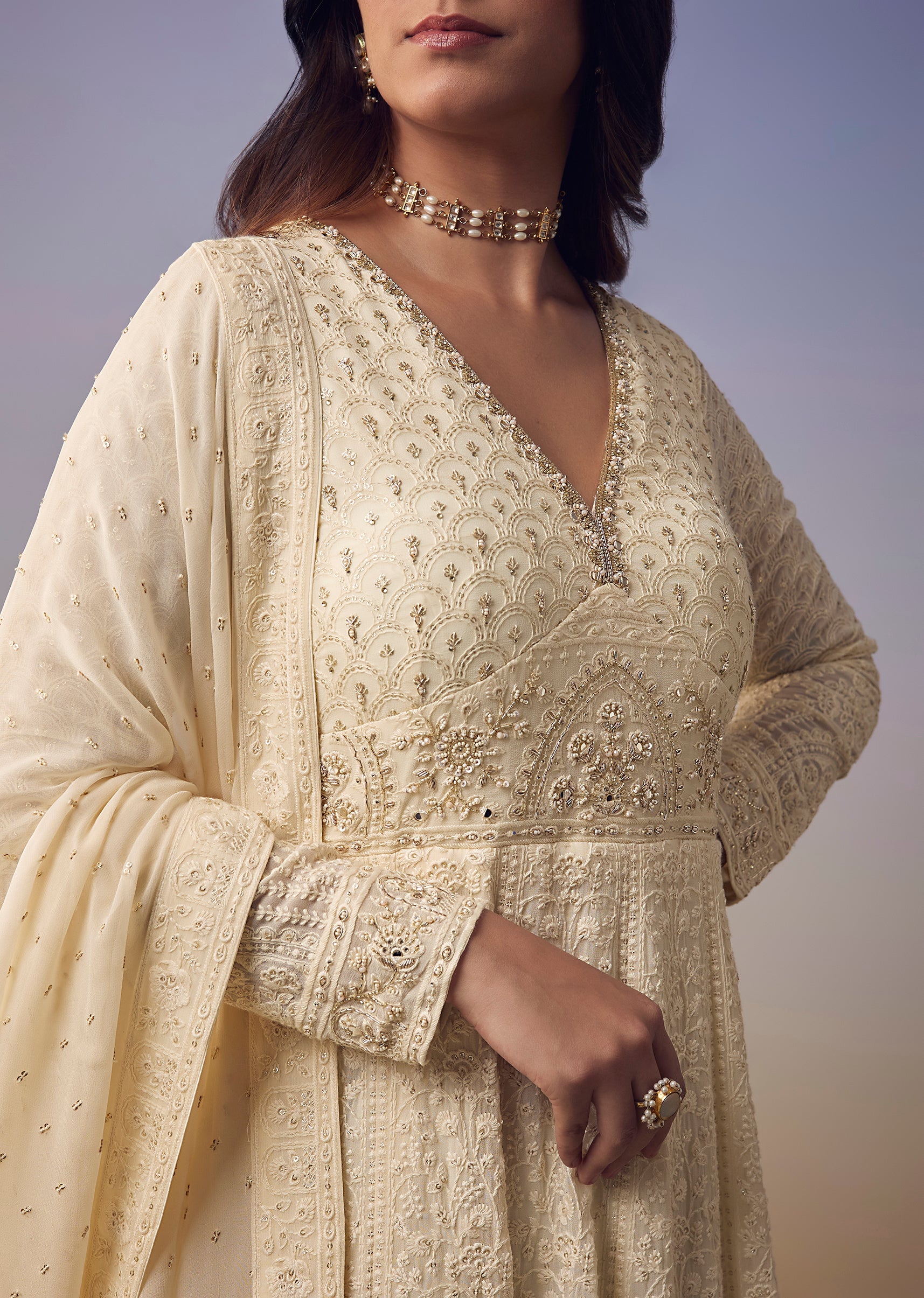 Ivory Lucknowi And Sequin Anarkali with Dupatta